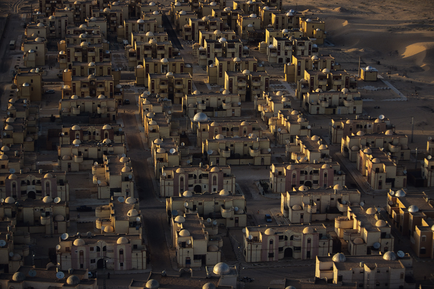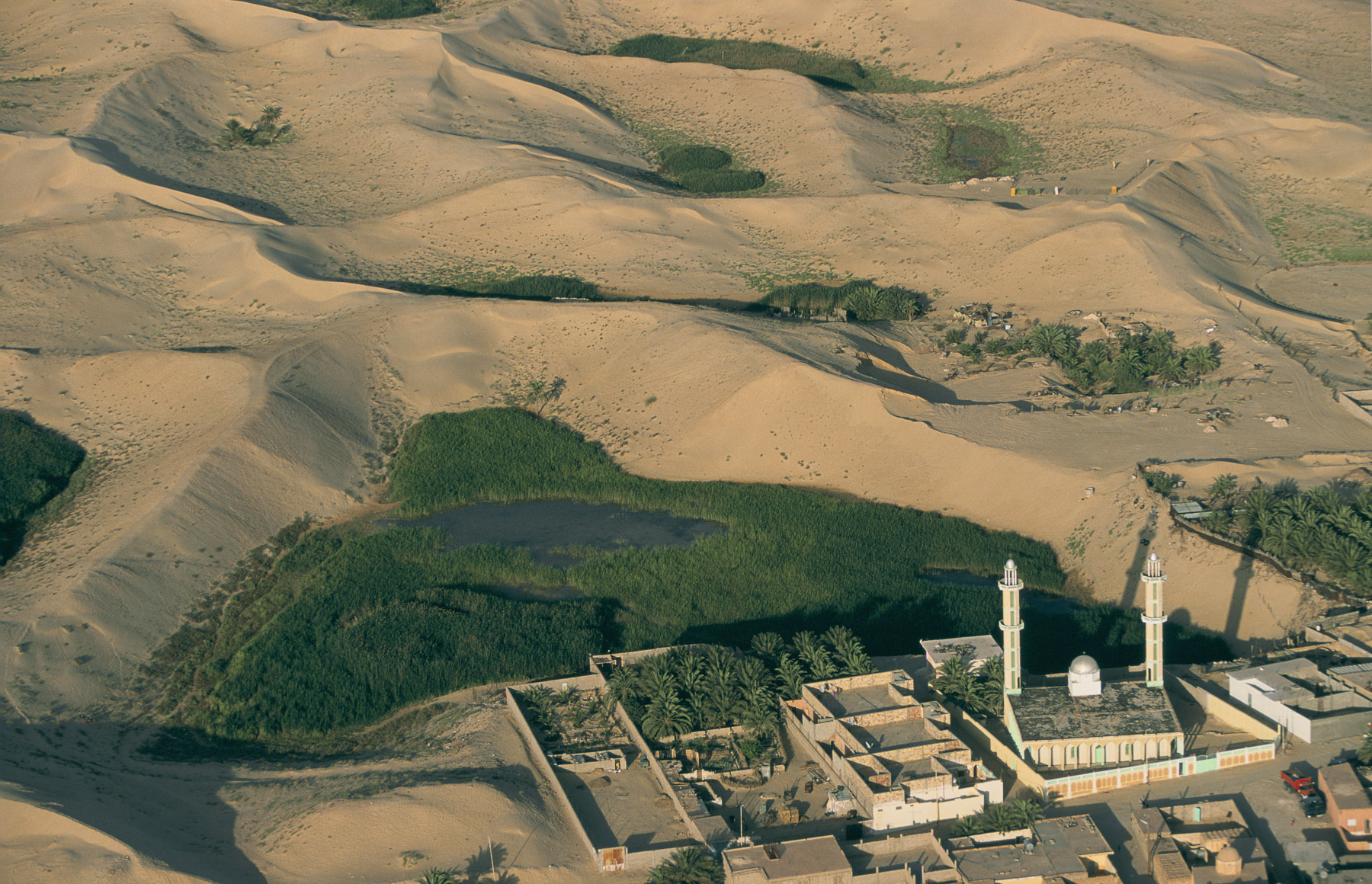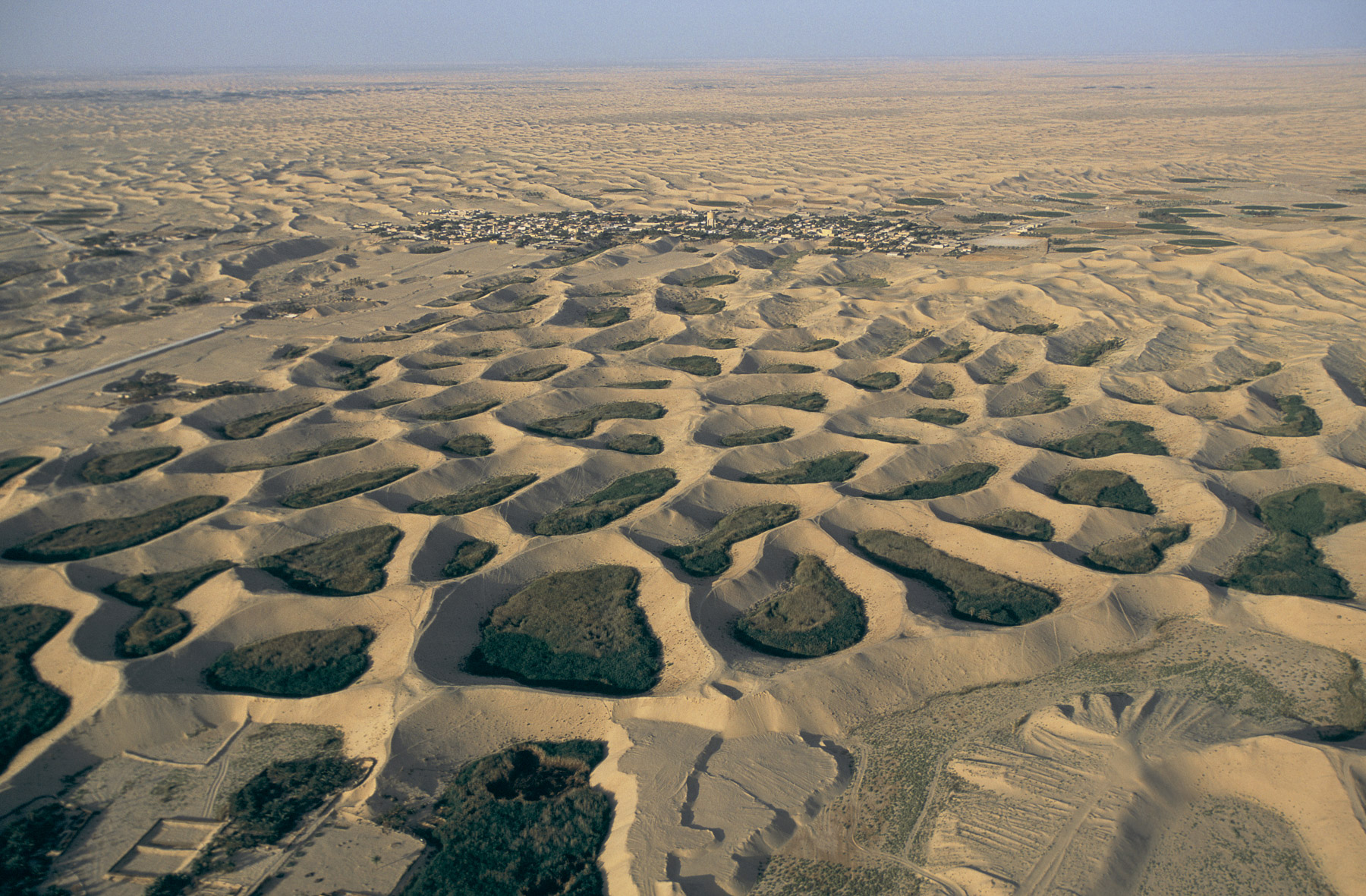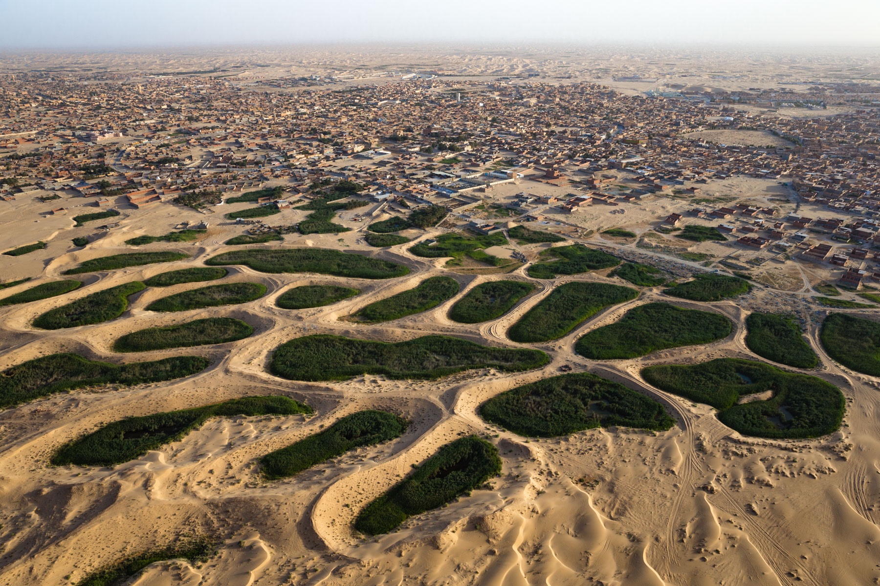 El Oued : ville et végétation au creux des dunes (pollution nappe superficielle), Wilaya d'El Oued, Algérie ( 33°21'8.51"N - 6°52'55.51"E)