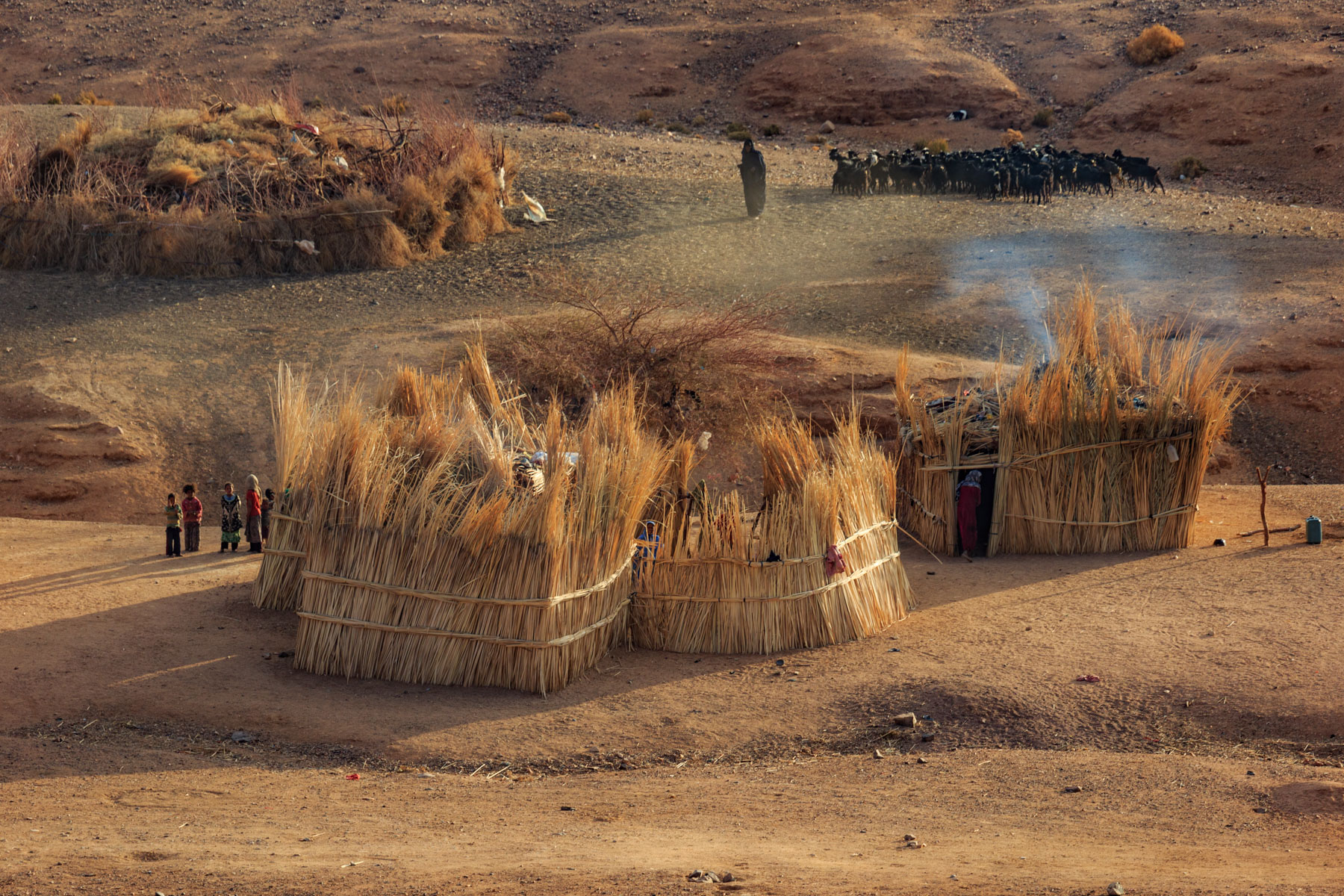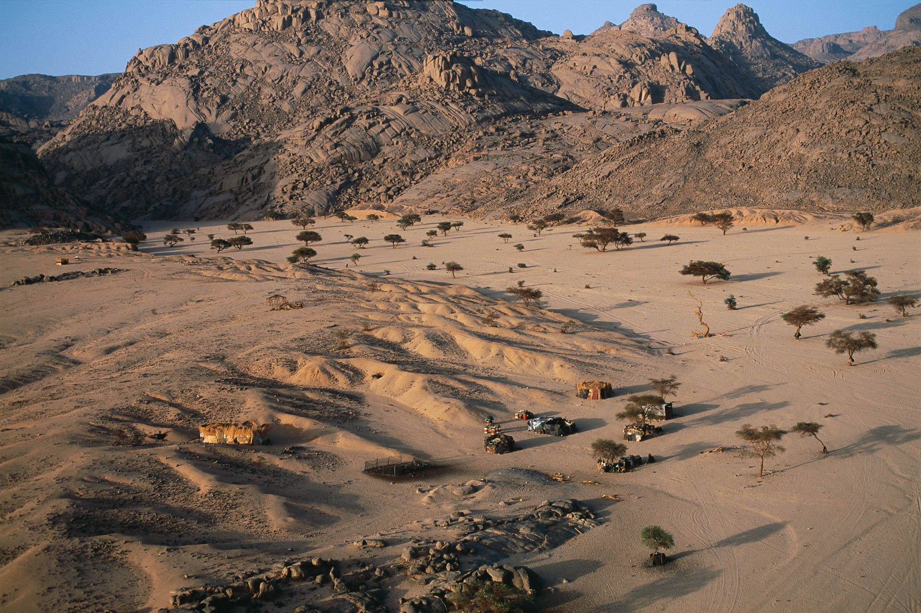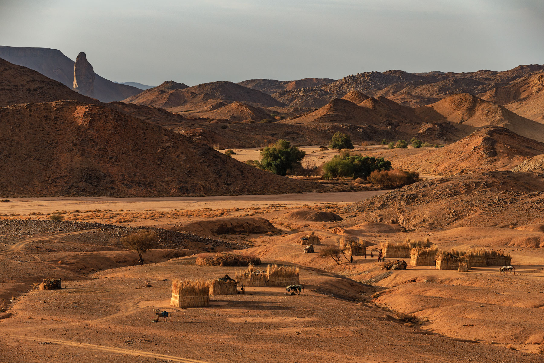 Campement touareg (zéribas) près de Tamanrasset, massif du Hoggar, wilaya de Tamanrasset, Algérie (23° 10’ 29,64’’ N – 5° 59’ 23,01’’ E