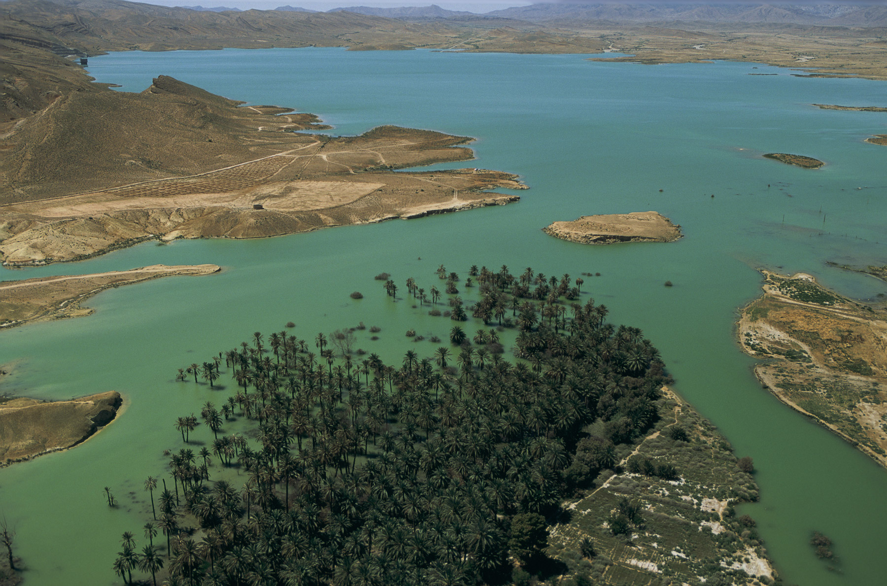 Massif des Aurès - Barrage à El Kantara, palmeraie inondée - Algérie