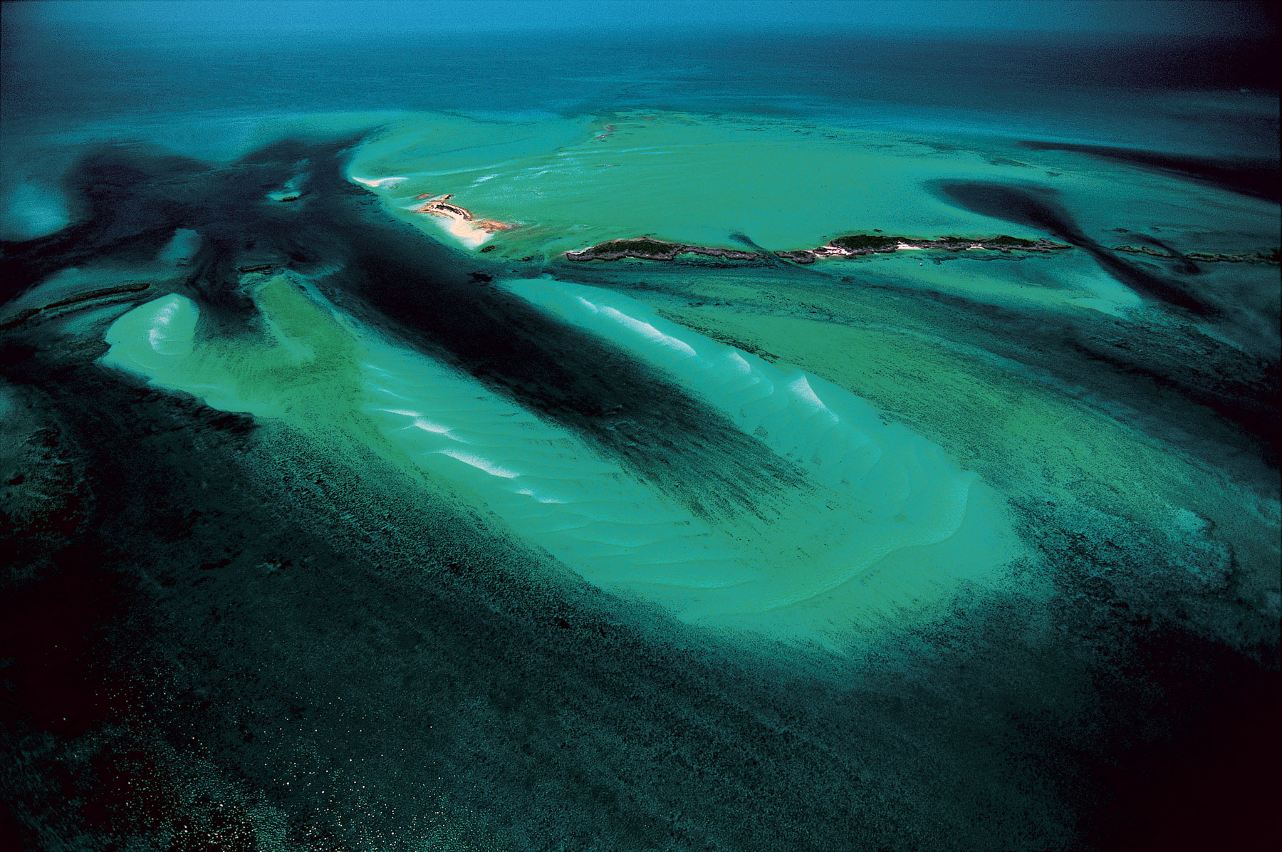Islets and seabed, Exuma Cays, Bahamas (24°34' N – 76°48' W).