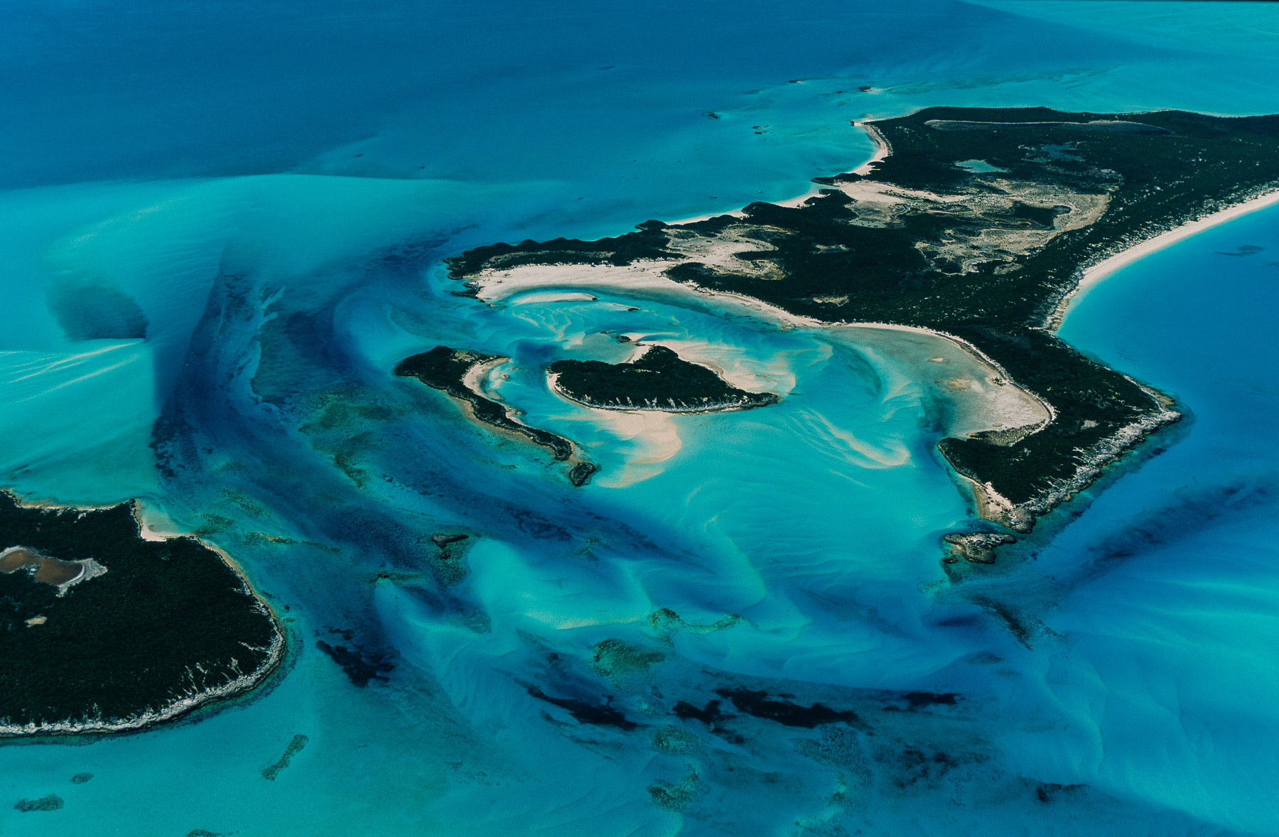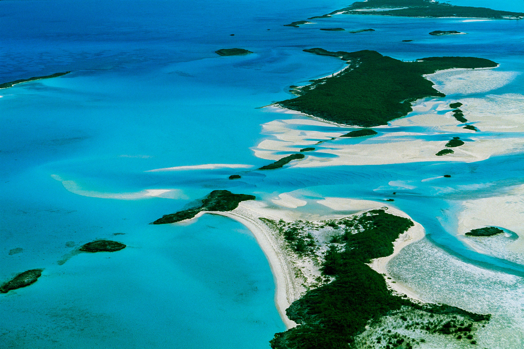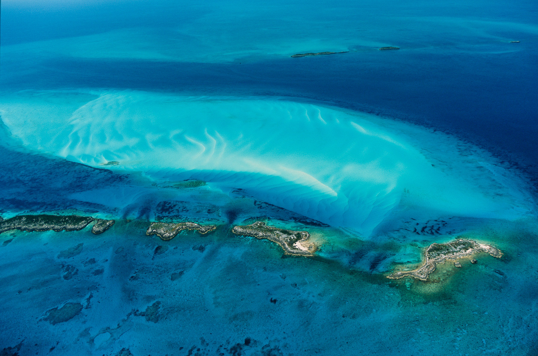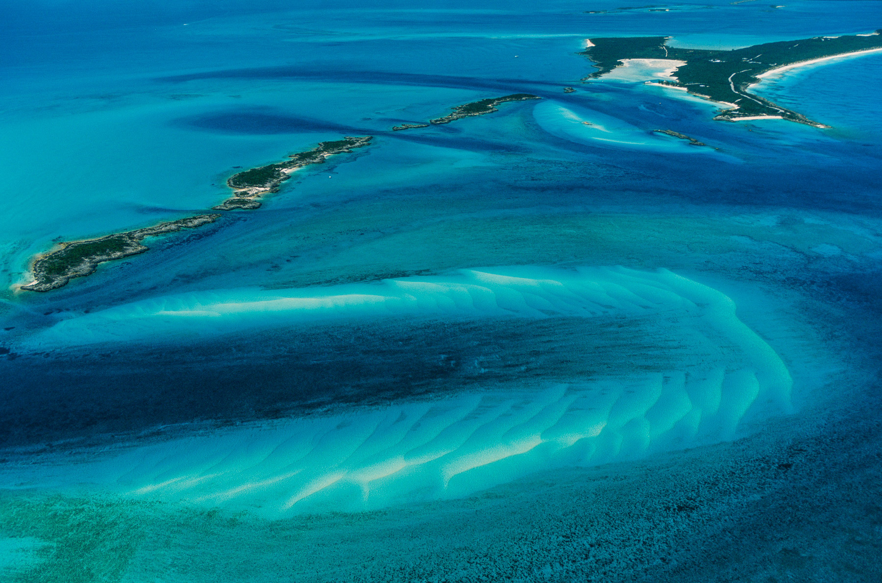 Islets and seabed, Exuma Cays, Bahamas (24°28' N – 76°46' W).