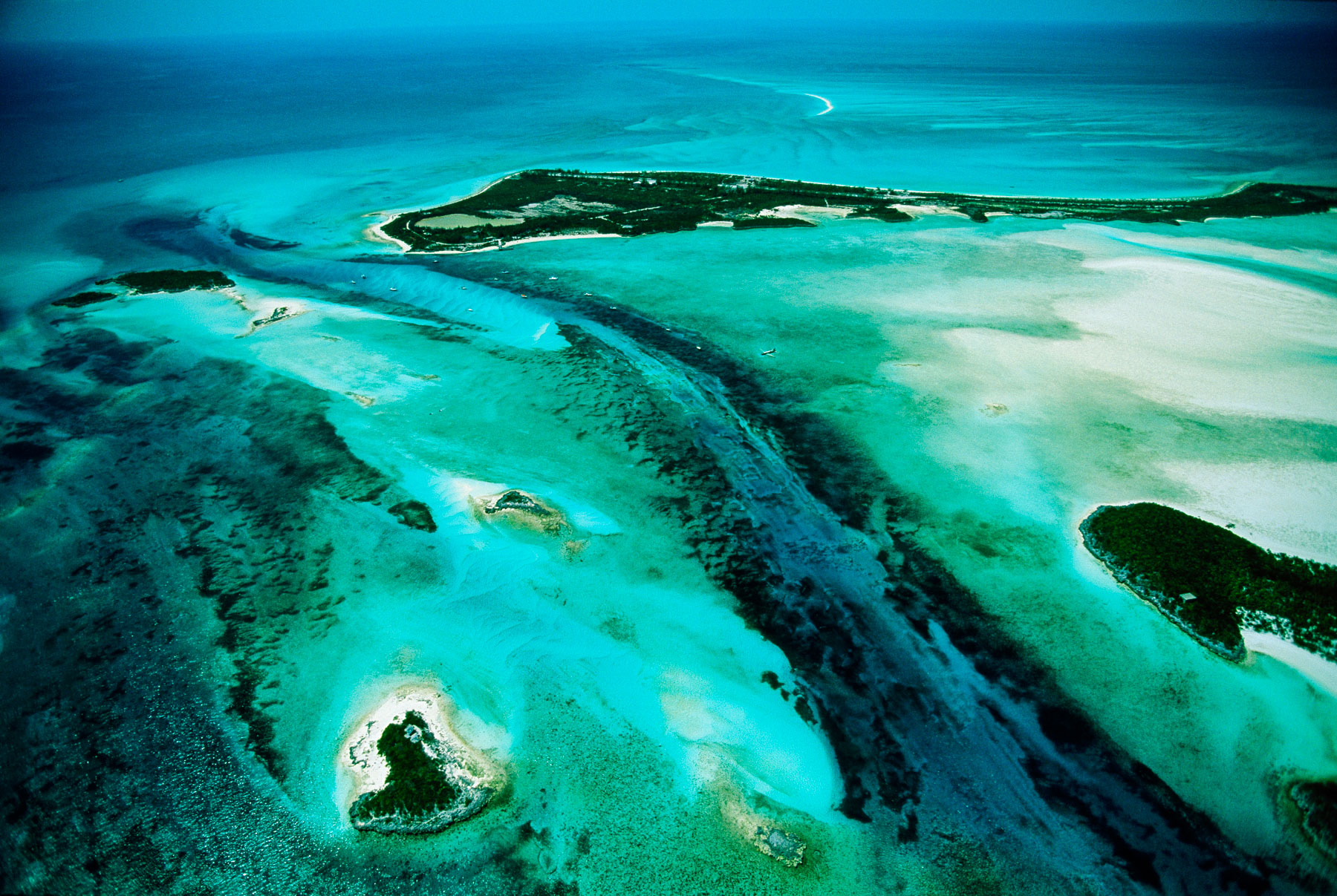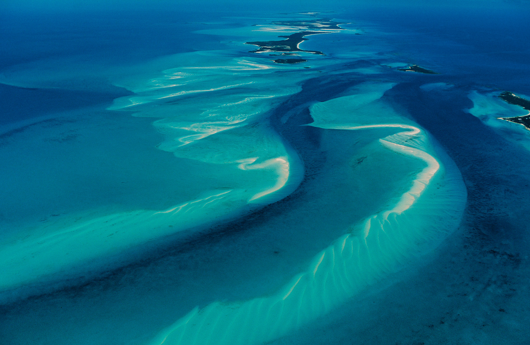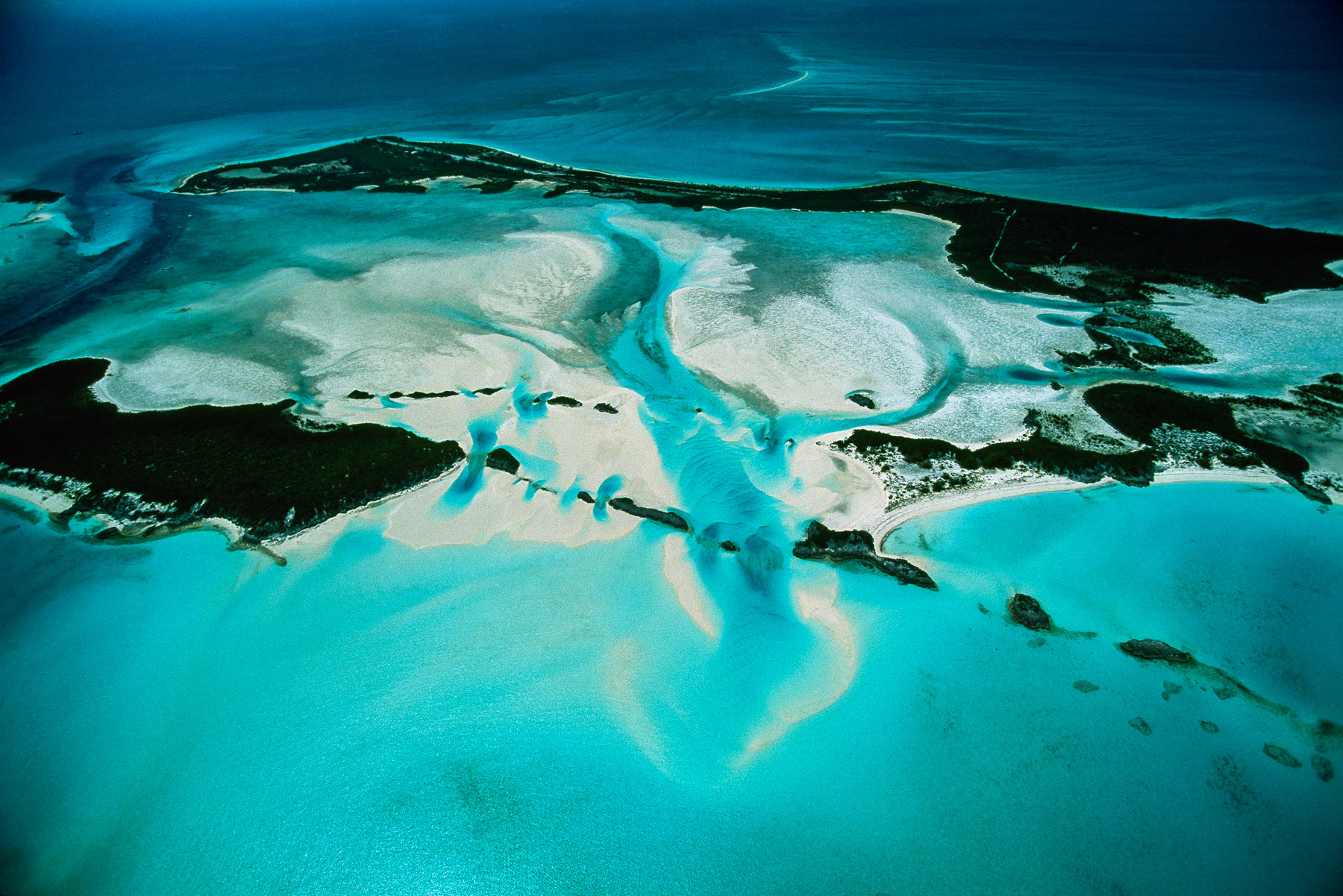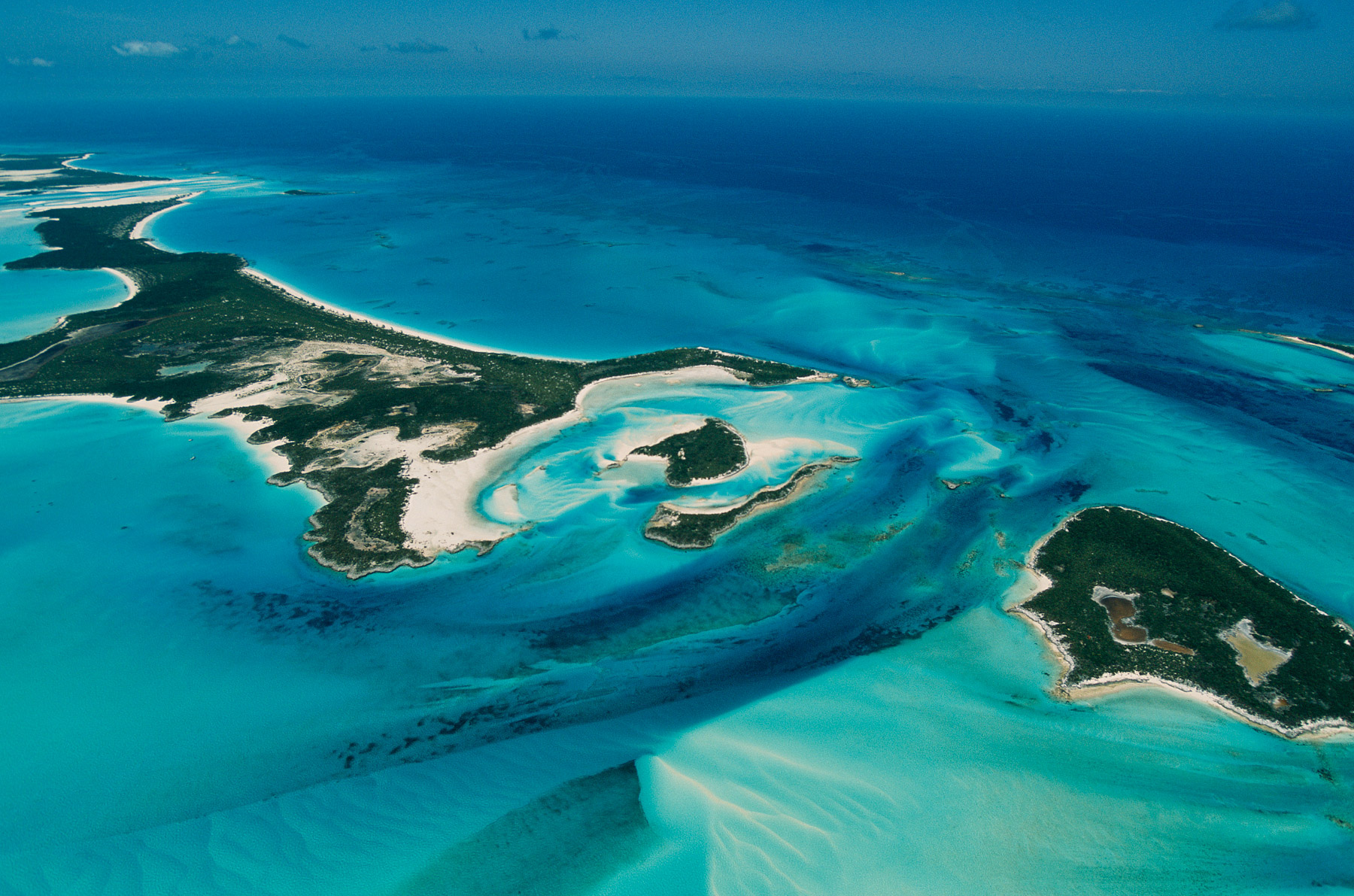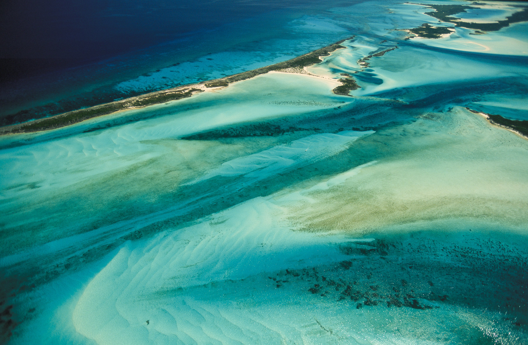 Islets and seabed, Exuma Cays, Bahamas (24°28' N – 76°46' W).