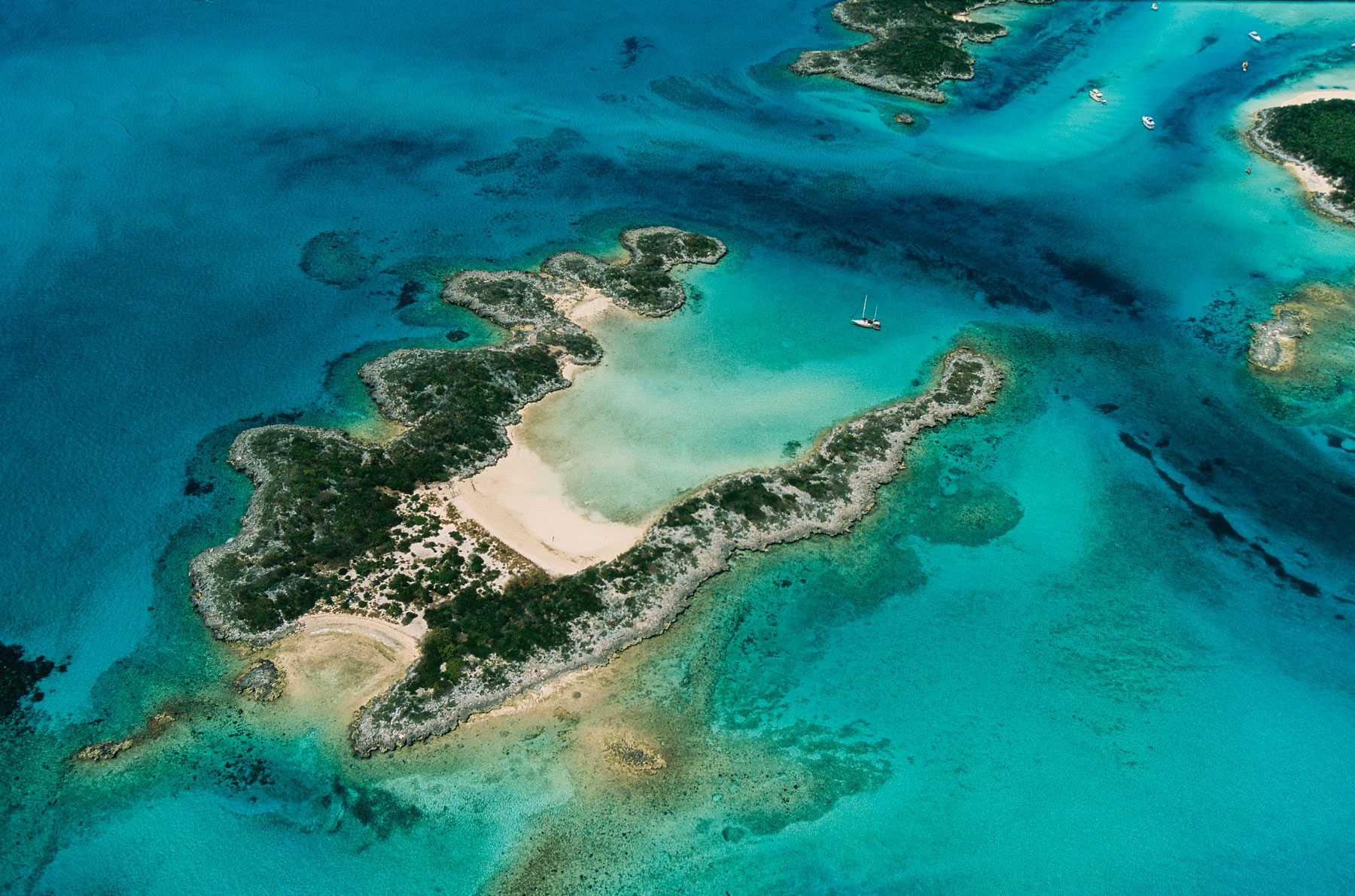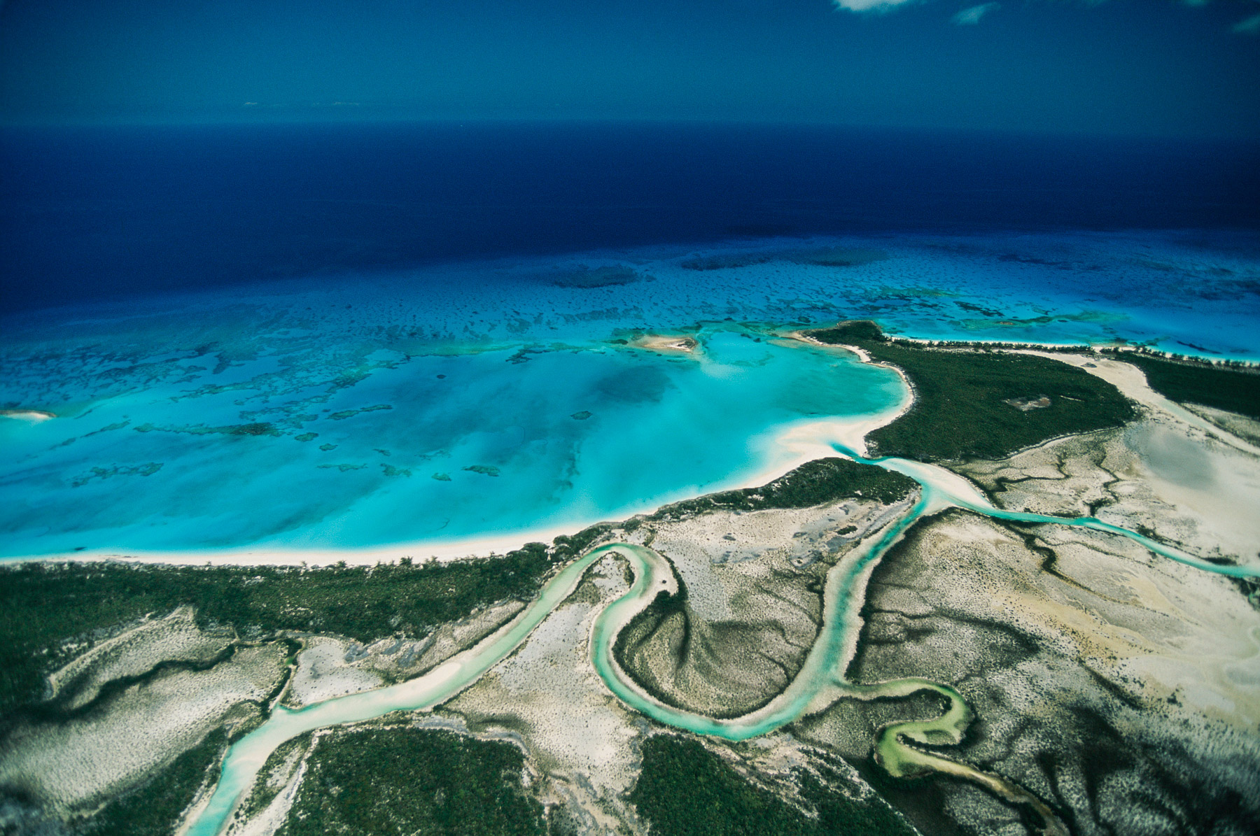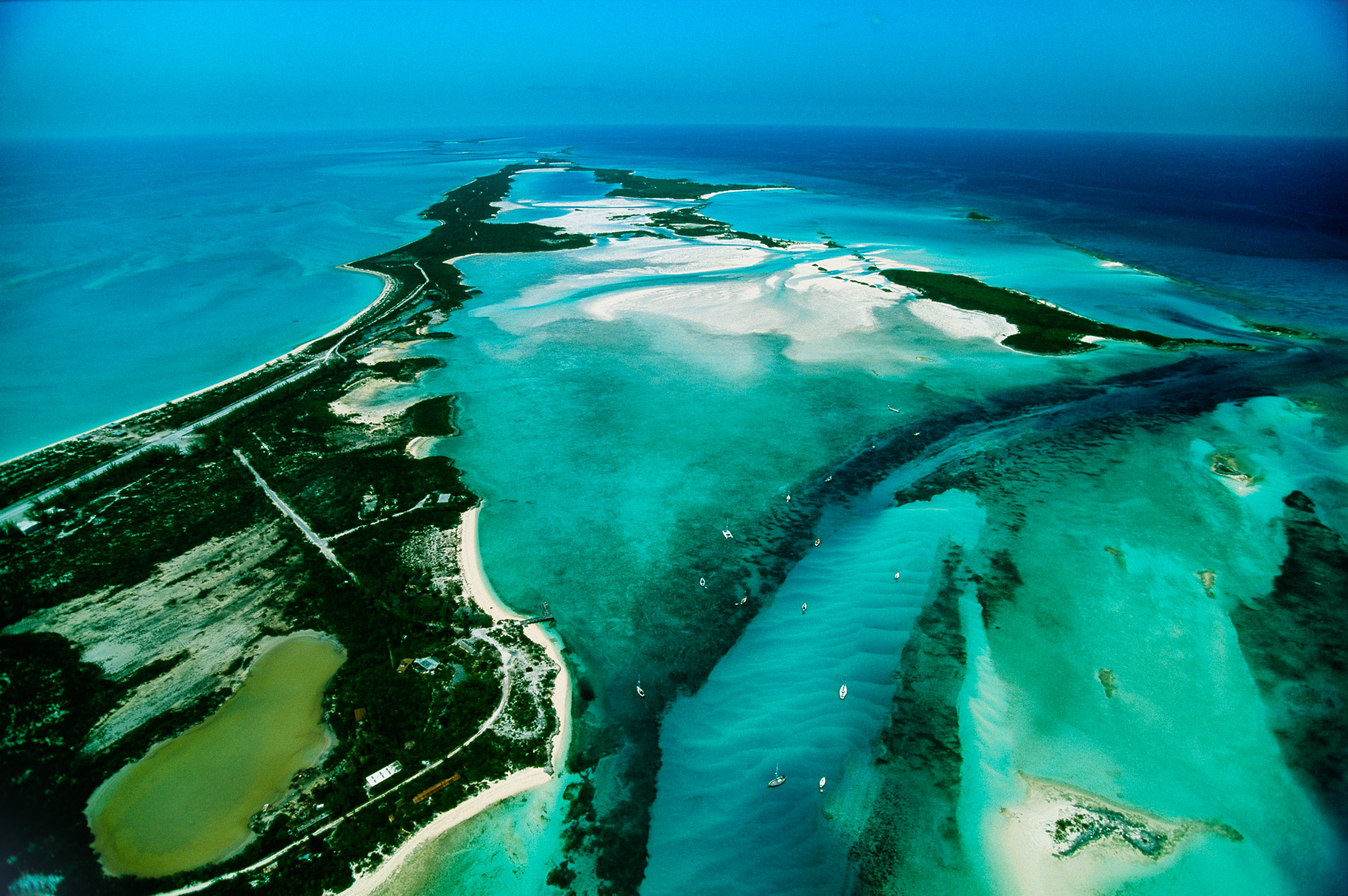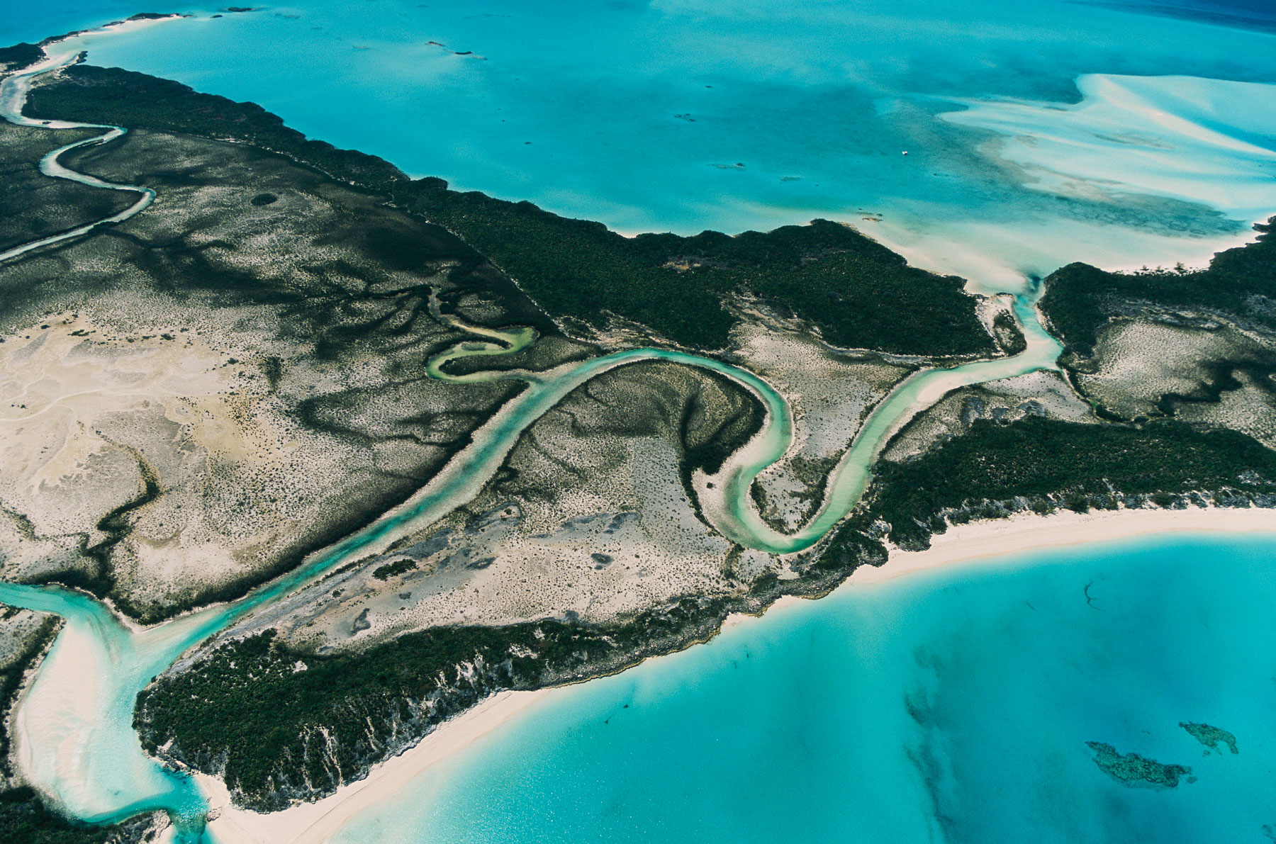 Islets and seabed, Exuma Cays, Bahamas (24°28' N – 76°46' W).