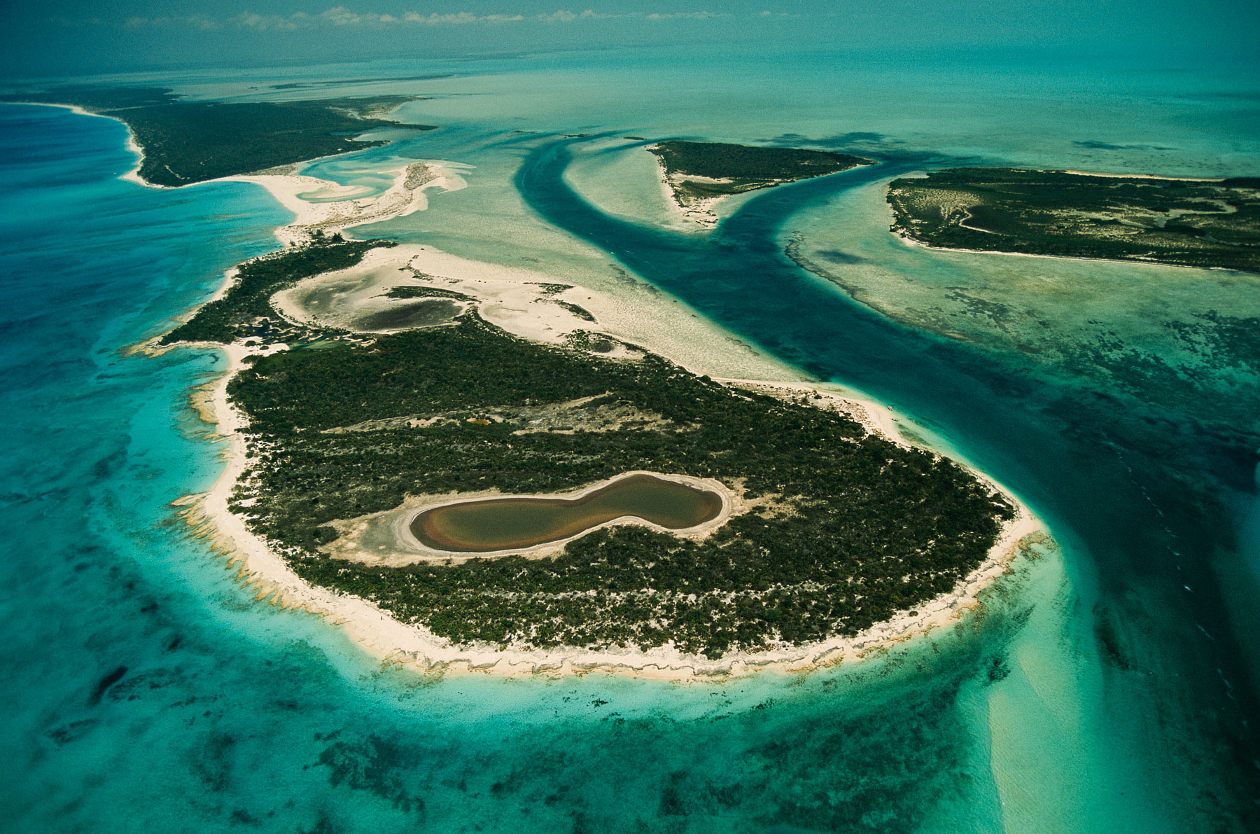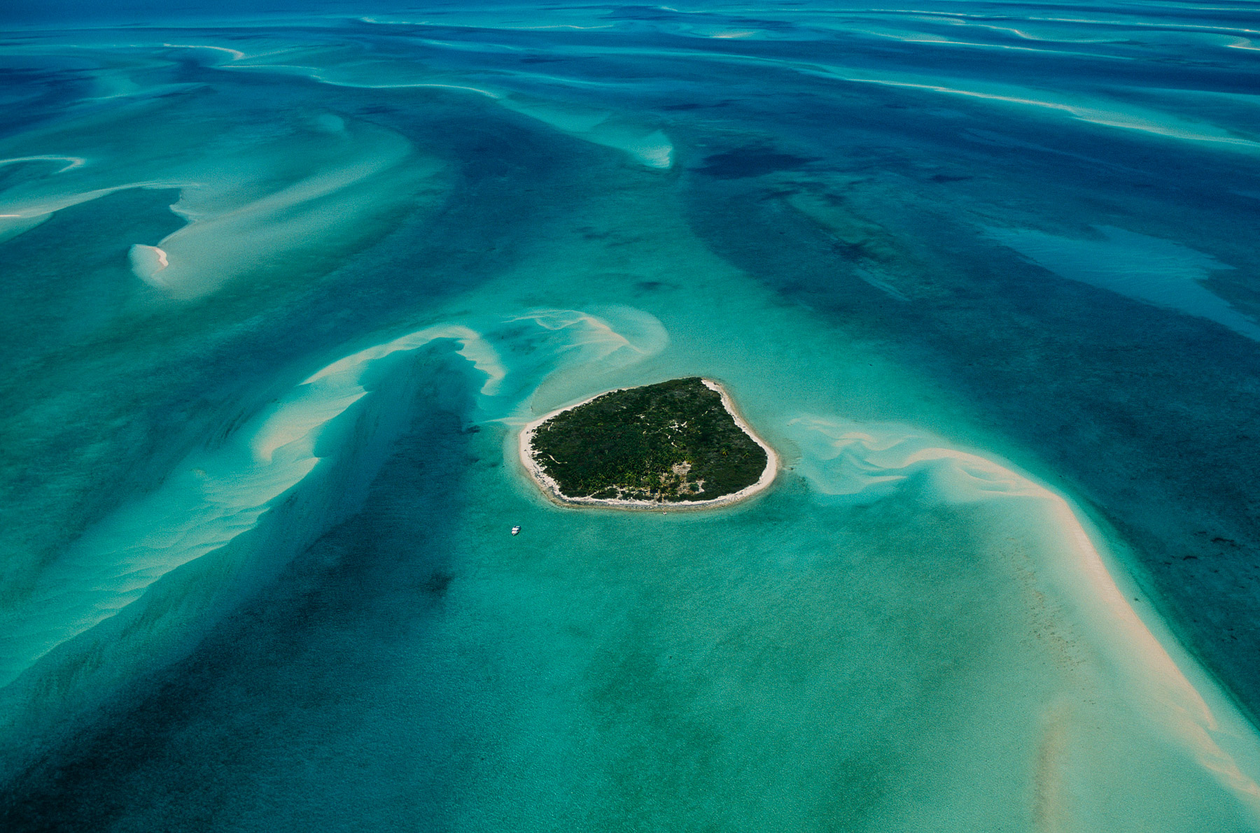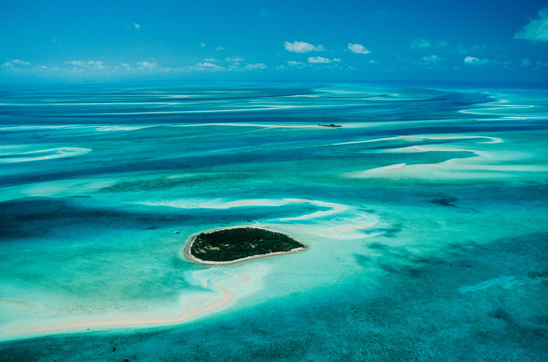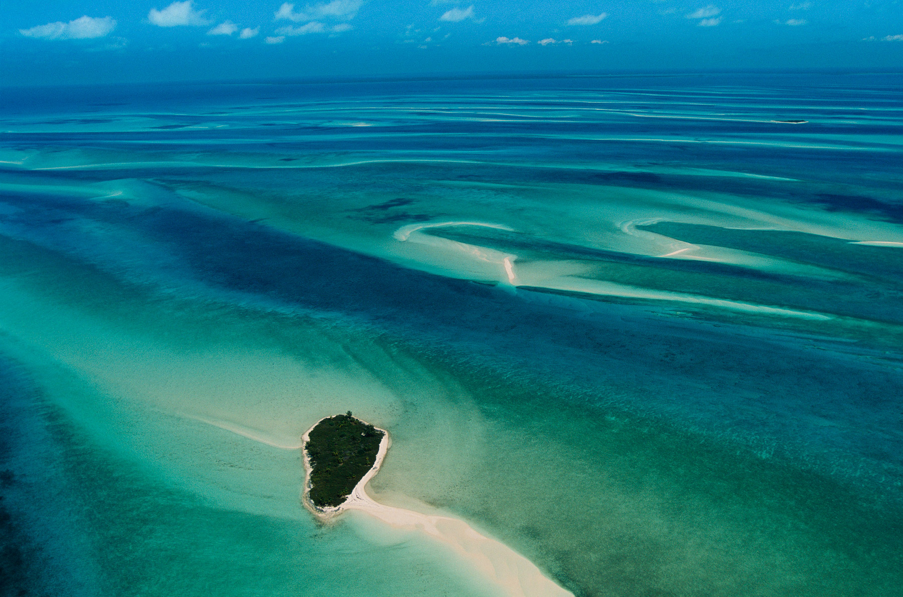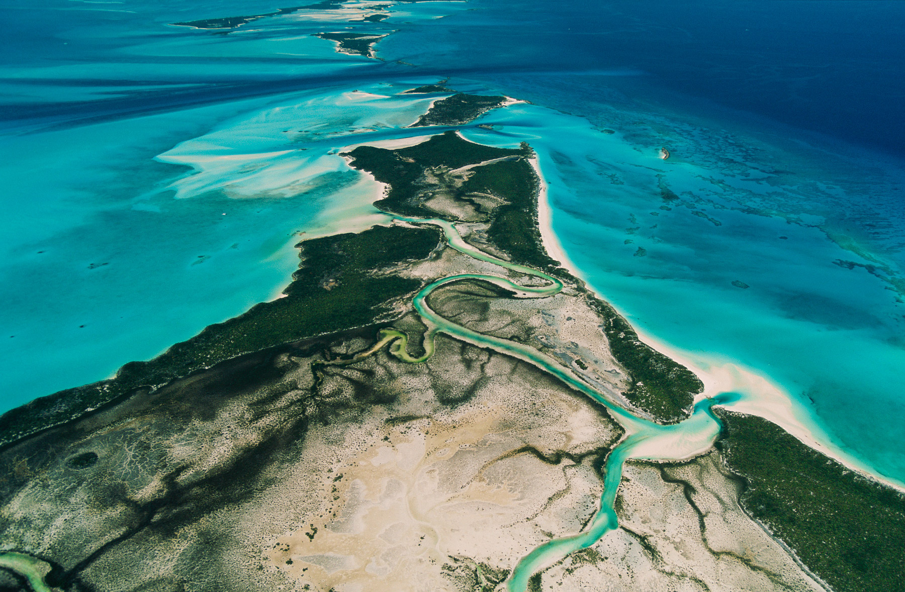 Islets and seabed, Exuma Cays, Bahamas (24°28' N – 76°46' W).