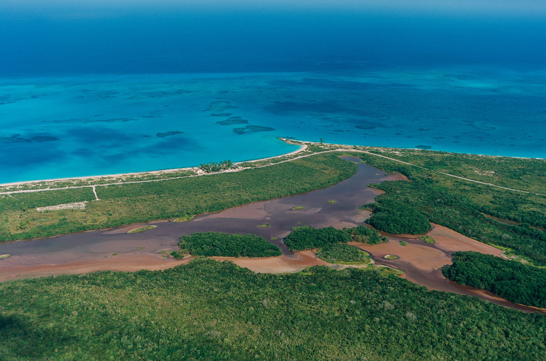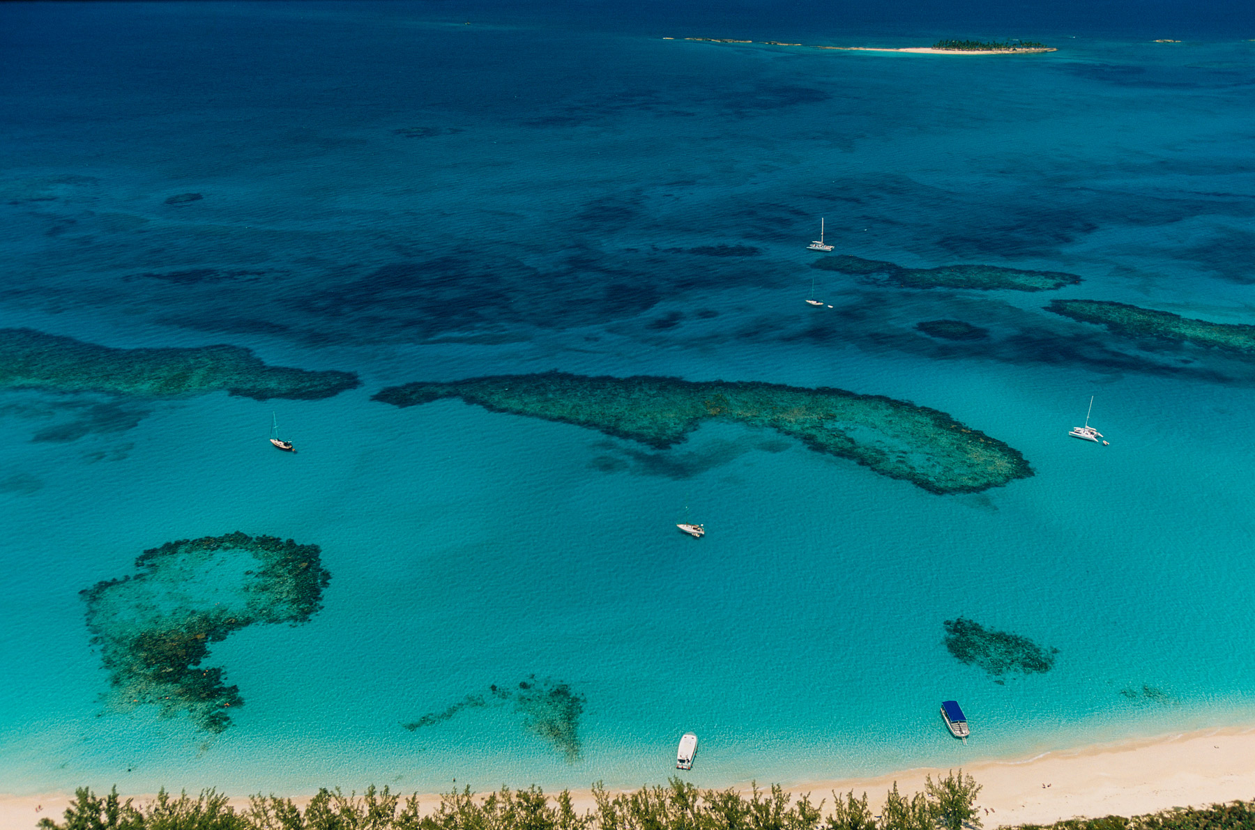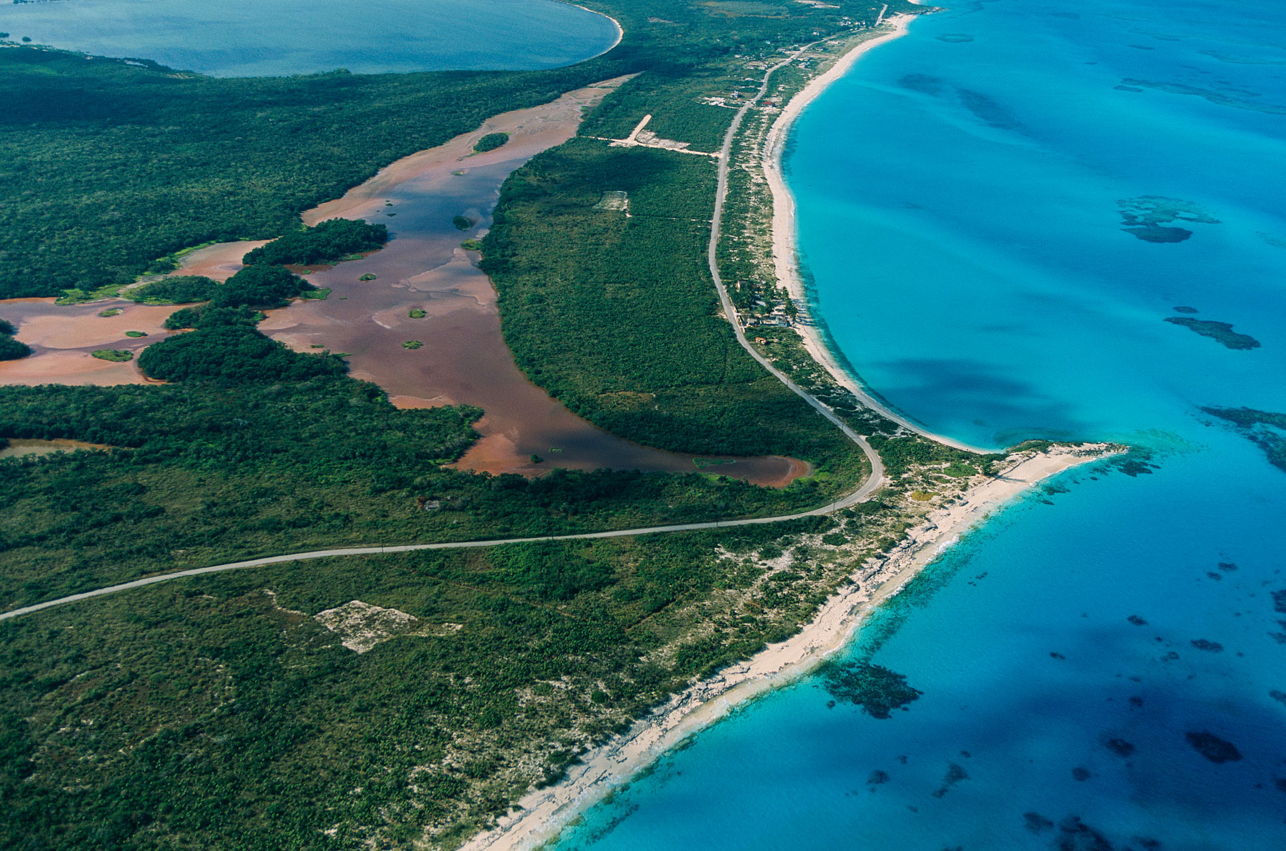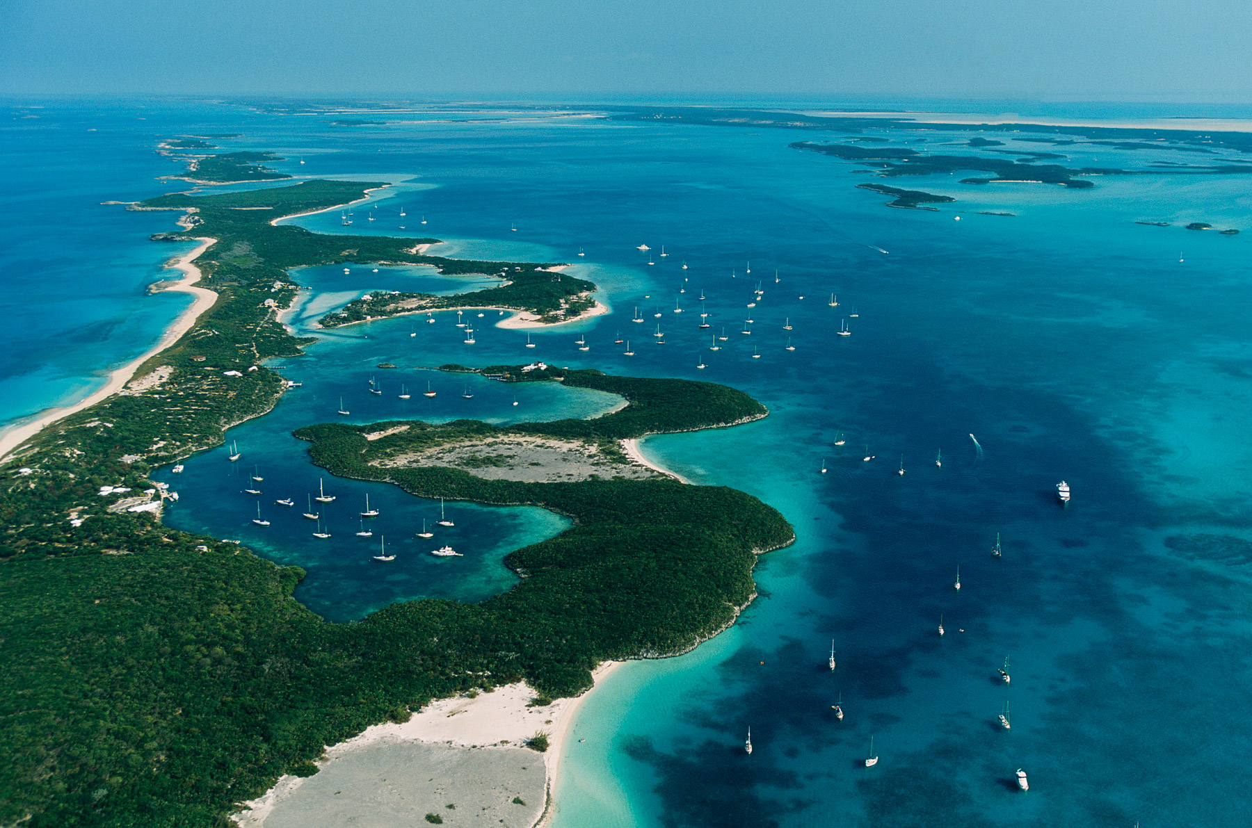 Islets and seabed, Exuma Cays, Bahamas (24°28' N – 76°46' W).