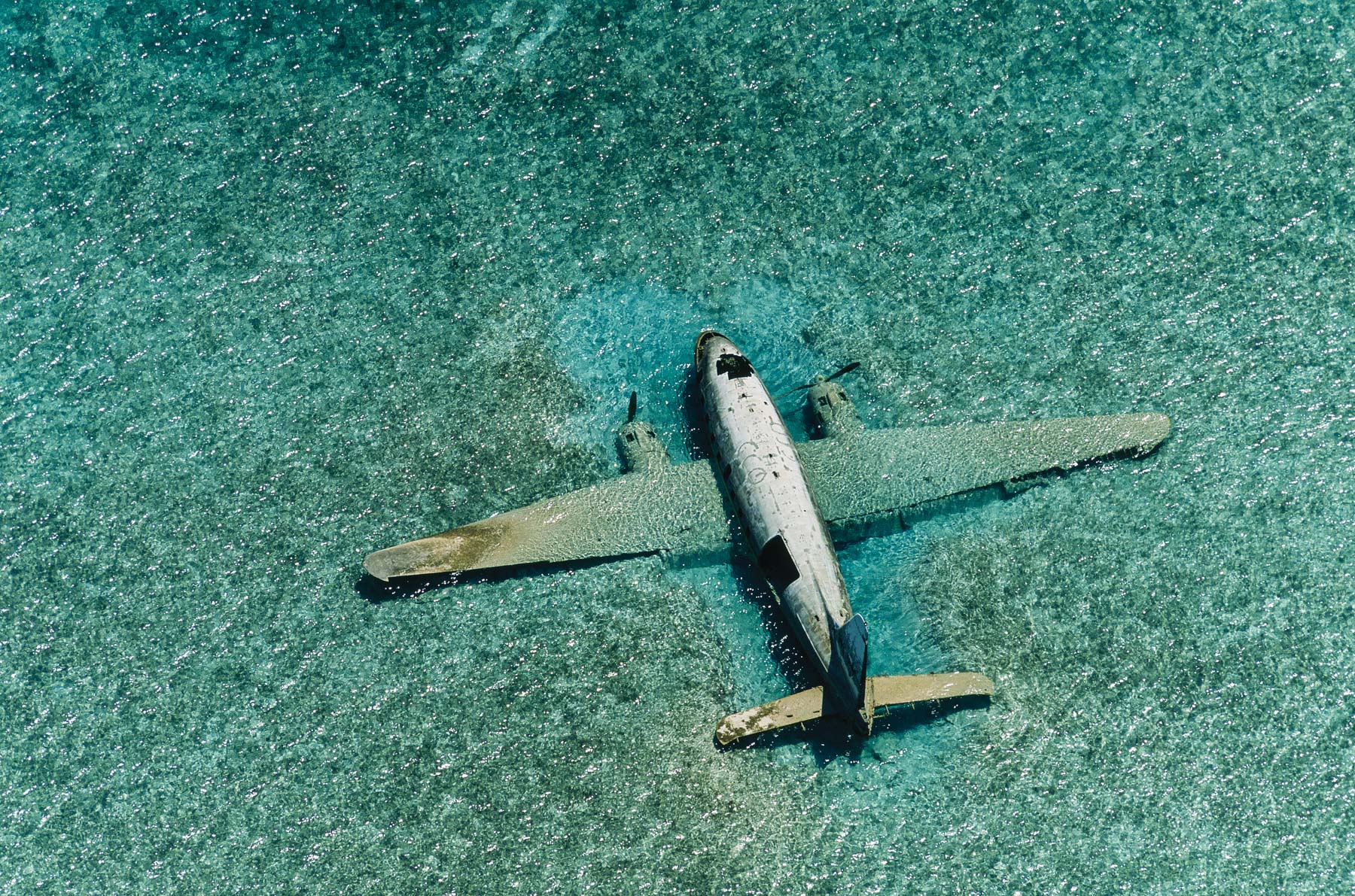 Exuma islands - Wreck of drug traffickers' plane in the sea - Bahamas