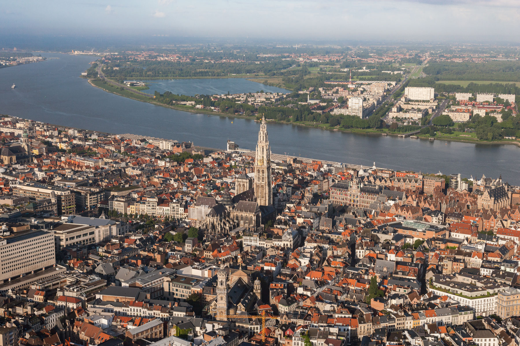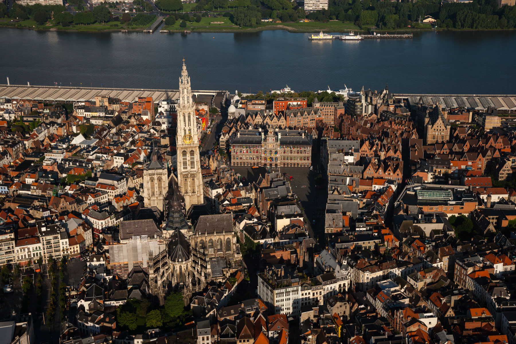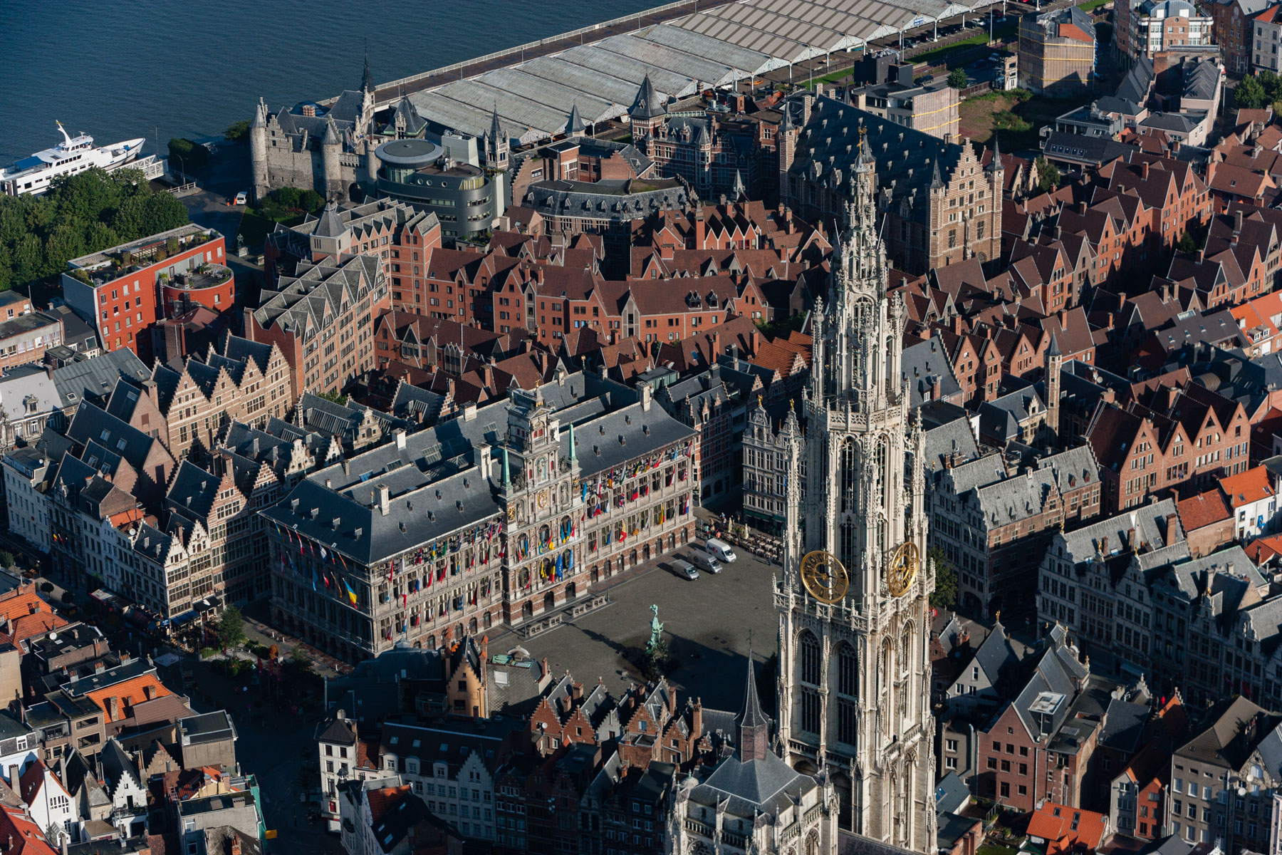 Antwerp : The tower of the Cathedral of Our-Lady and the old town - Flemish region - Belgium
