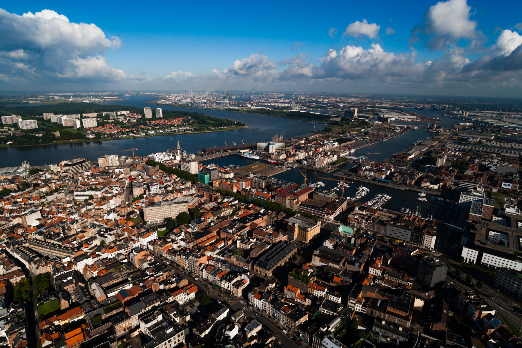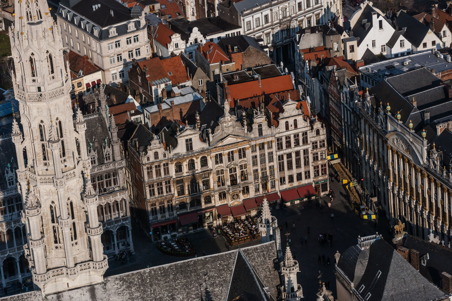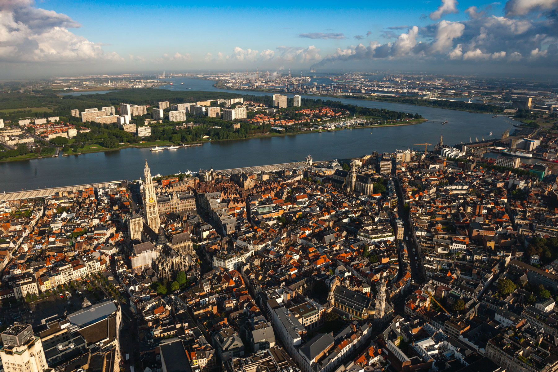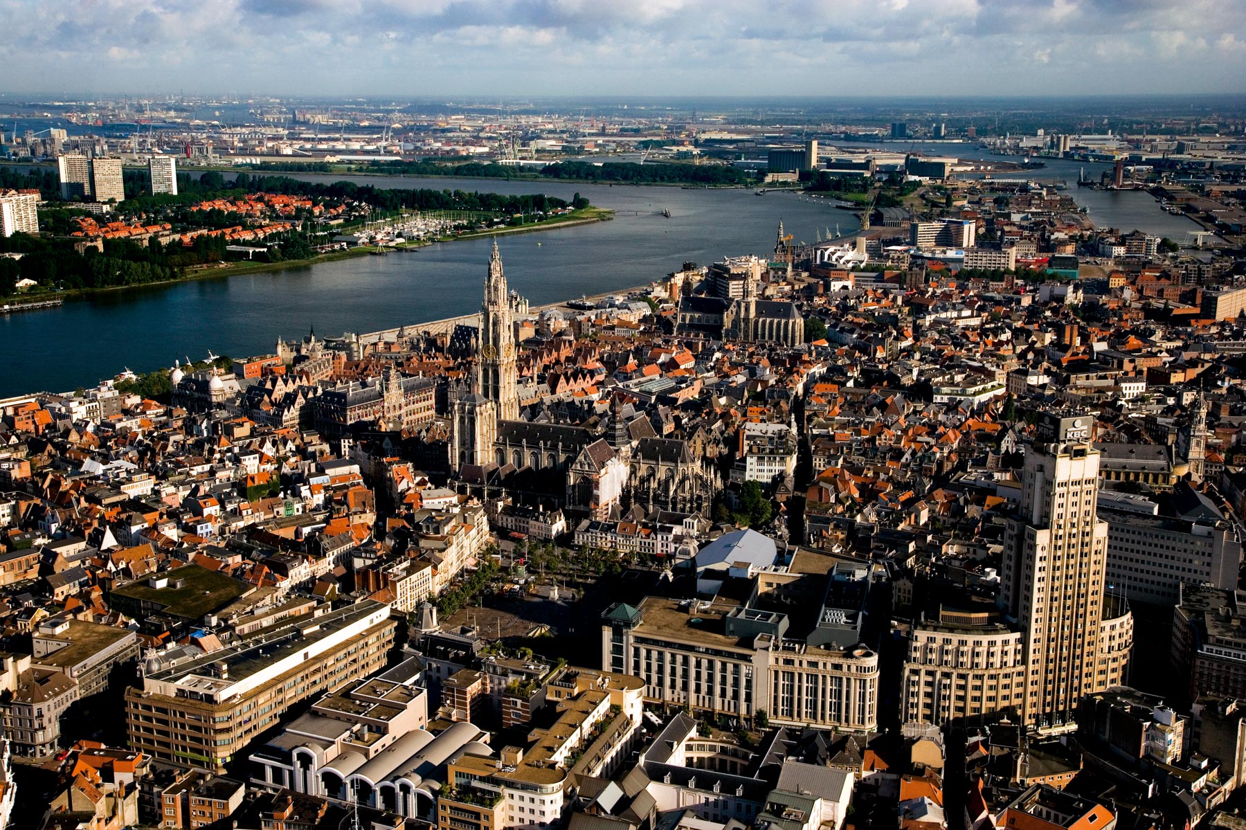Antwerp : The tower of the Cathedral of Our-Lady and the old town - Flemish region - Belgium