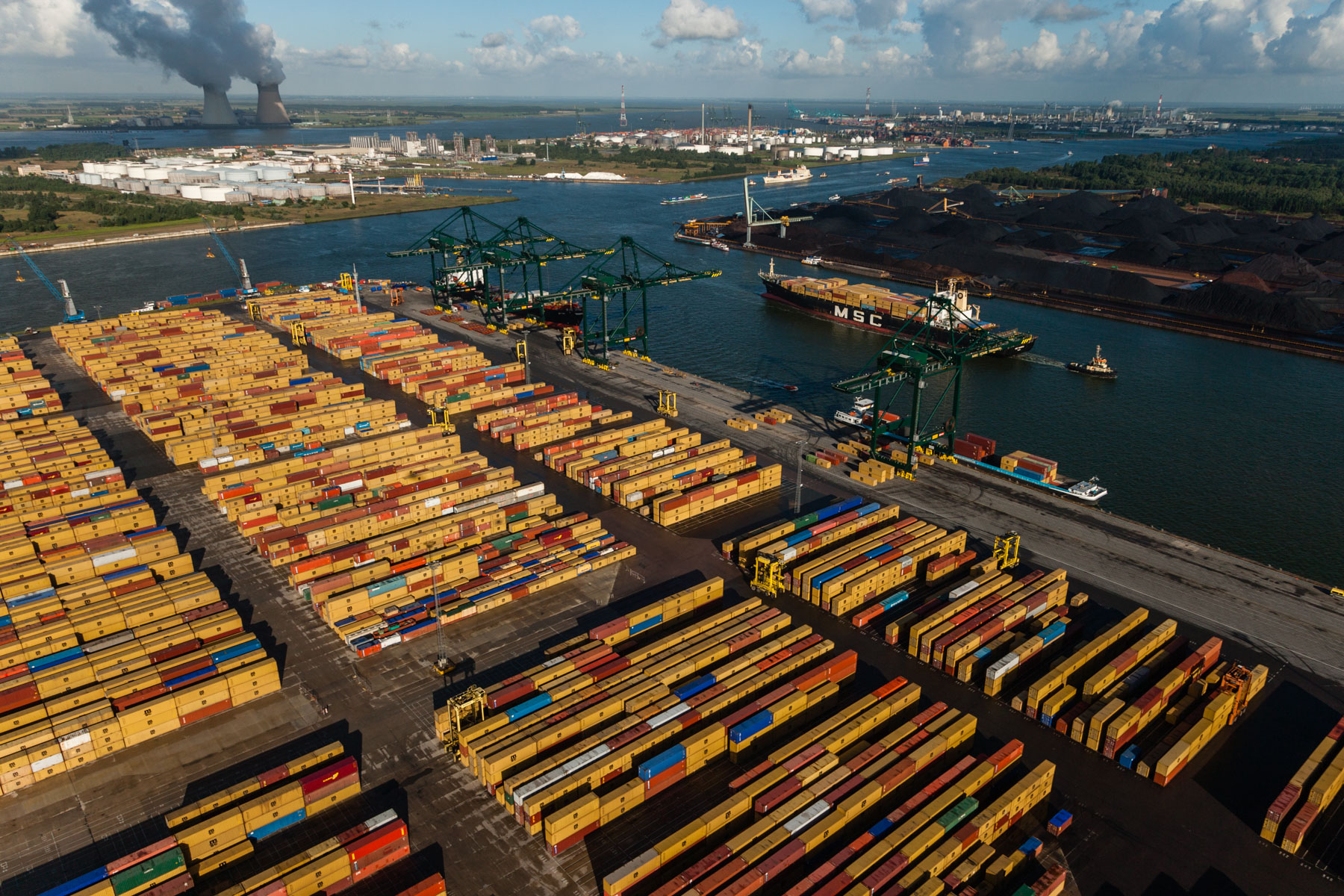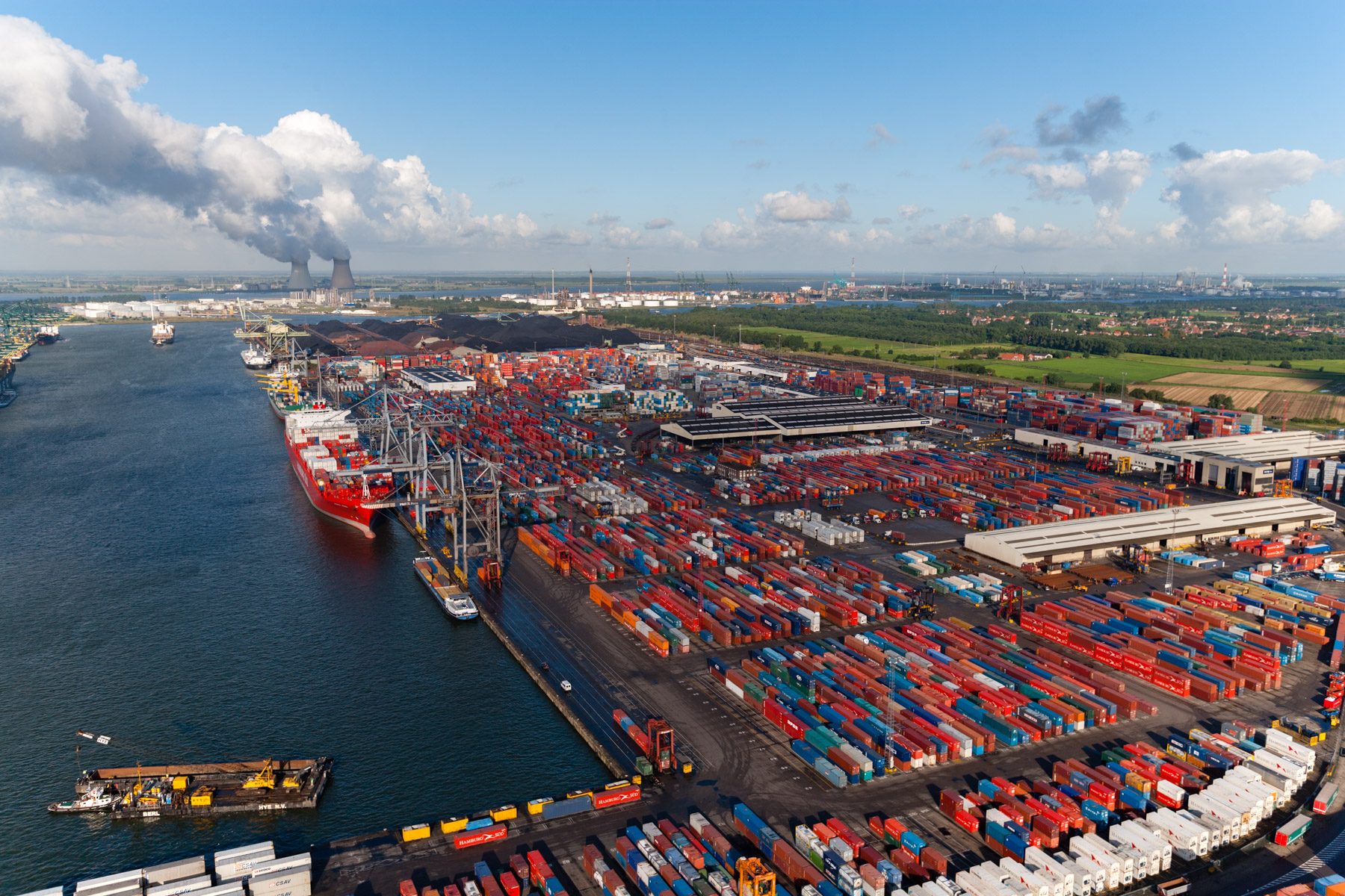 Antwerp - Container-ship in the industrial port - Flemish region - Belgium