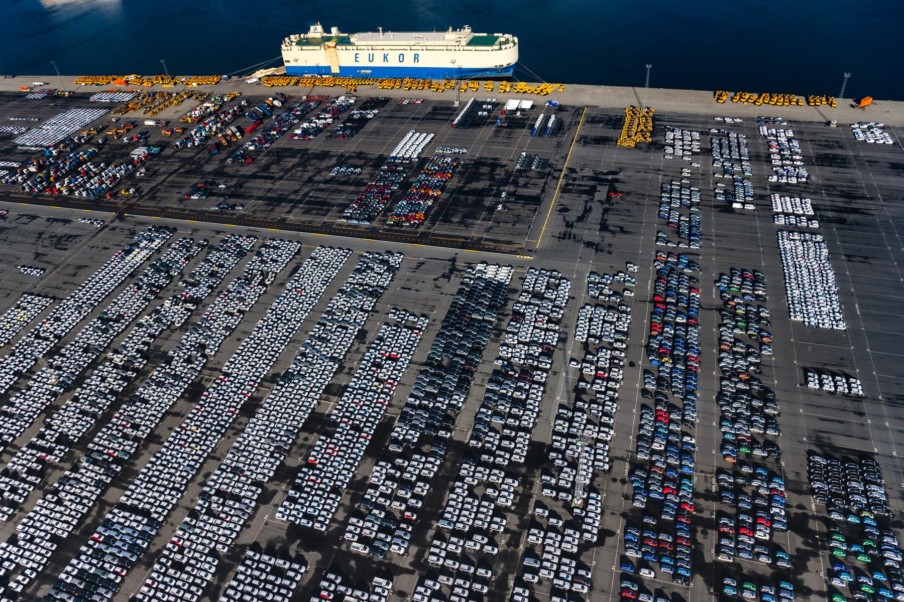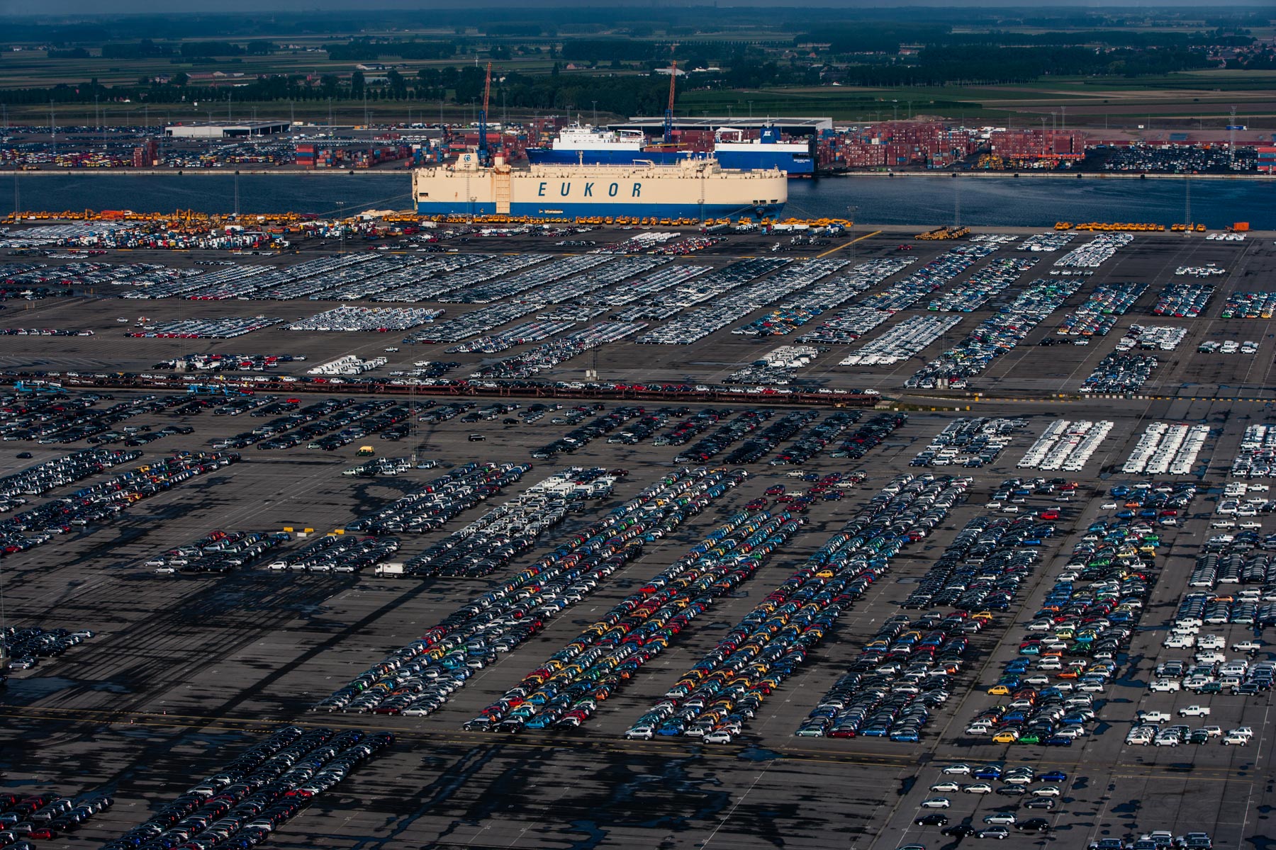 Antwerp - The industrial port : Parking lot of cars - Belgium