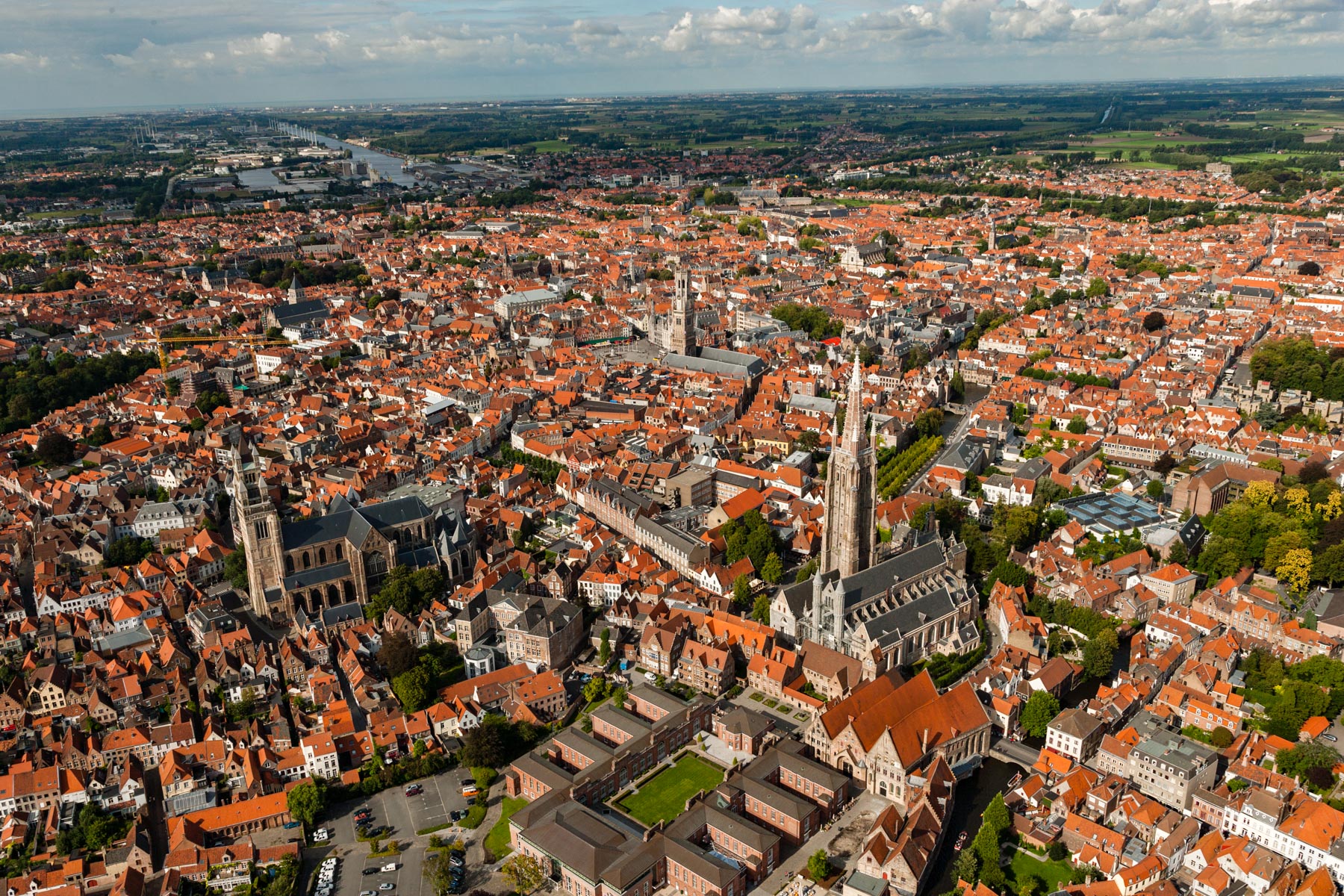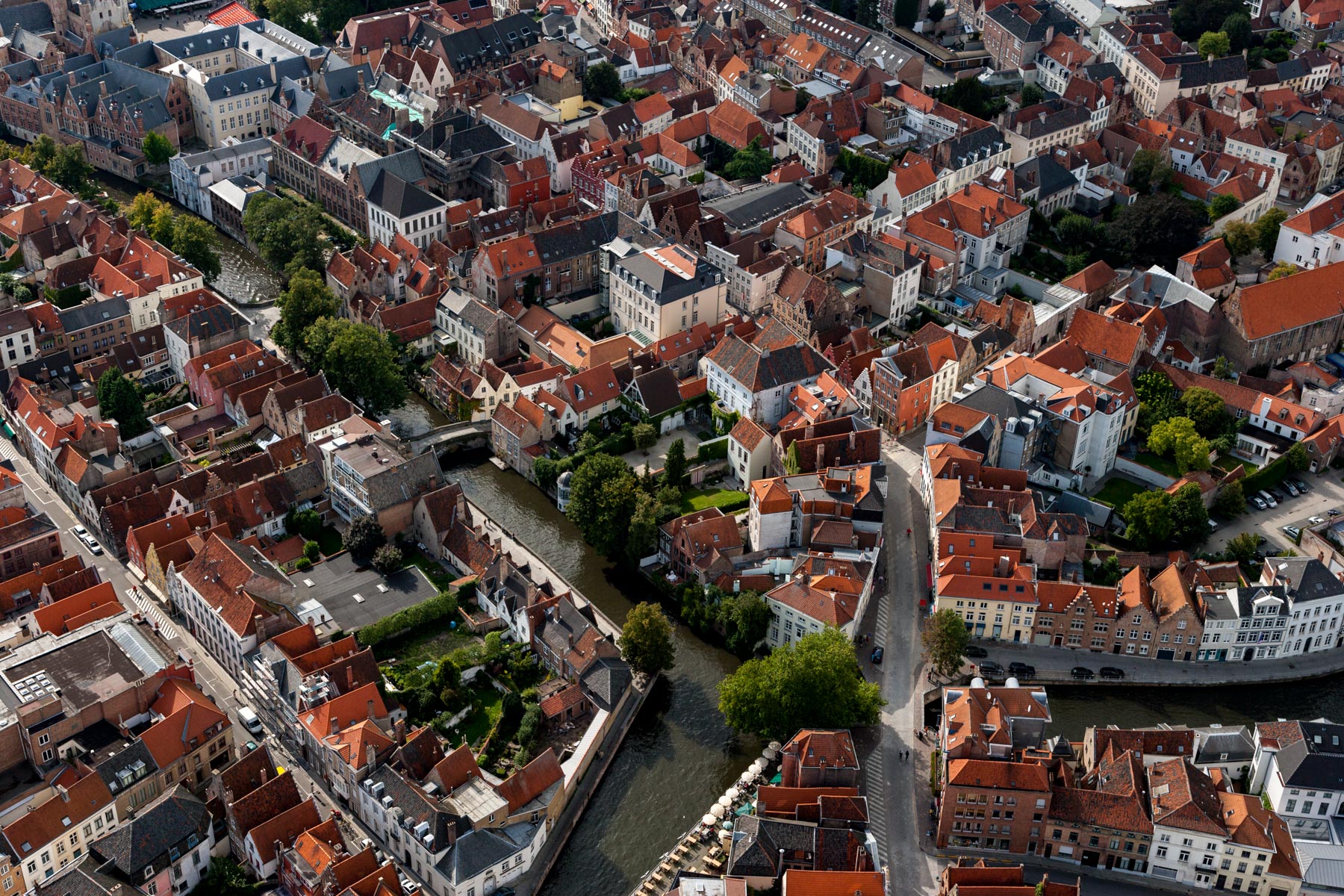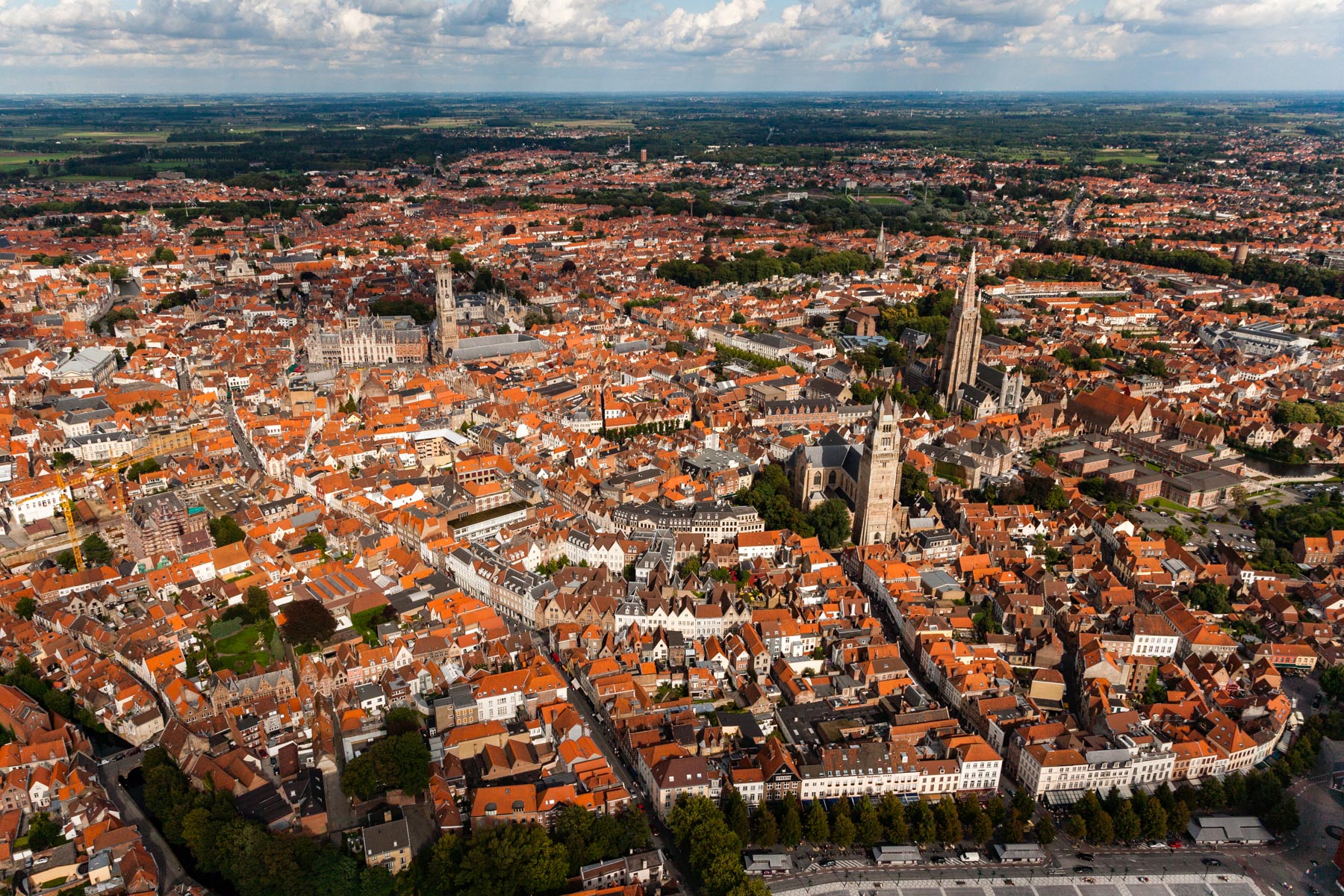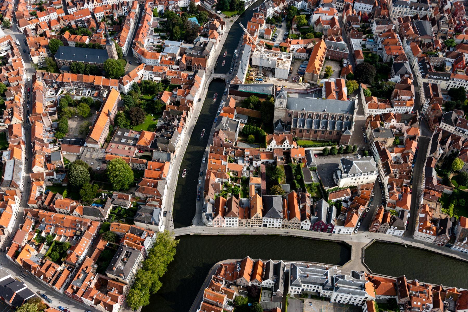 Bruges - Overview of the city and Concert hall " Concertgebouw " - Flemish region - Belgium
