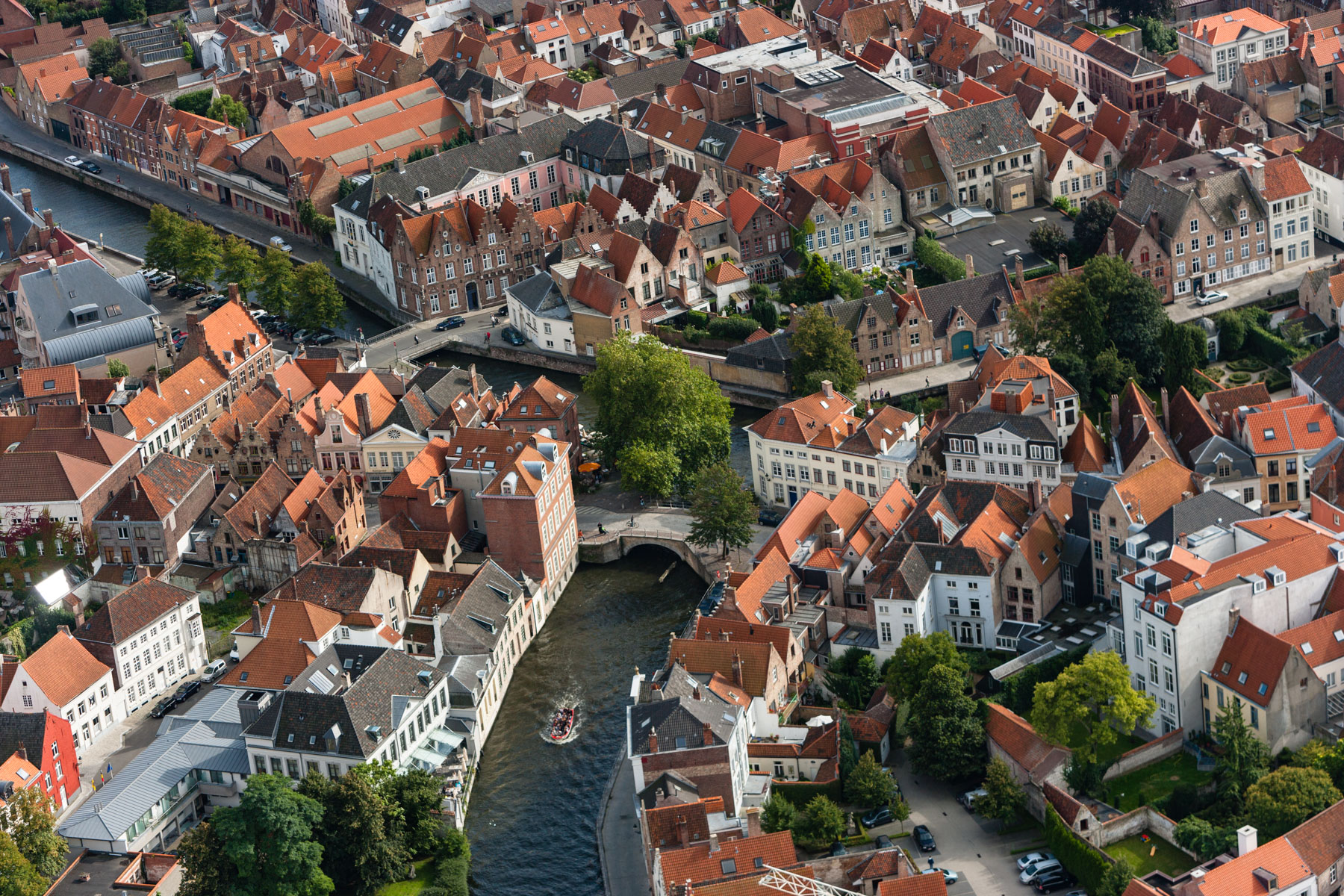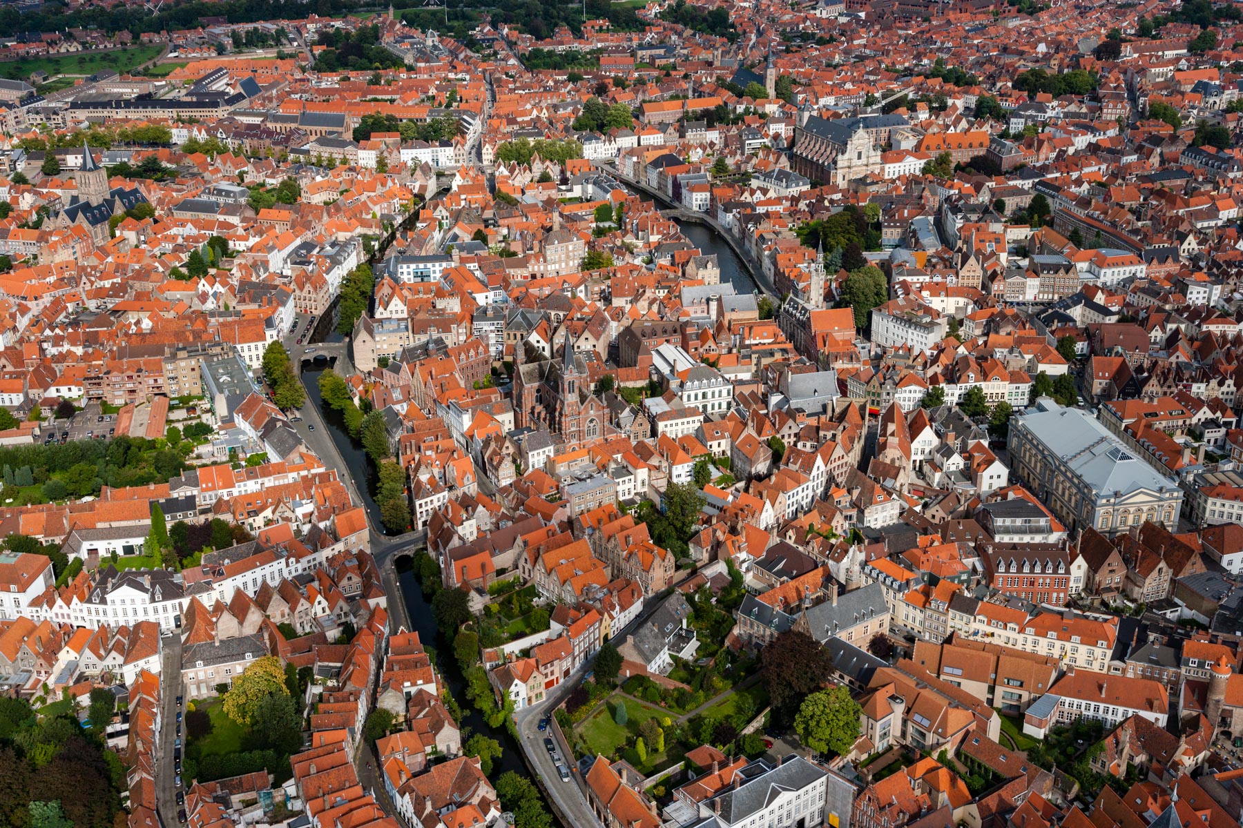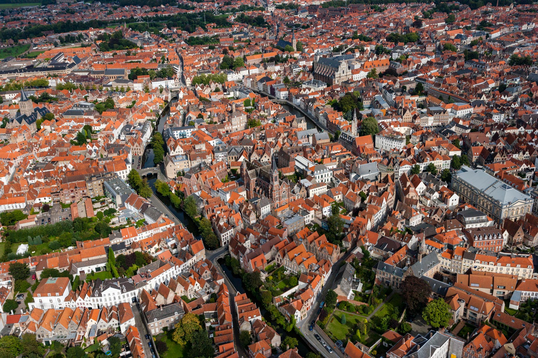 Bruges - Overview of the city and Concert hall " Concertgebouw " - Flemish region - Belgium