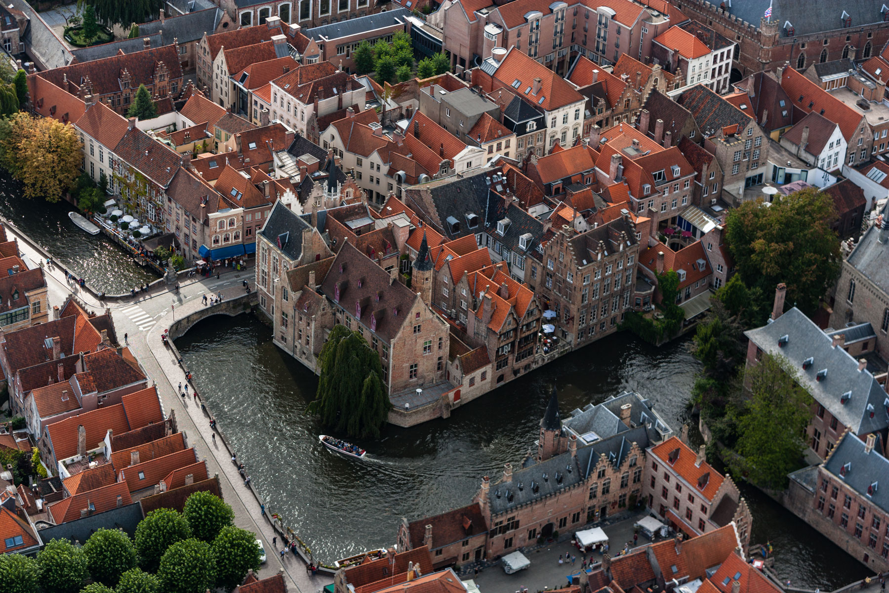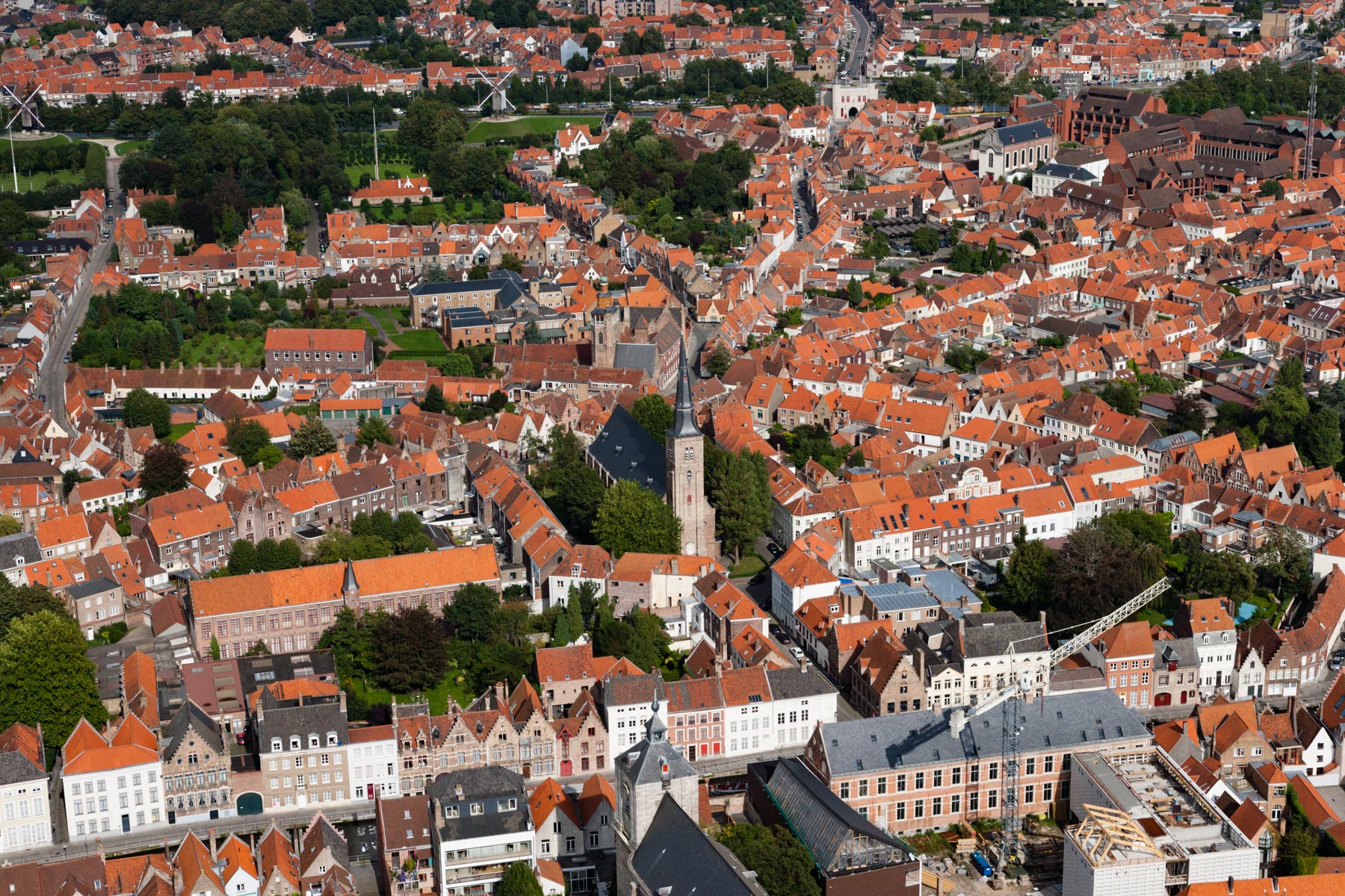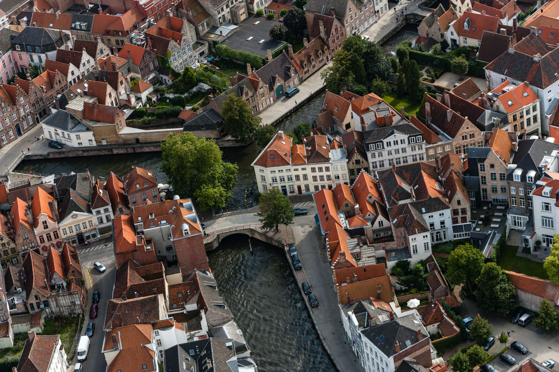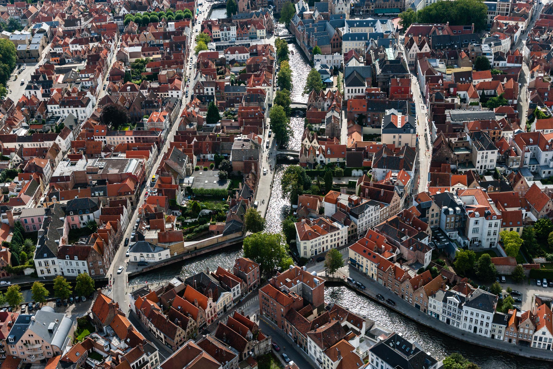 Bruges - Overview of the city and Concert hall " Concertgebouw " - Flemish region - Belgium