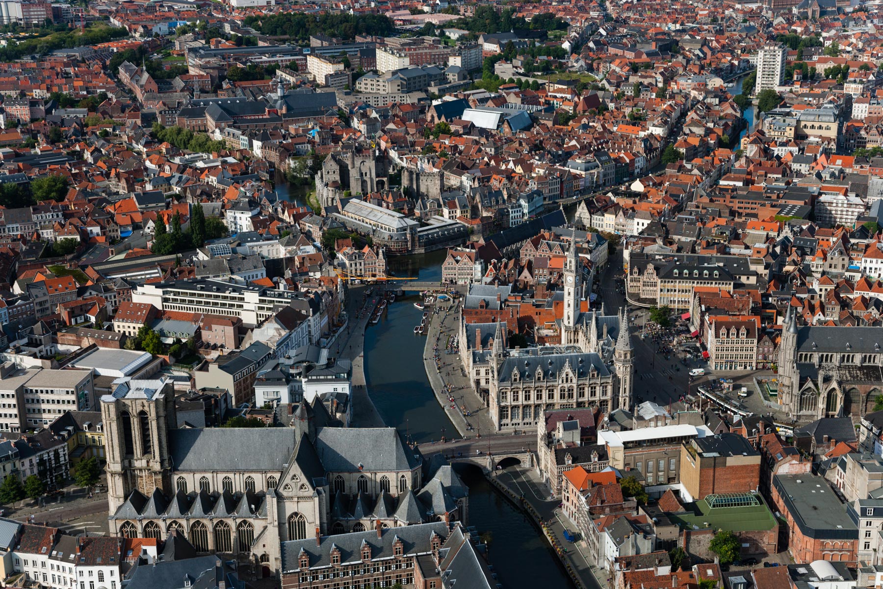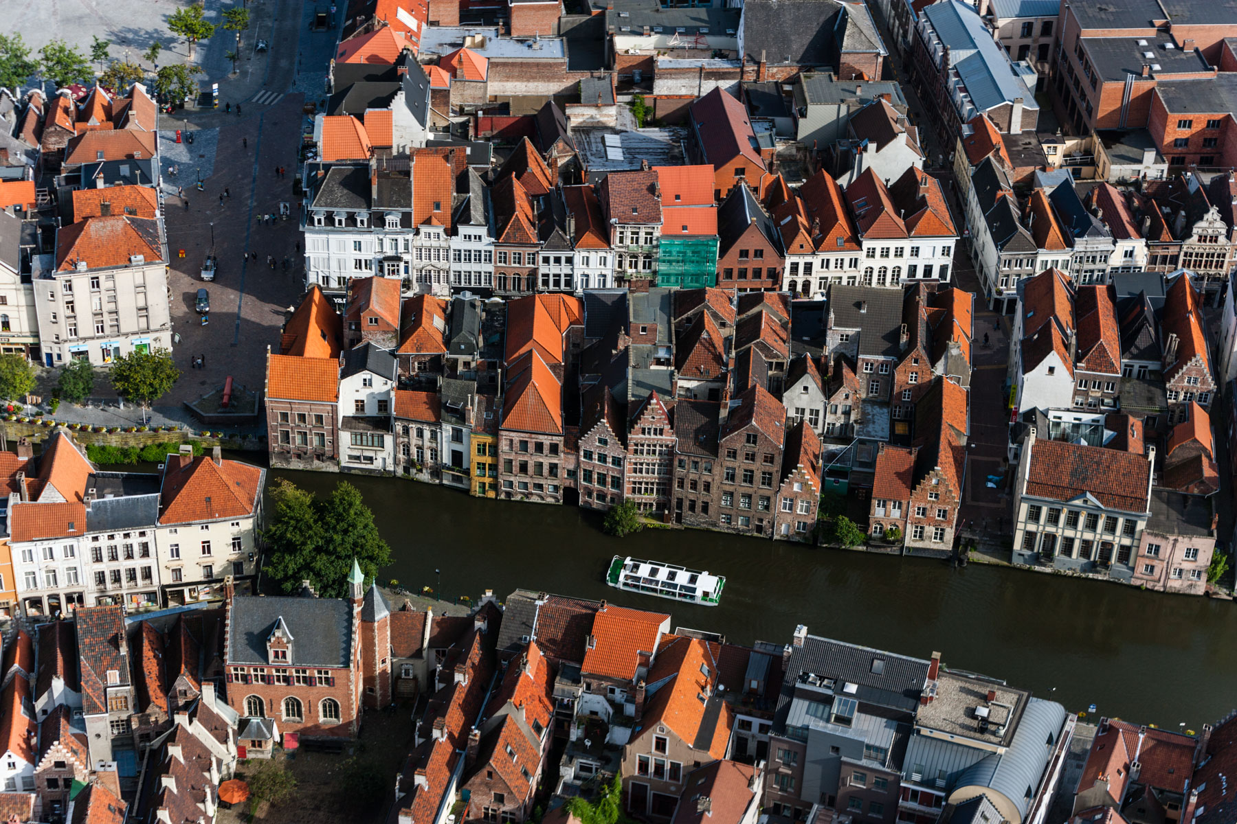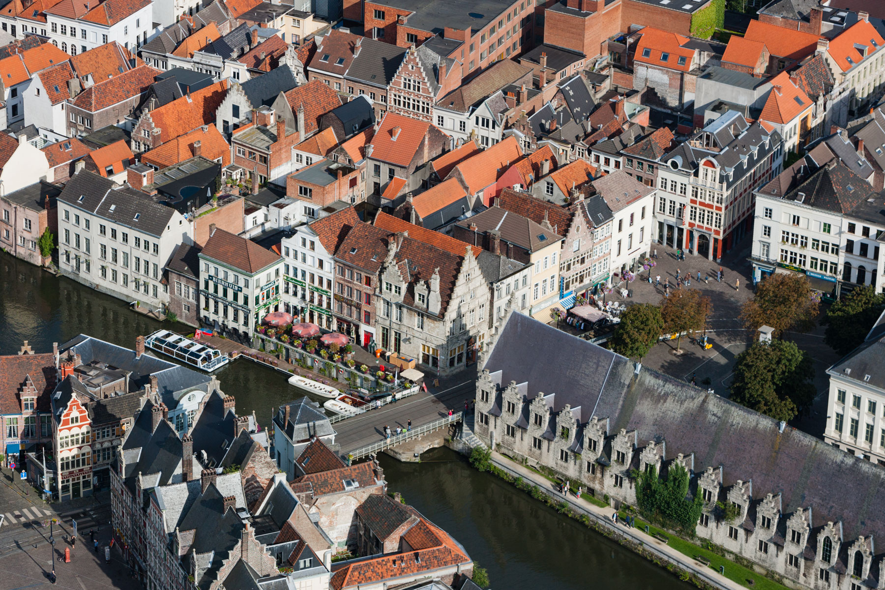 Ghent - Overview and river of La Lys- Flemish region - Belgium
