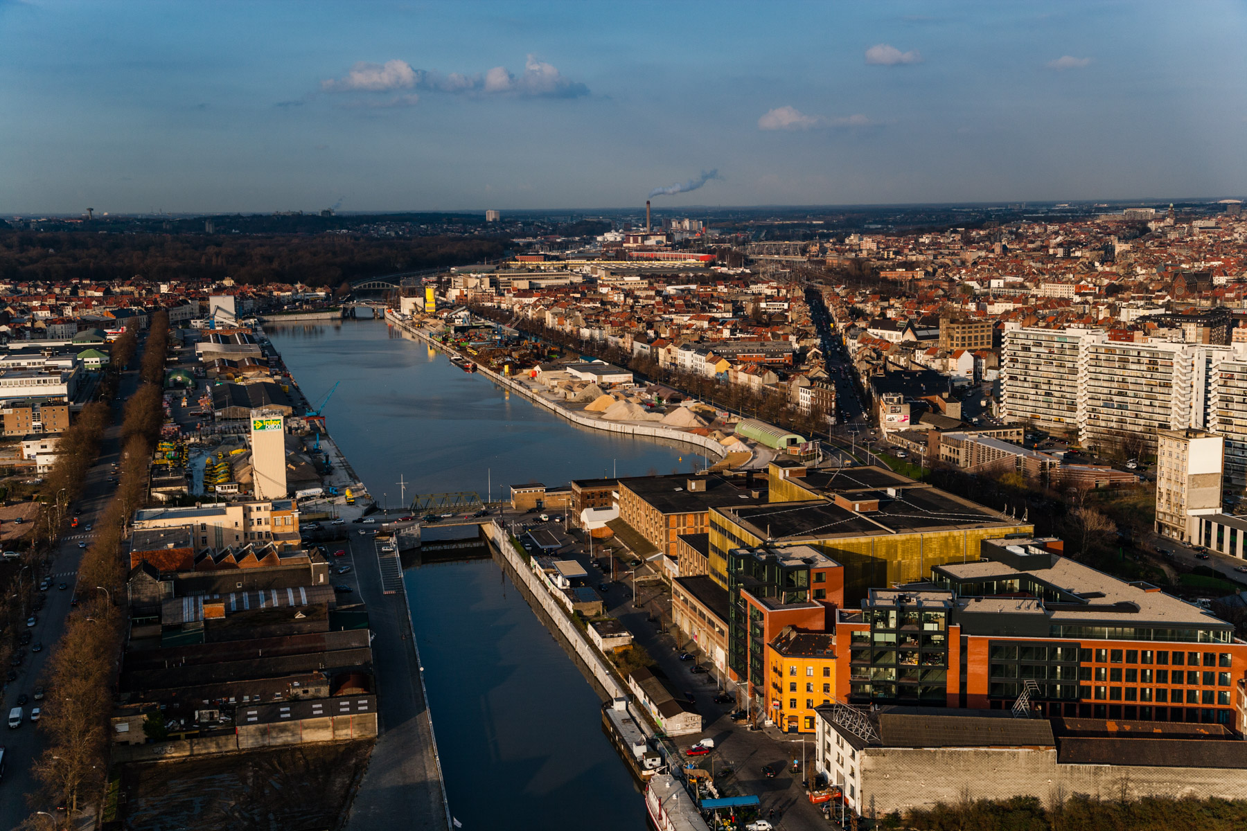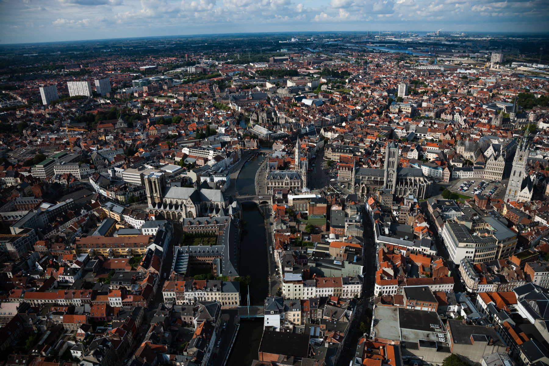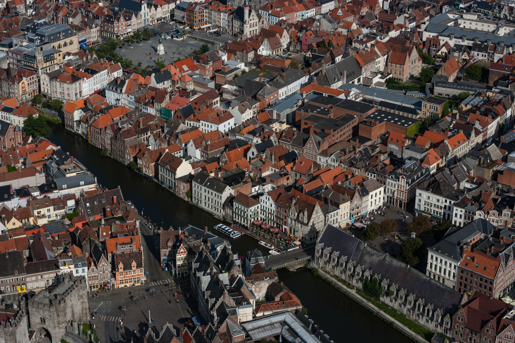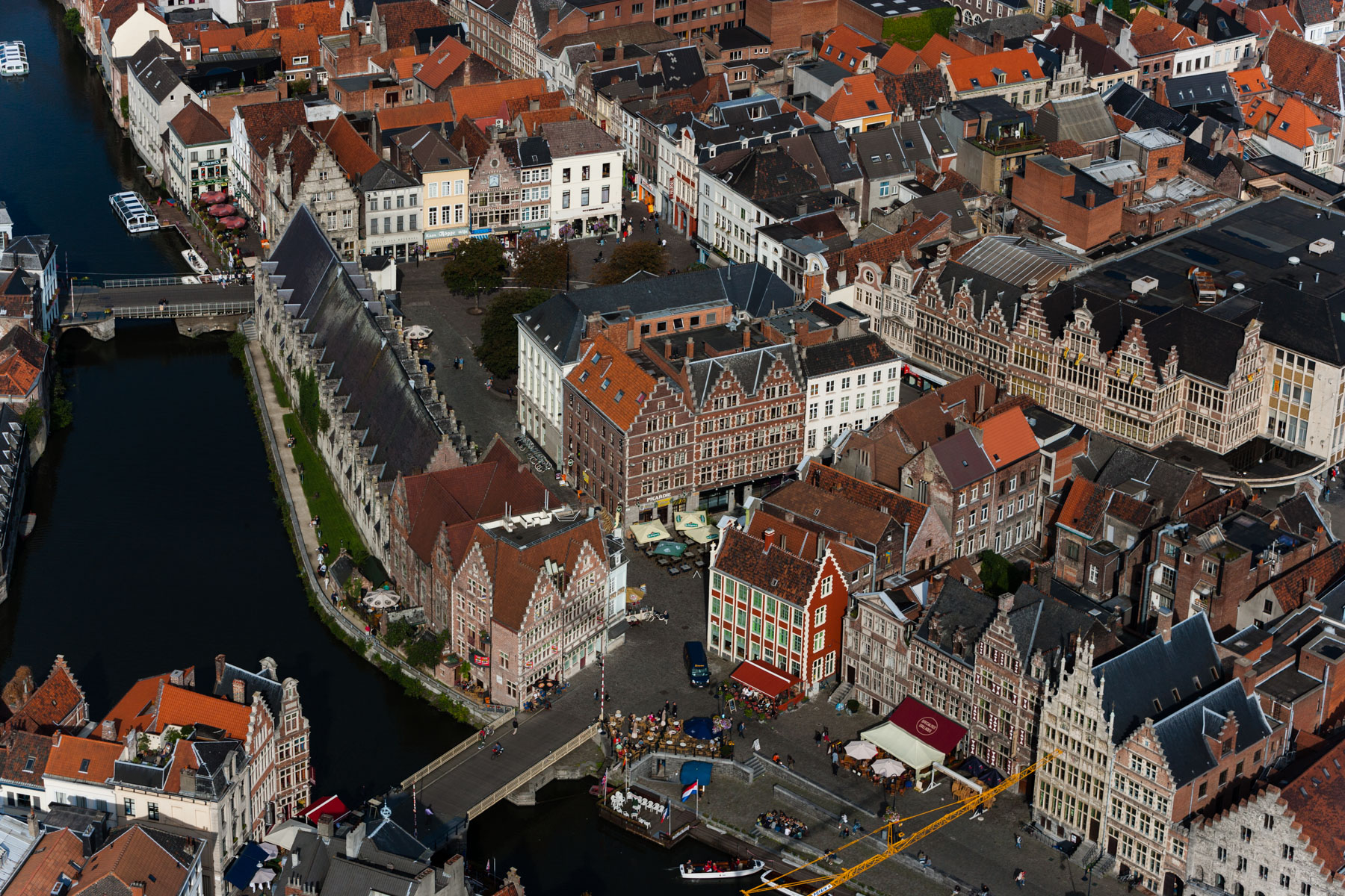 Ghent - Overview and river of La Lys- Flemish region - Belgium