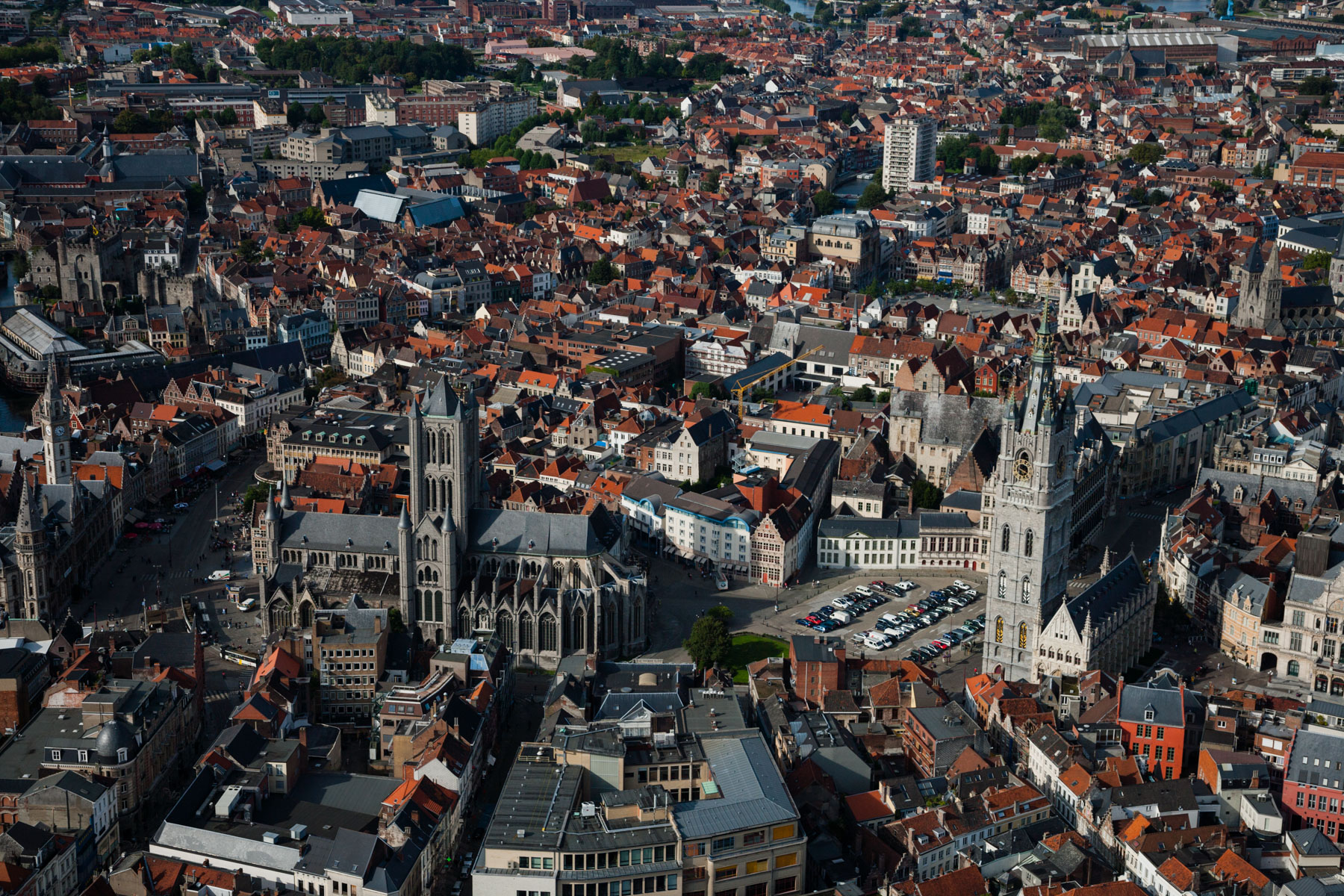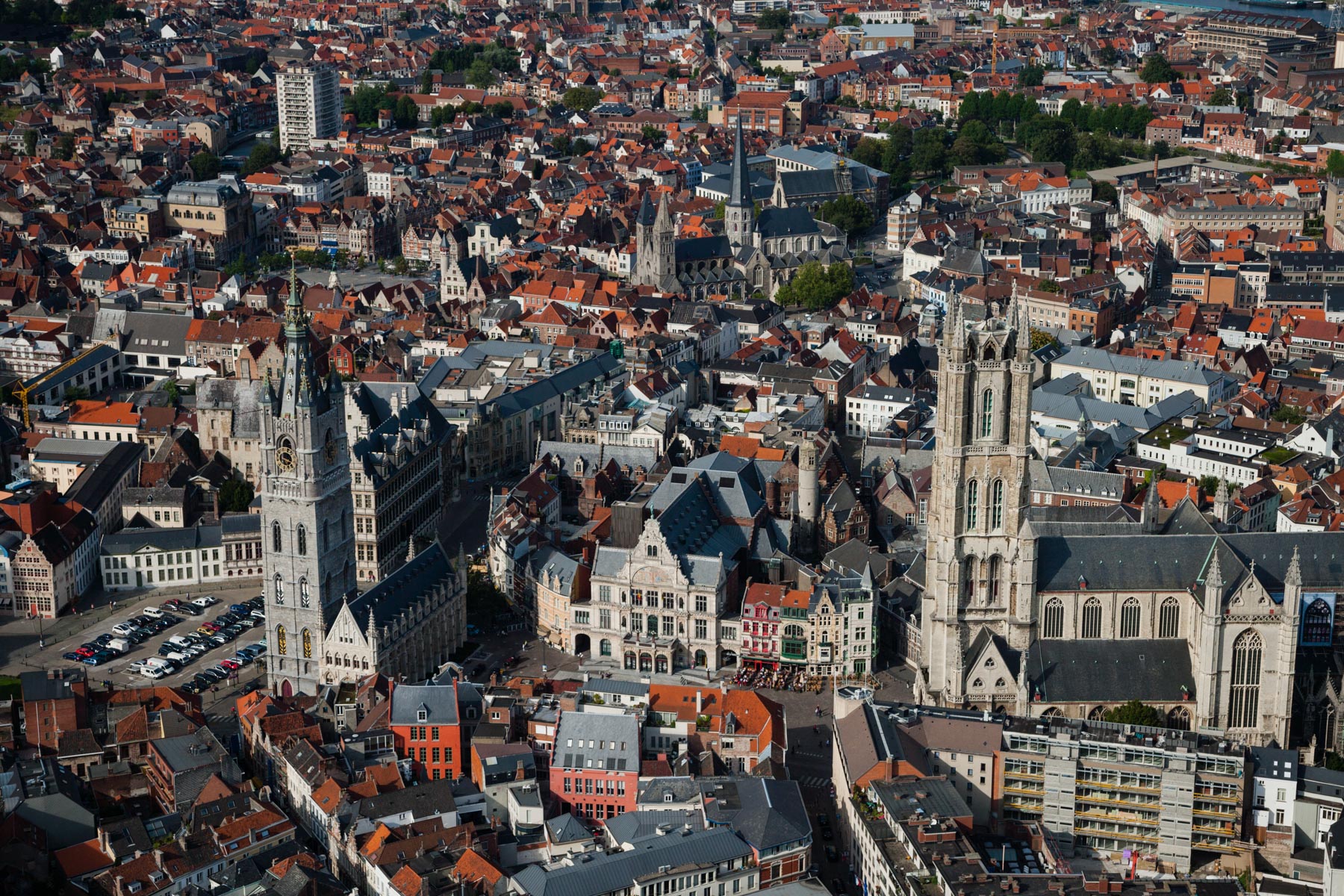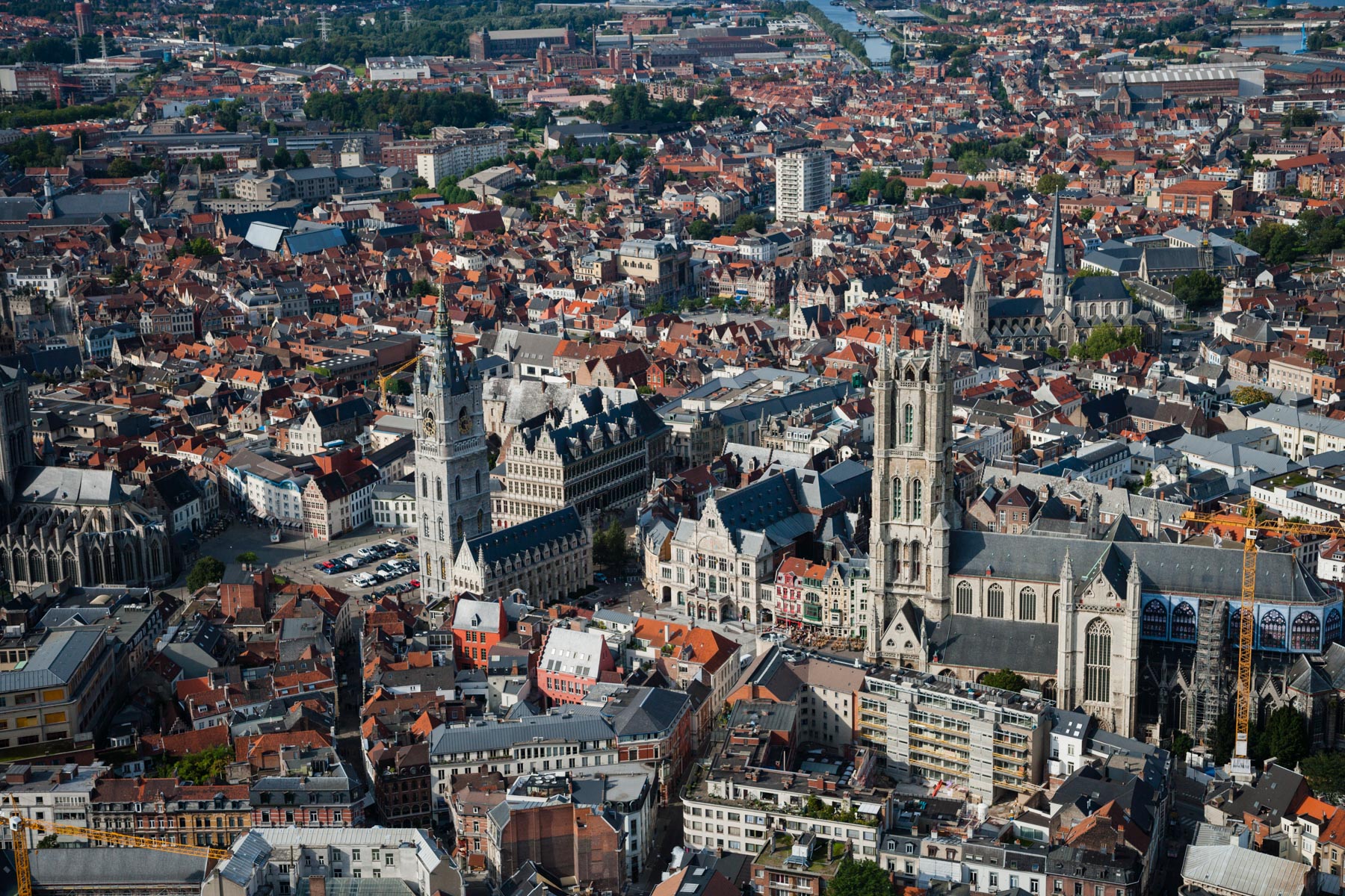 Ghent - Church St Nicholas, Belfry and Cathedral holy Bavon - Flemish region - Belgium