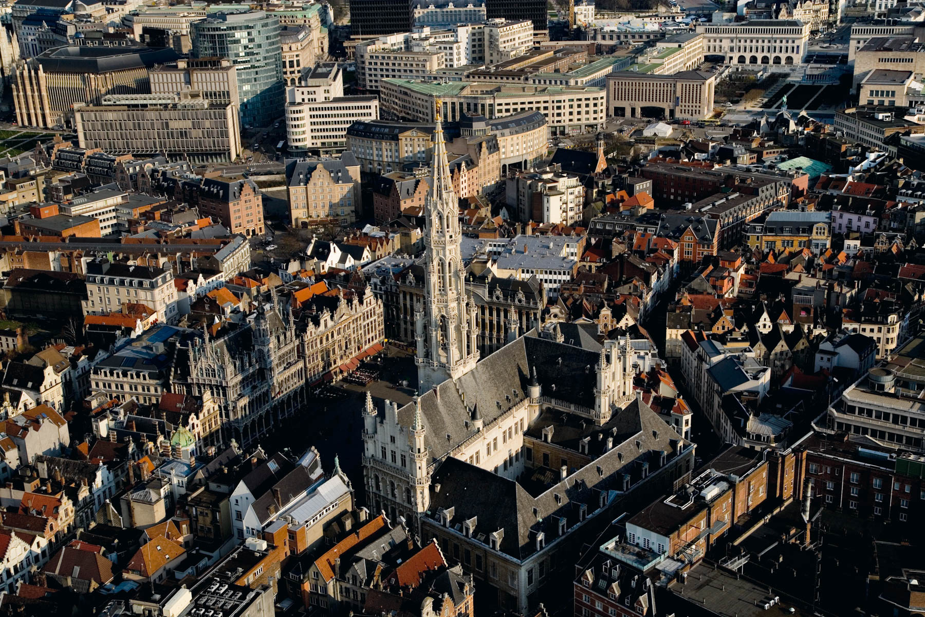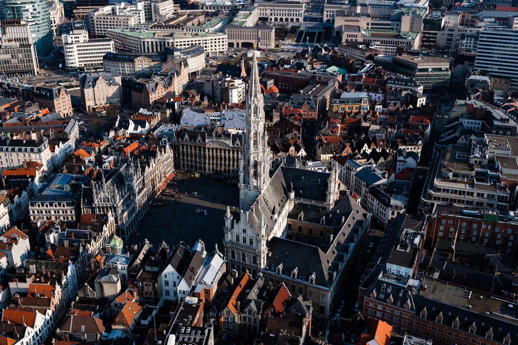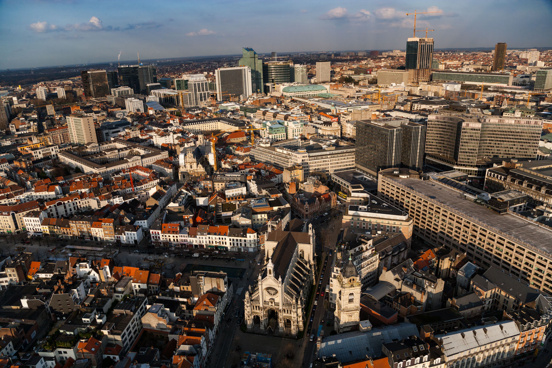 Brussels - Overview and the church Notre-Dame of the Chapel - Belgium