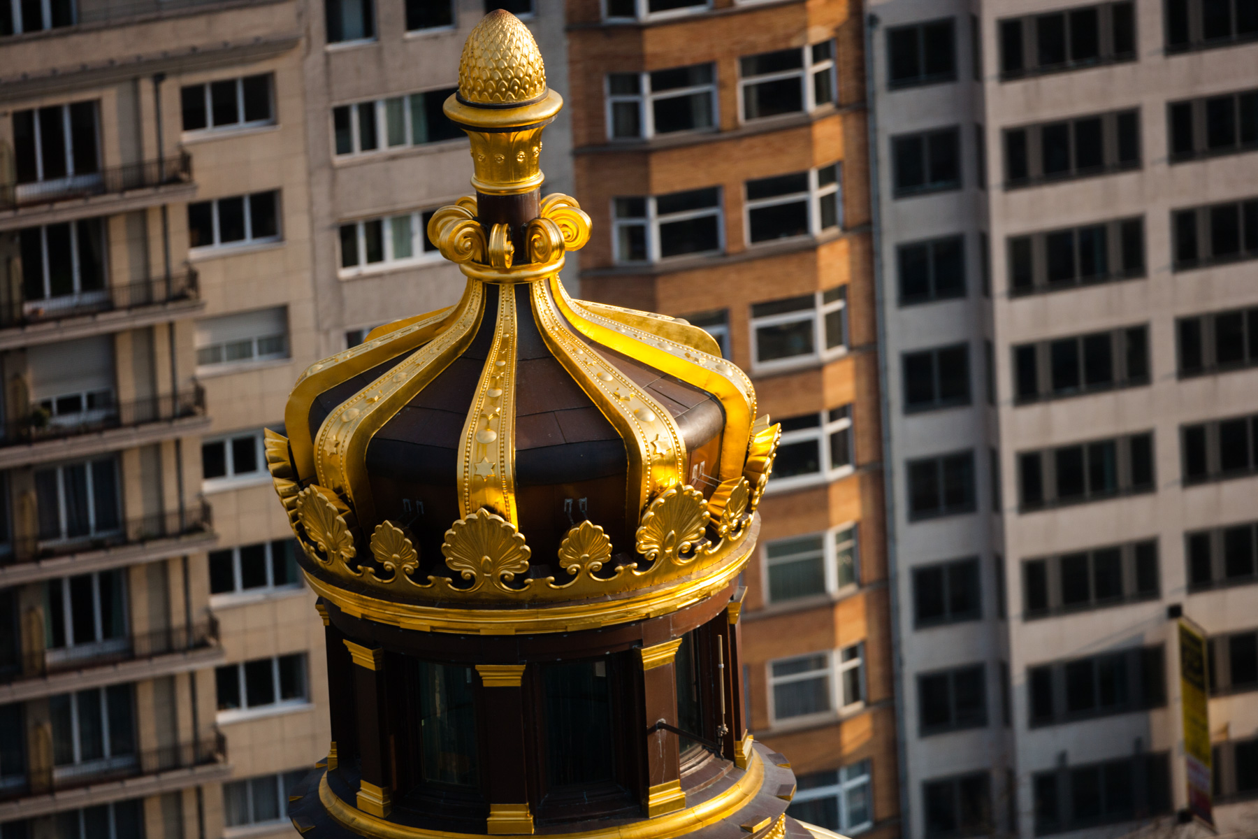 Brussels - St Michel's statue bringing down the Dragon on the tower of the City hall - Belgium