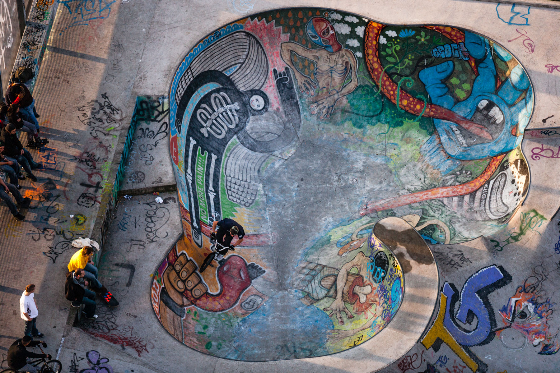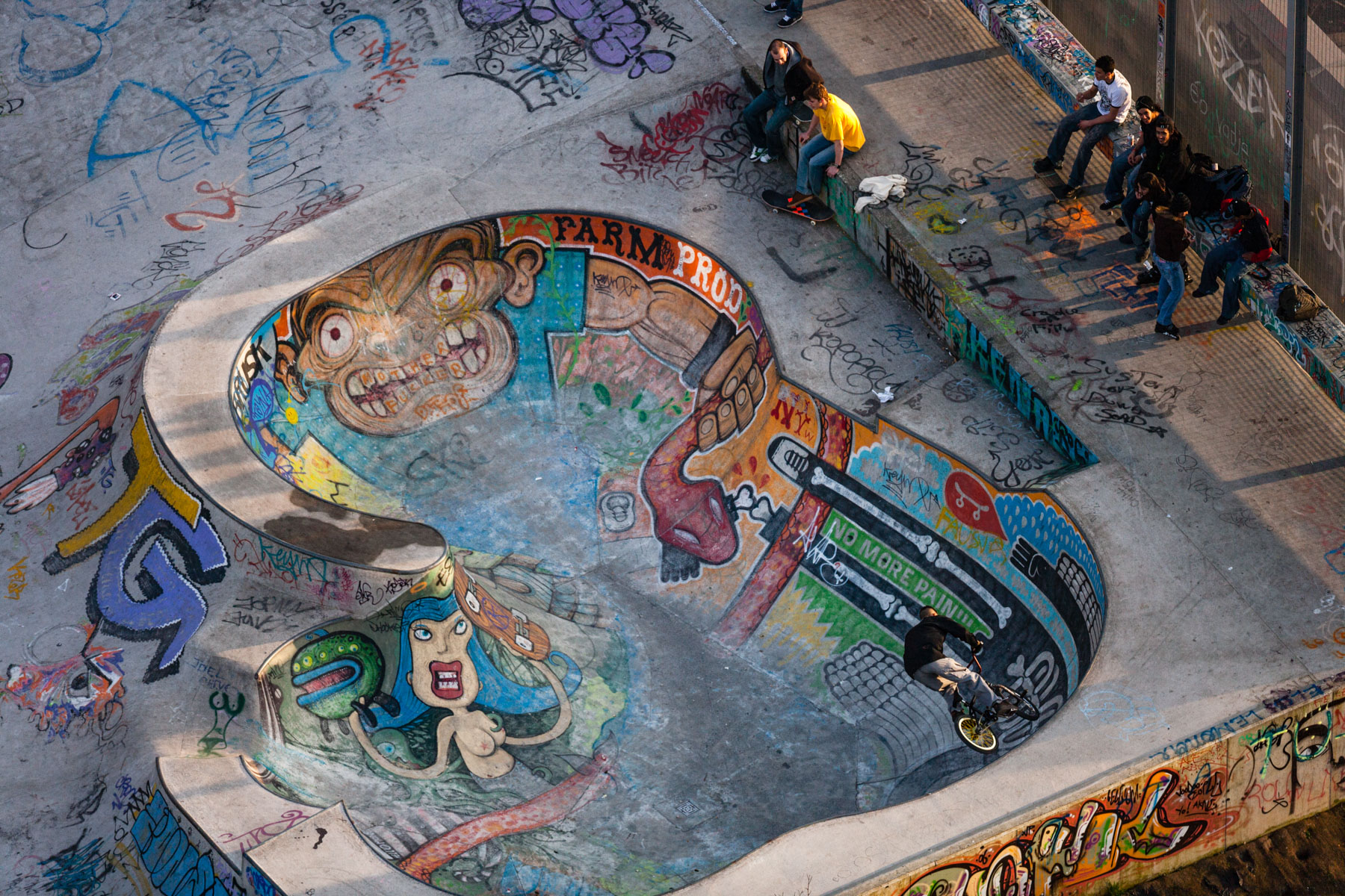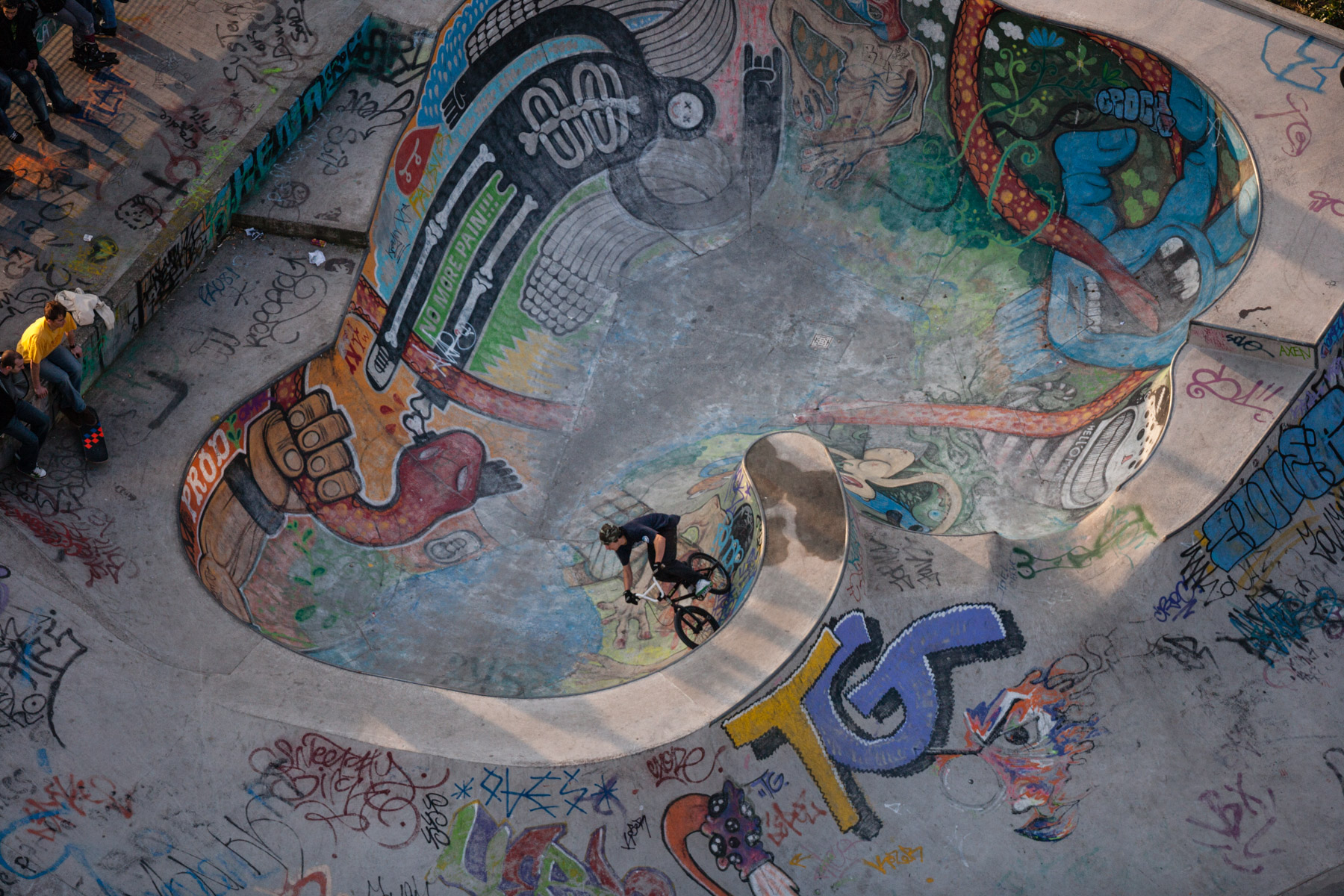 Brussels - Skateboard Park near the church Notre-Dame of the Chapel - Belgium