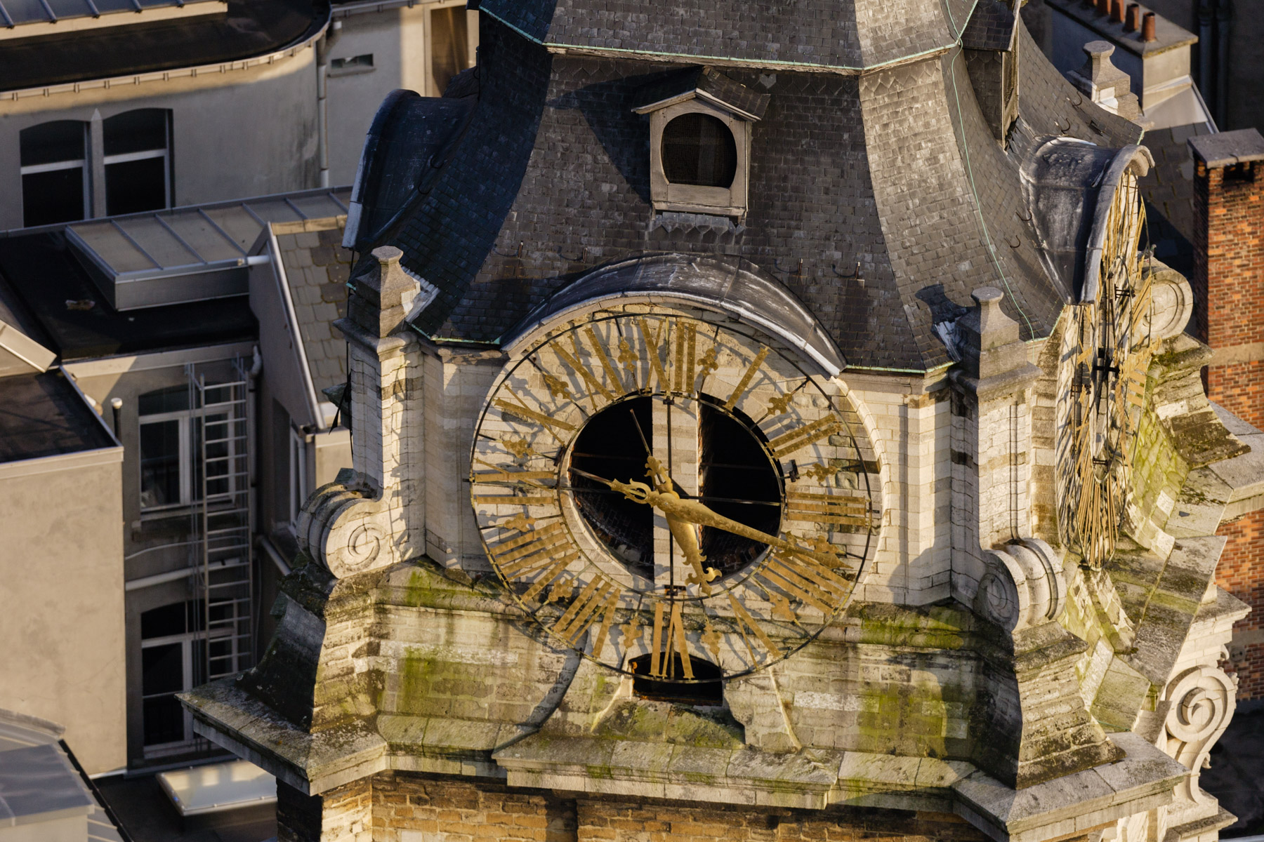 Brussels - Tower of the cathedral Saint Catherine - Clock - Belgium