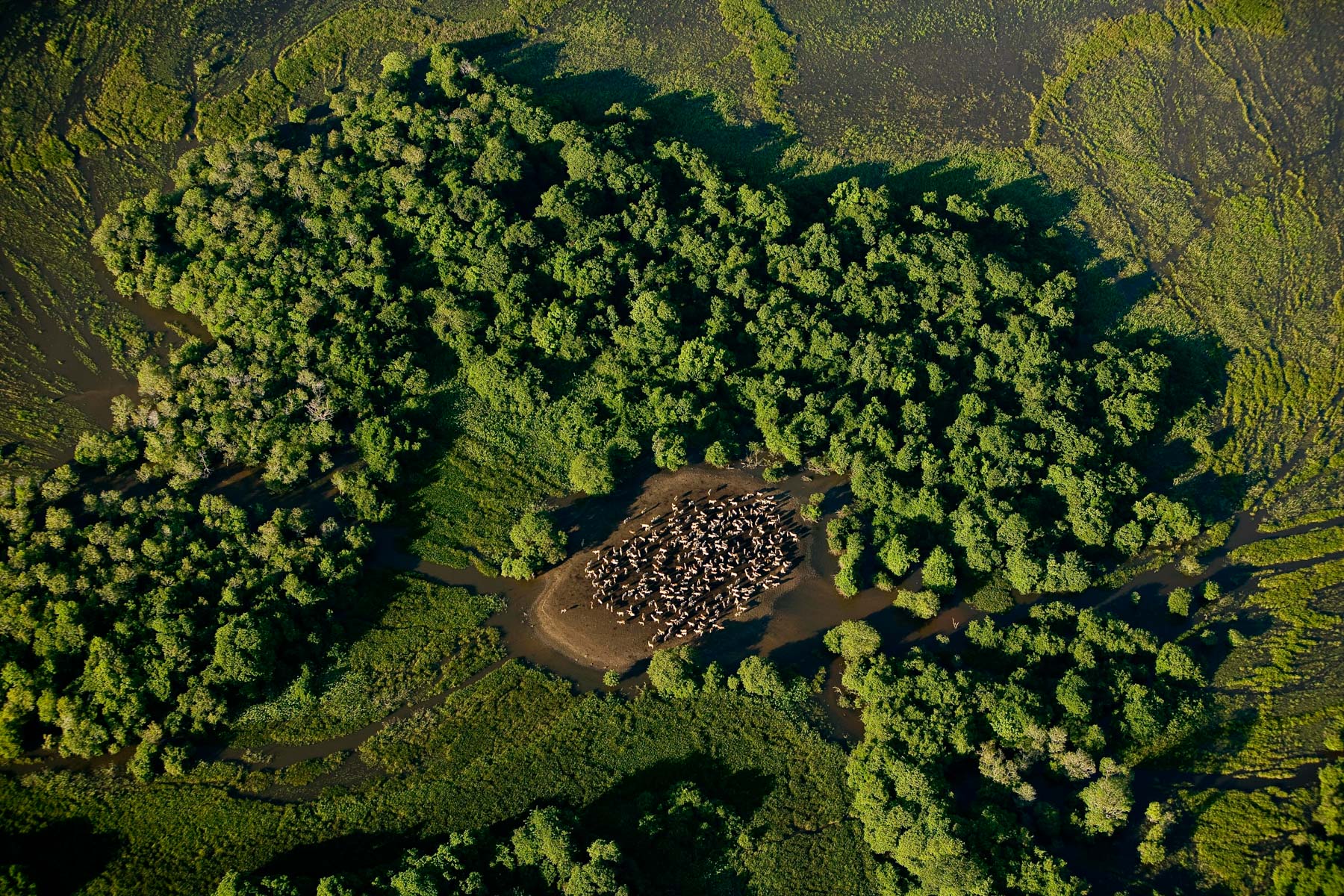 Cows grazing in the Pantanal, Brazil (17°36' S – 57°30' W).