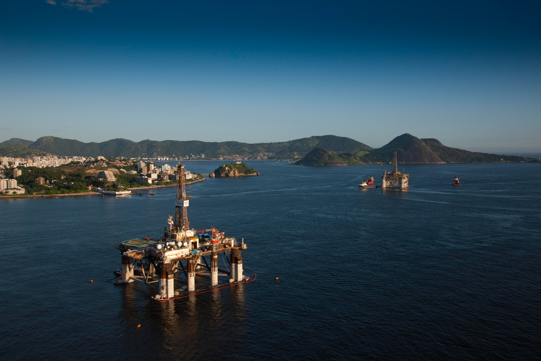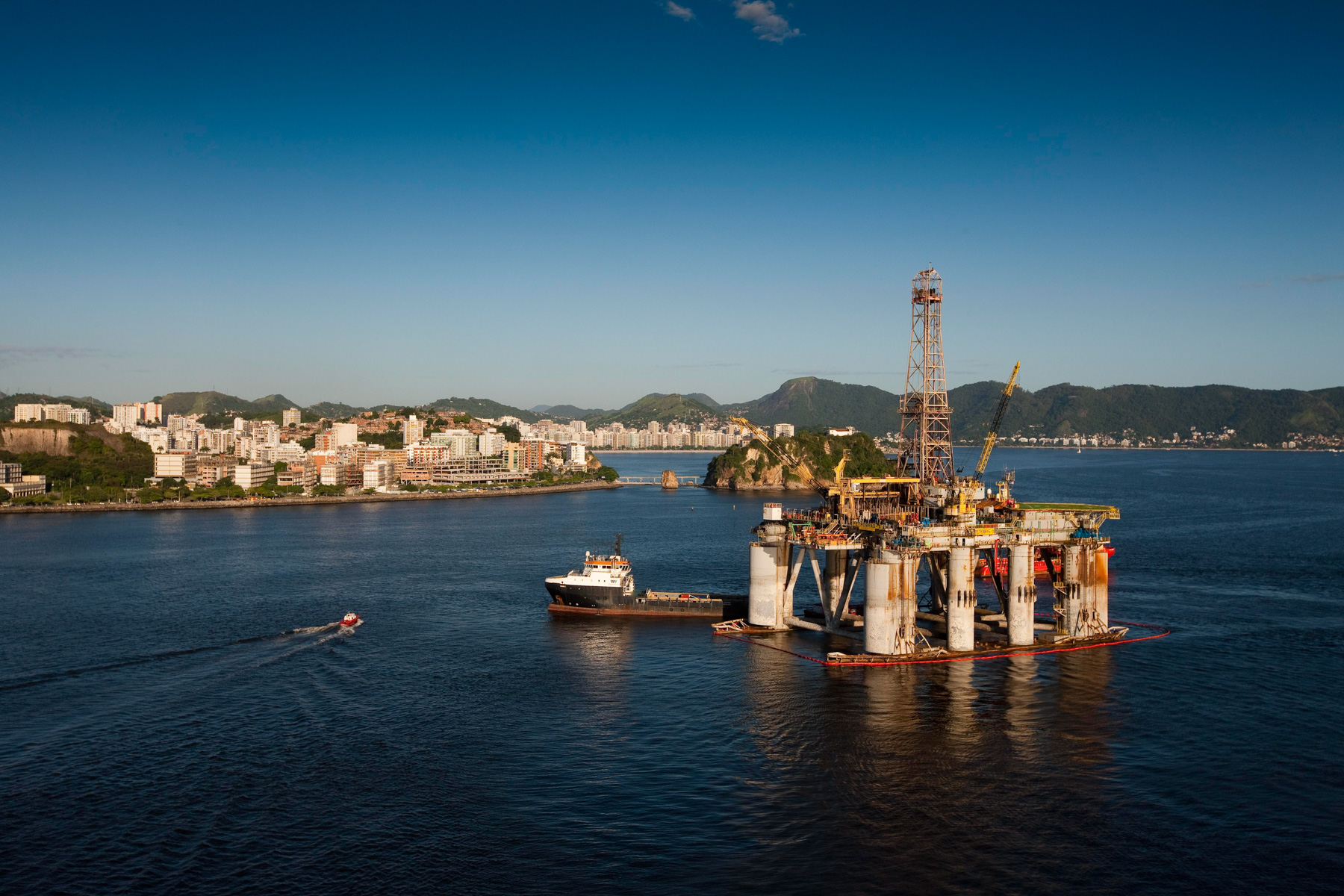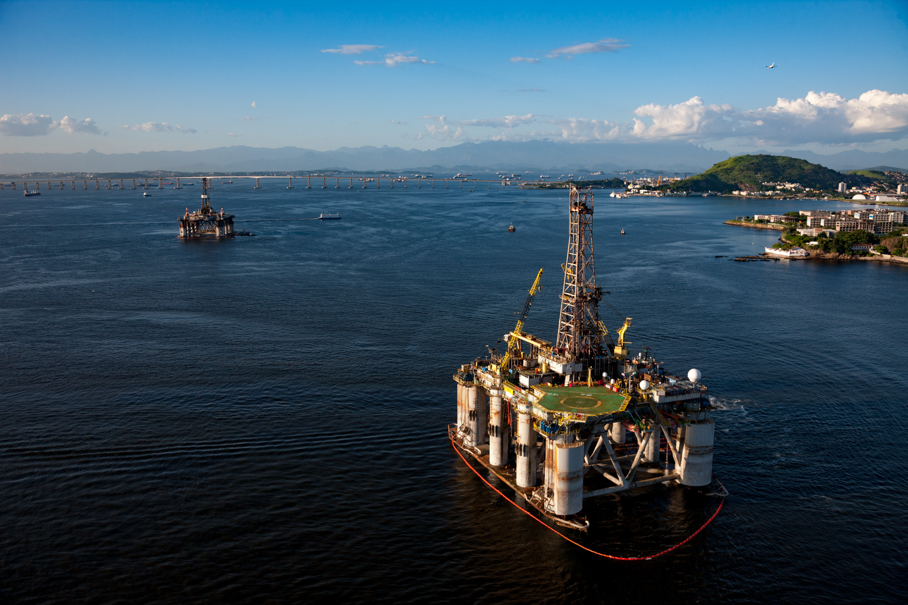 Rio de Janeiro : Plateforme pétrolière devant la ville de Niterói dans la baie de Guanabara, État de Rio de Janeiro, Brésil ( 22°52'45.42"S - 43° 8'55.77"O)