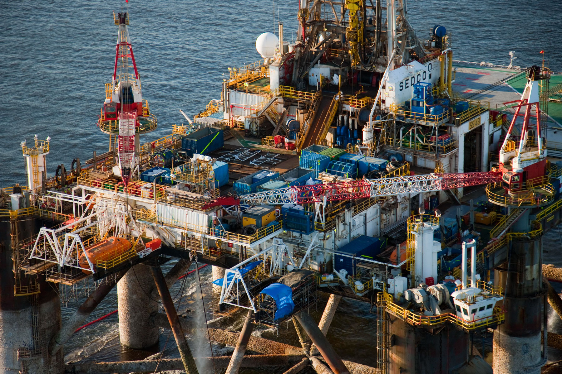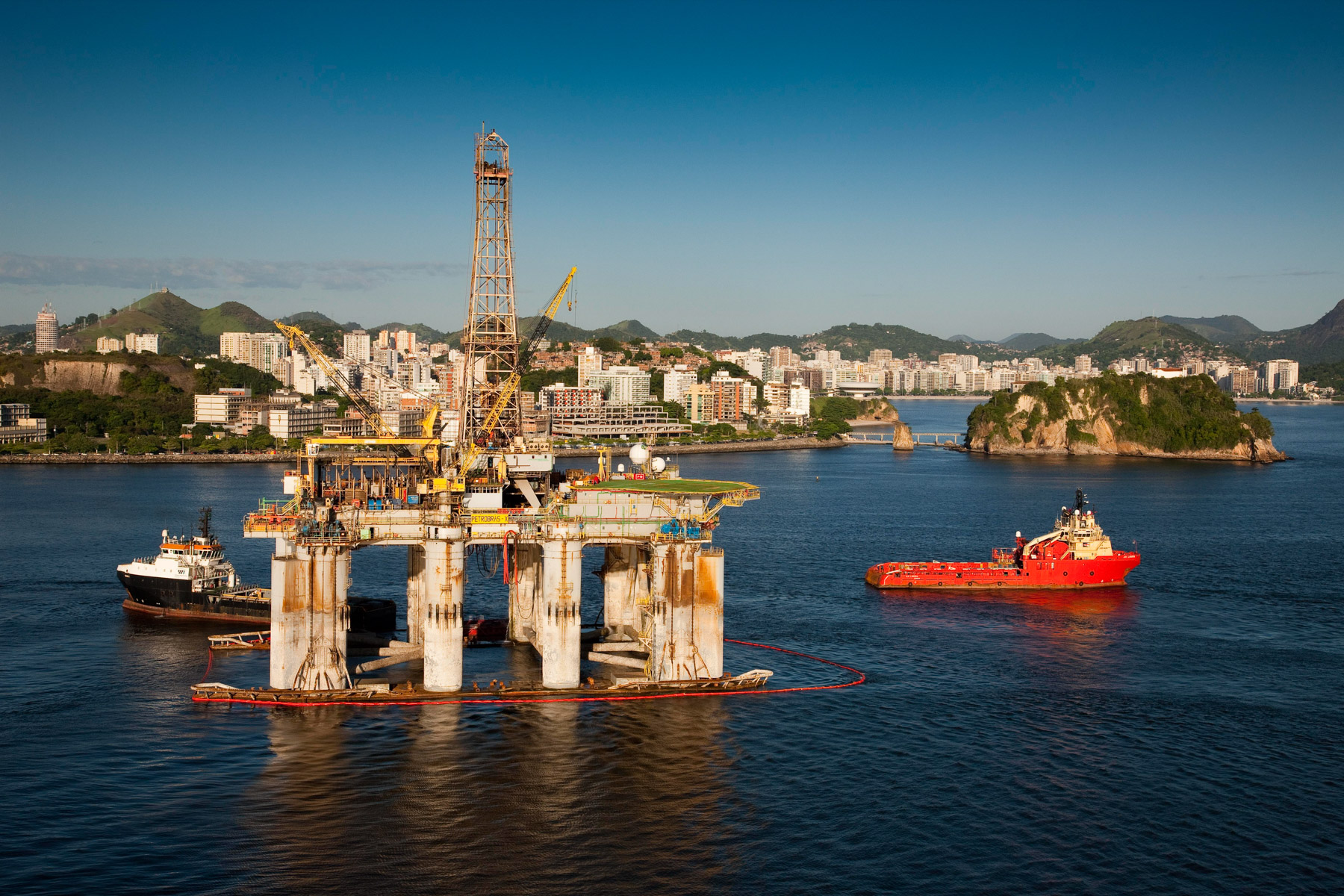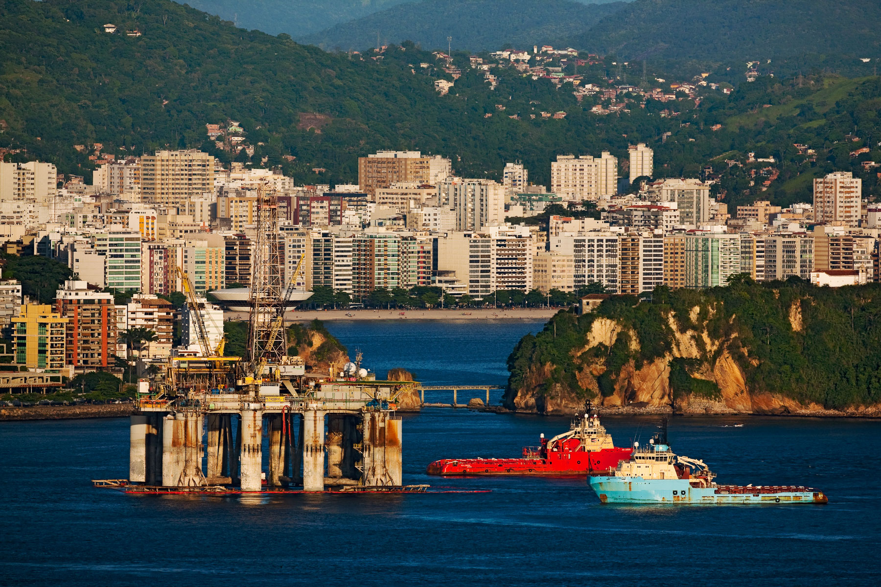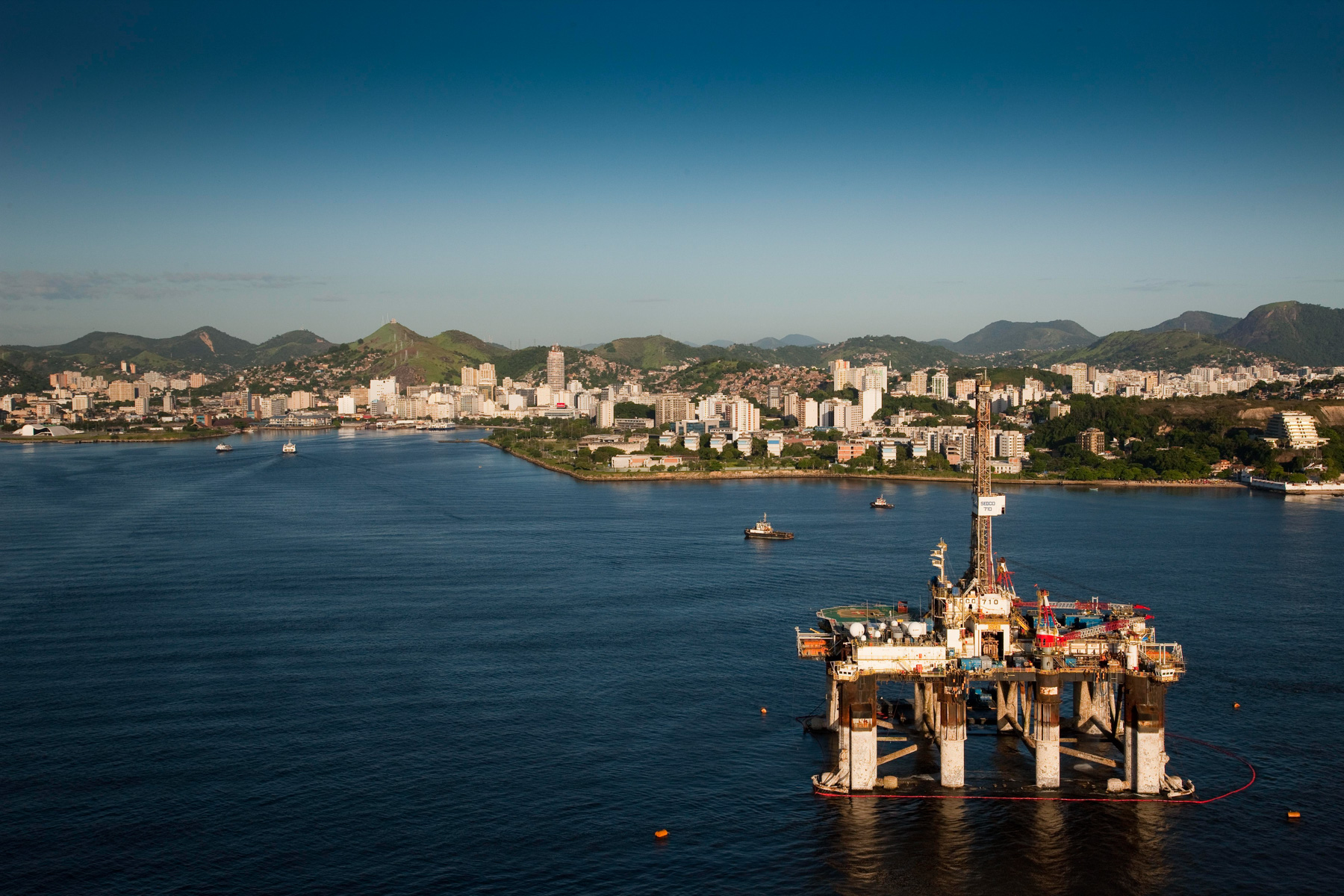 Rio de Janeiro : Plateforme pétrolière devant la ville de Niterói dans la baie de Guanabara, État de Rio de Janeiro, Brésil ( 22°52'45.42"S - 43° 8'55.77"O)