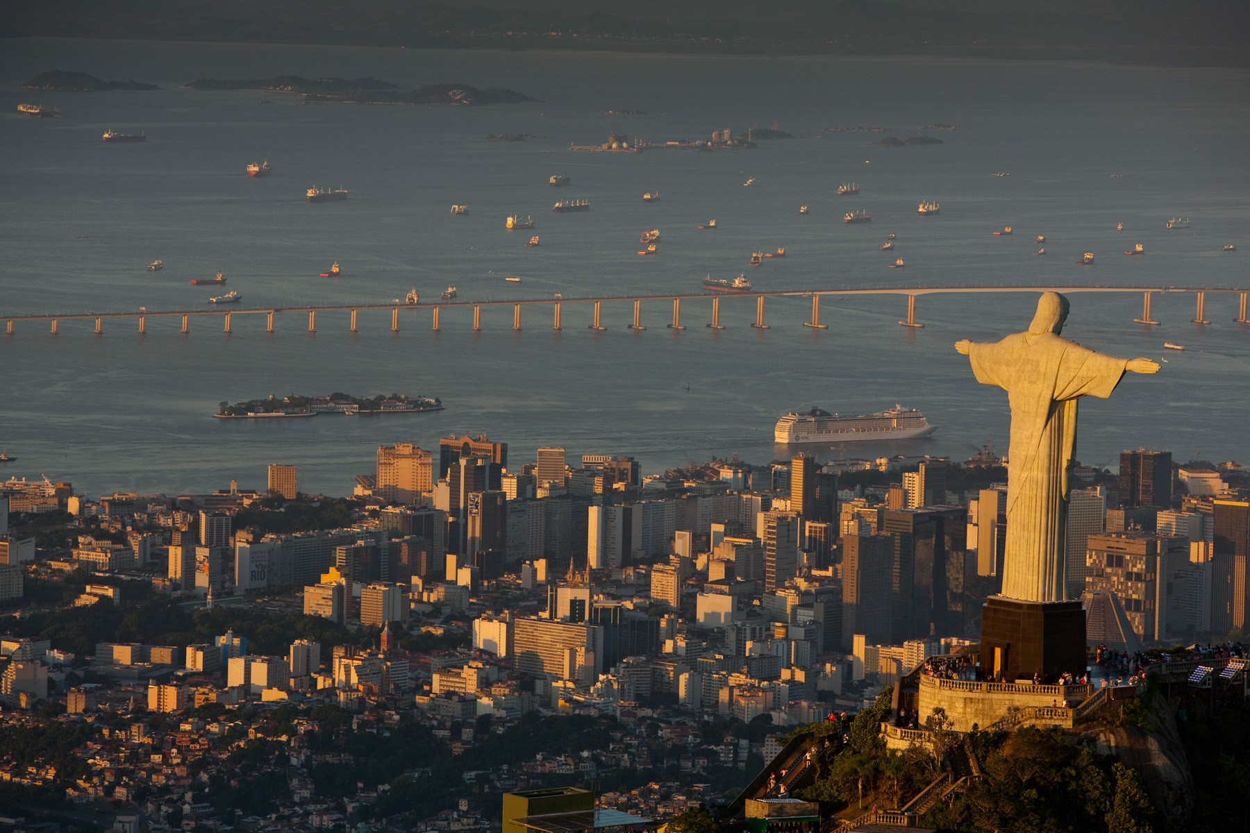 The Corcovado overlooking the city of Rio de Janero, Brazil (22°57’ S – 43°13’ W).