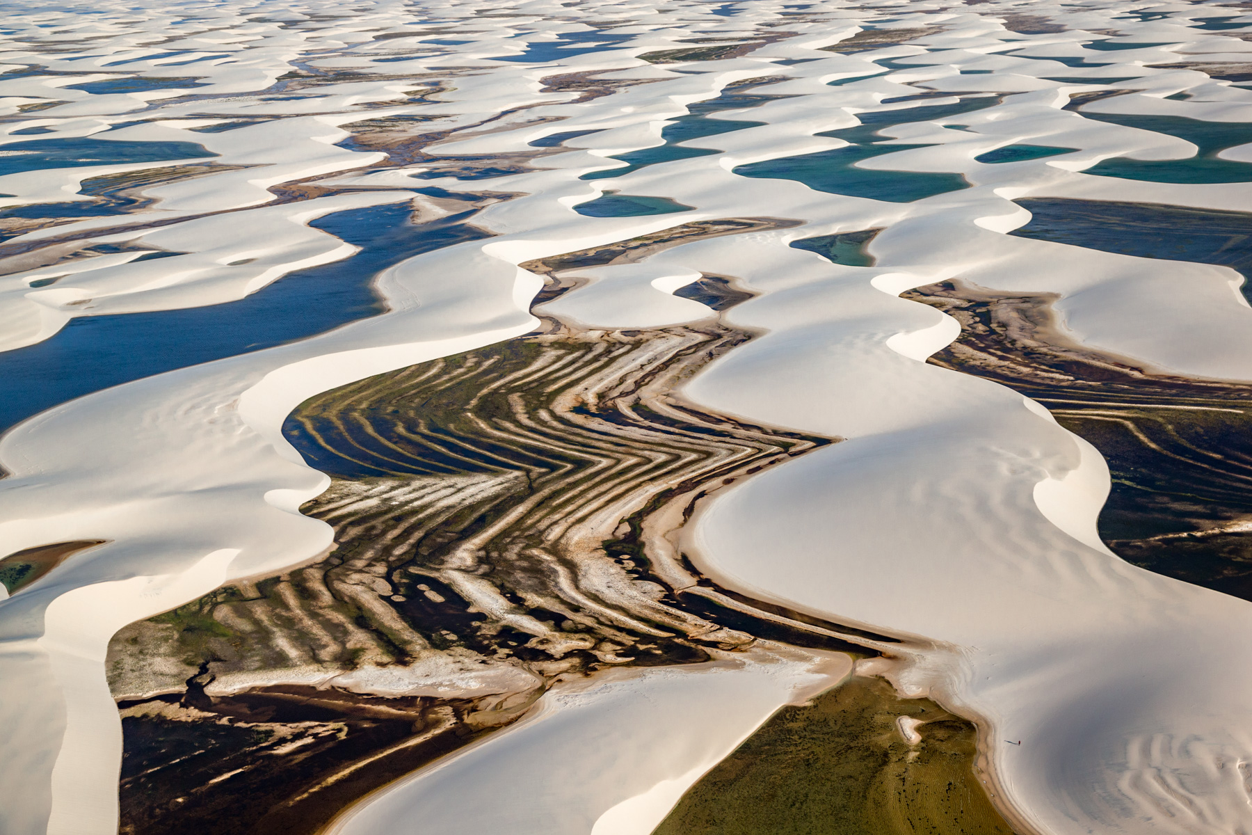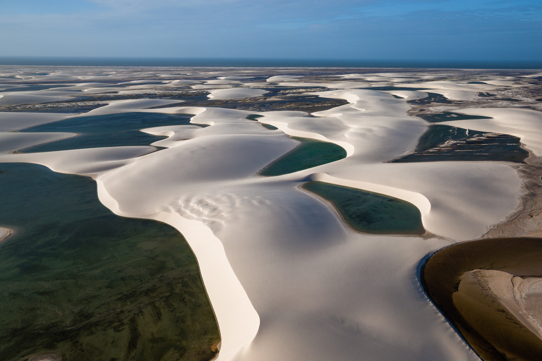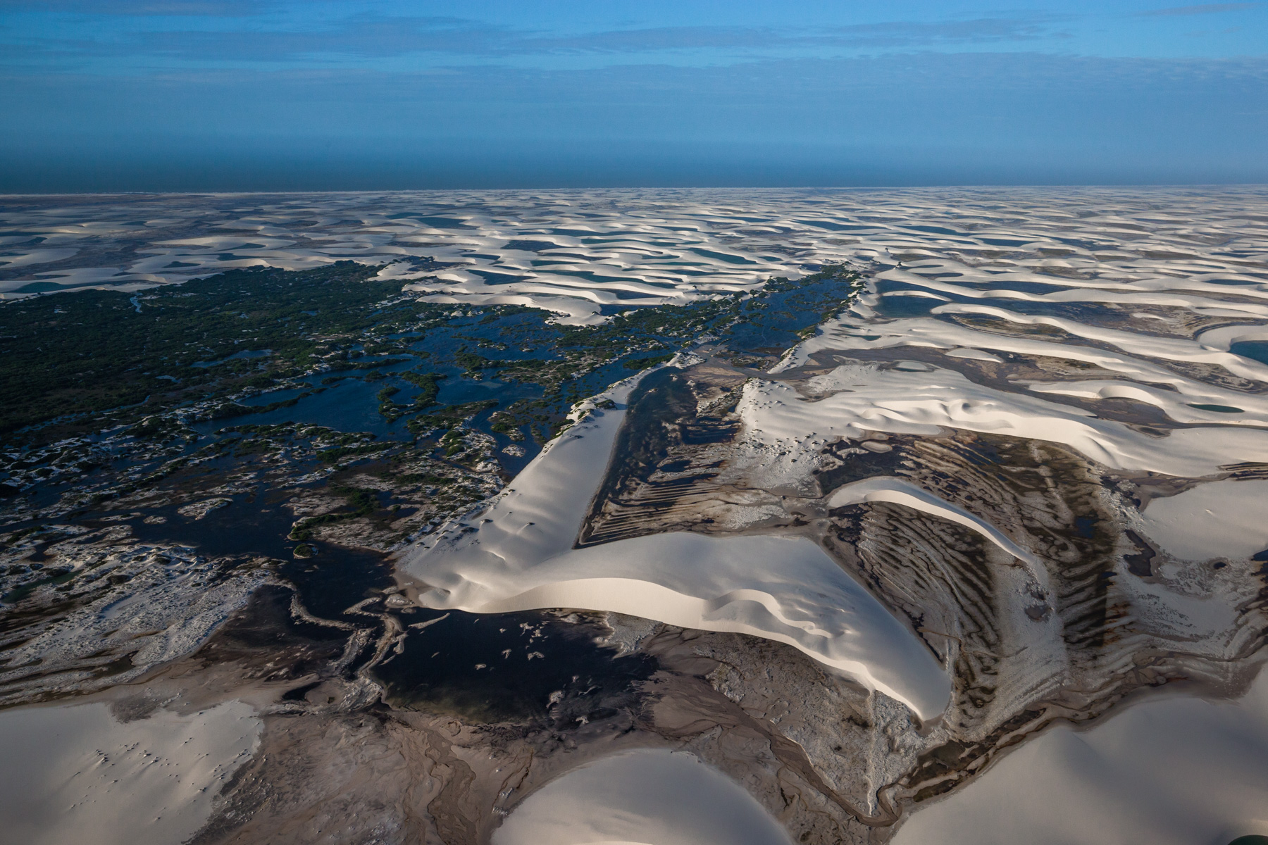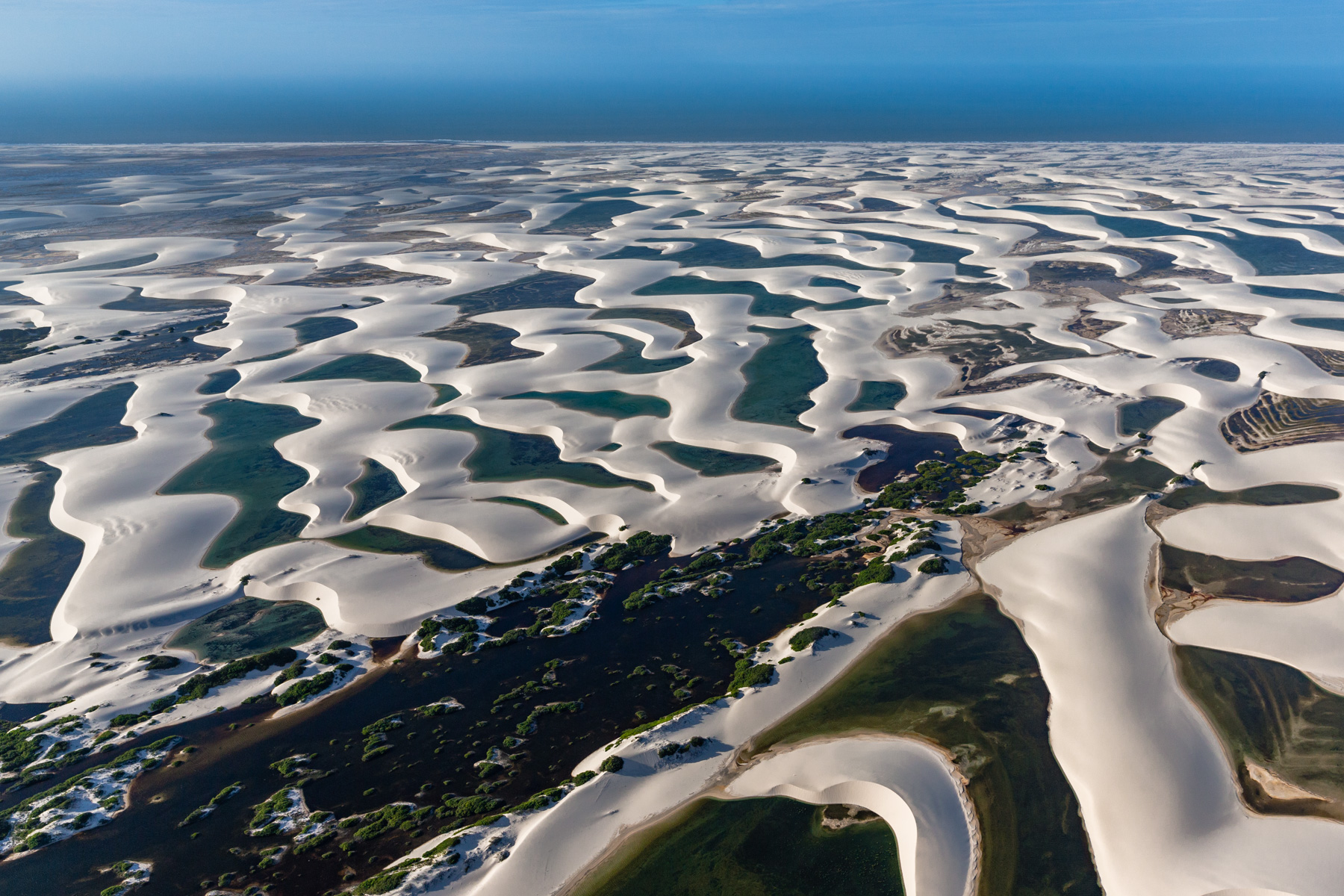 Parc national des Lençóis Maranhenses : dunes et lagunes interdunaires, Etat de Maranhão, Brésil (2°32’ S - 43°07’ O).