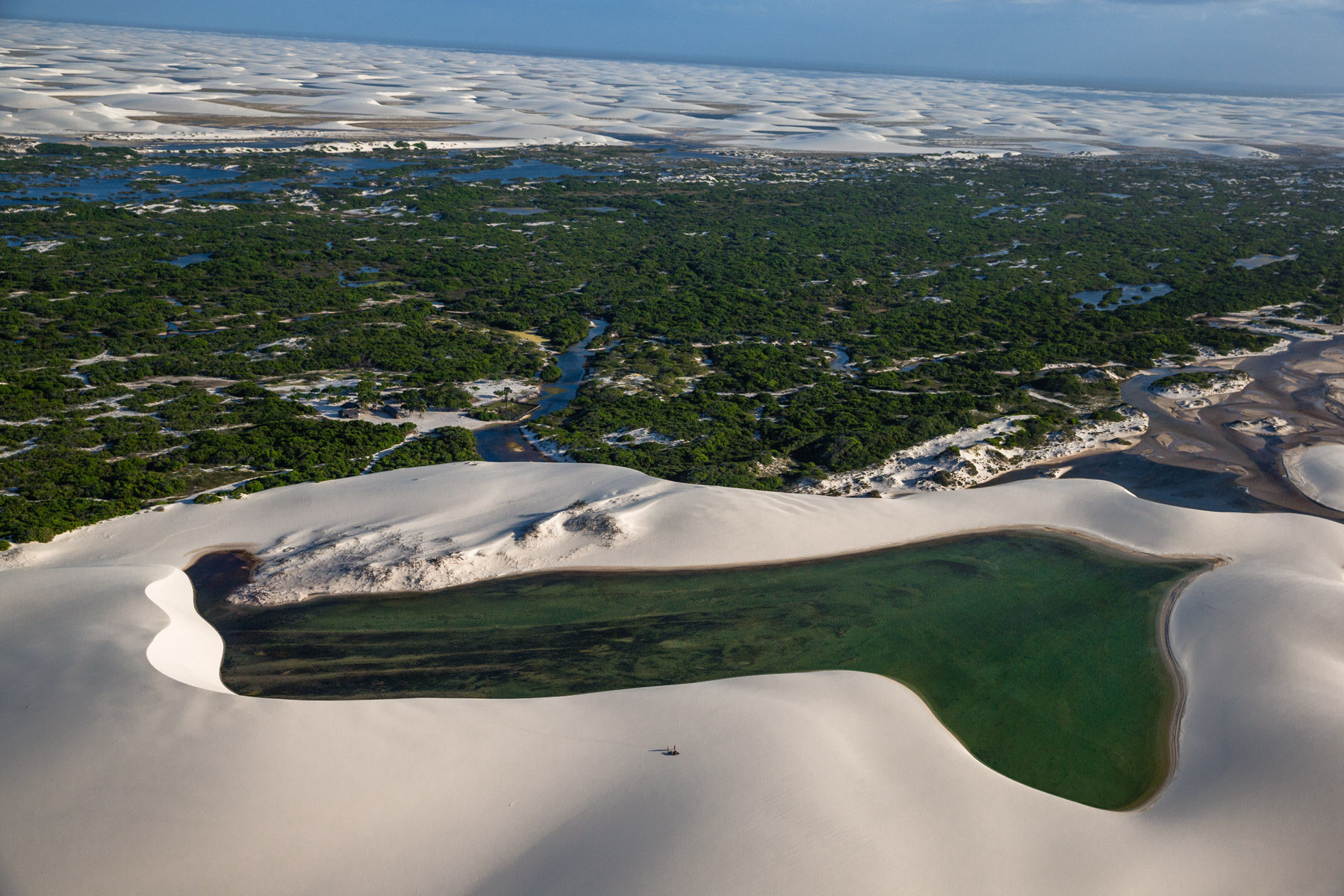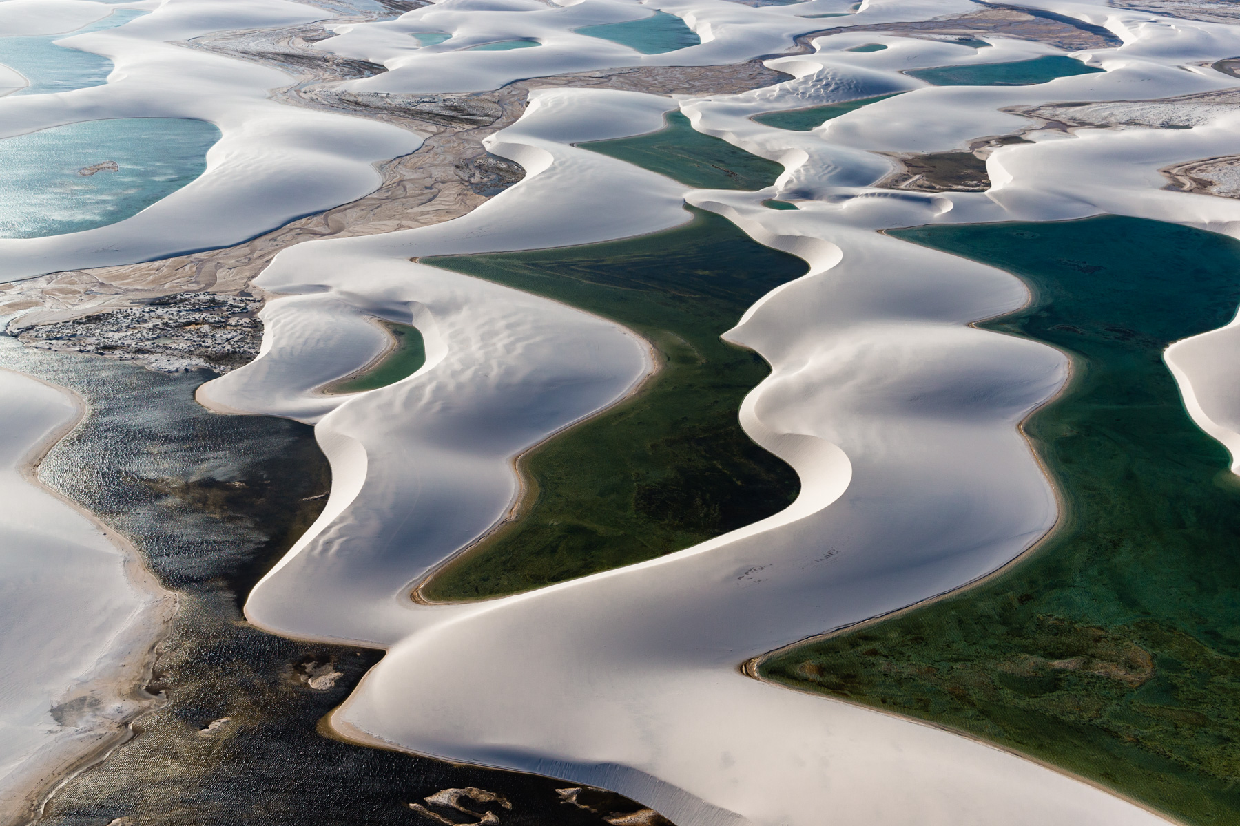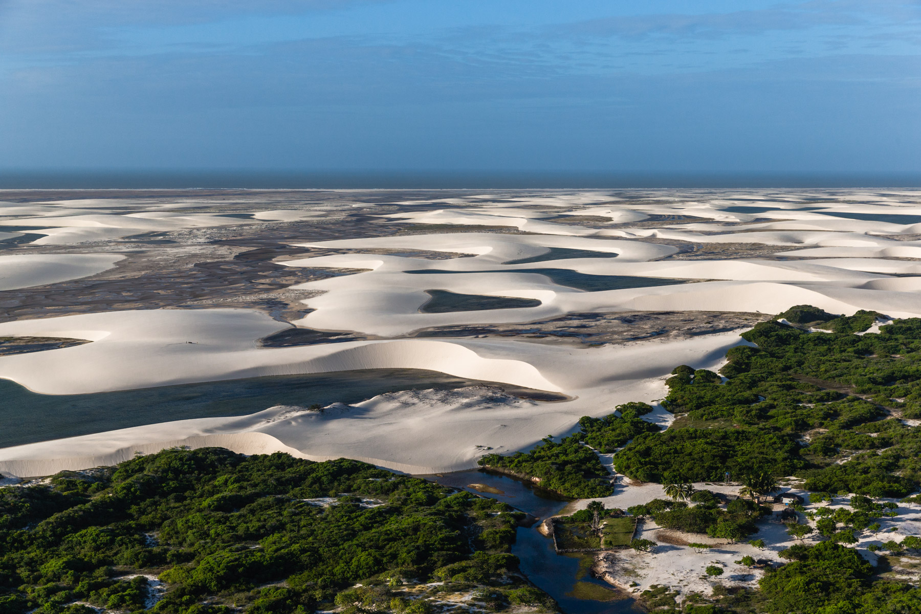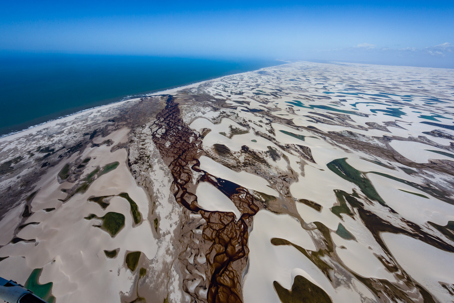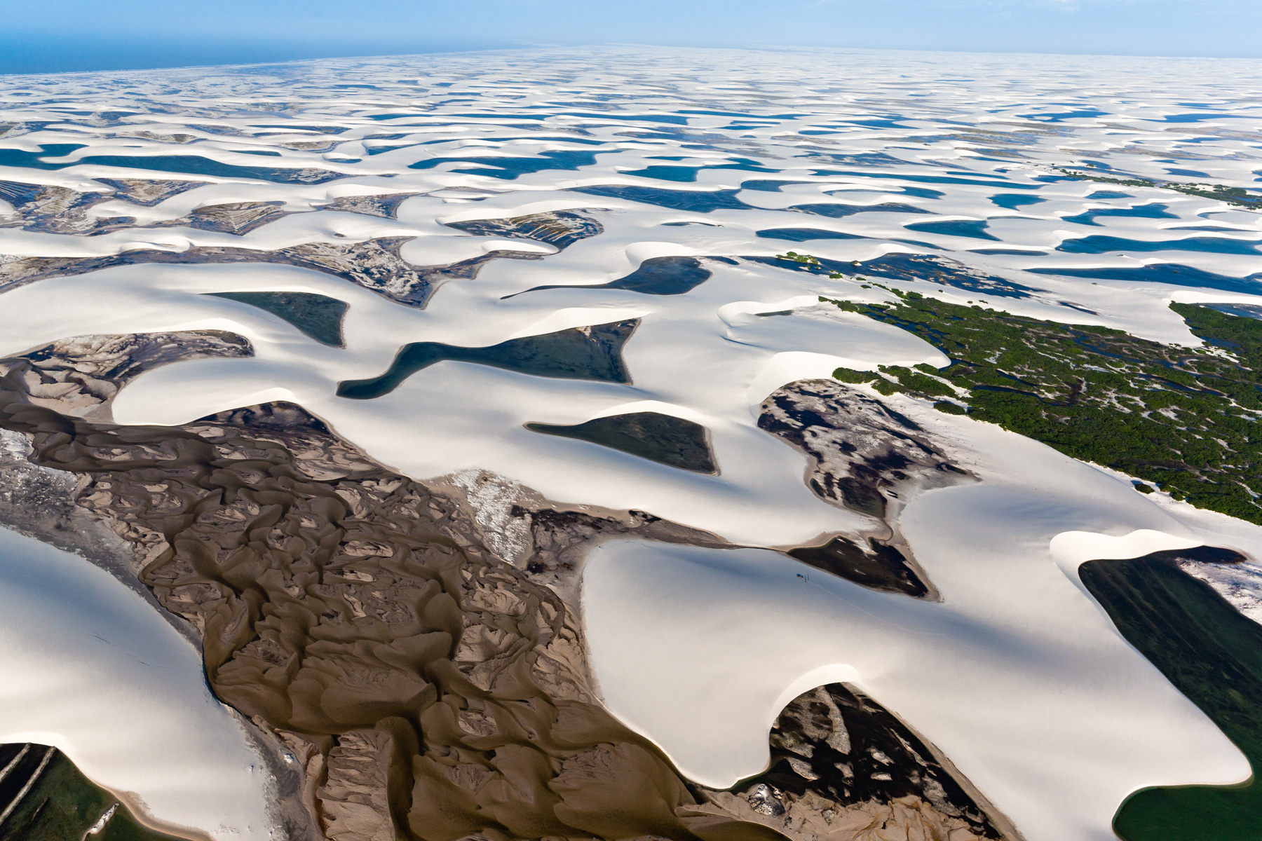 Parc national des Lençóis Maranhenses : dunes et lagunes interdunaires, Etat de Maranhão, Brésil (2°32’ S - 43°07’ O).