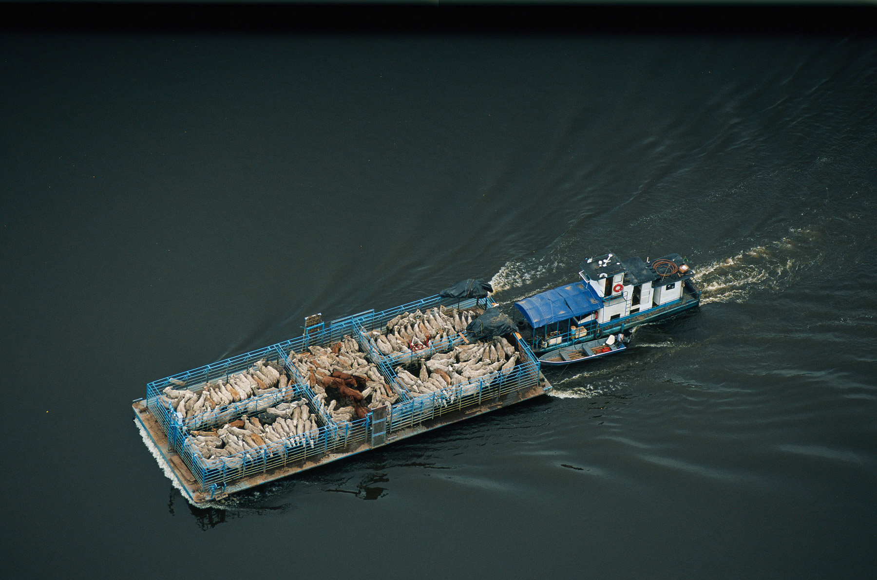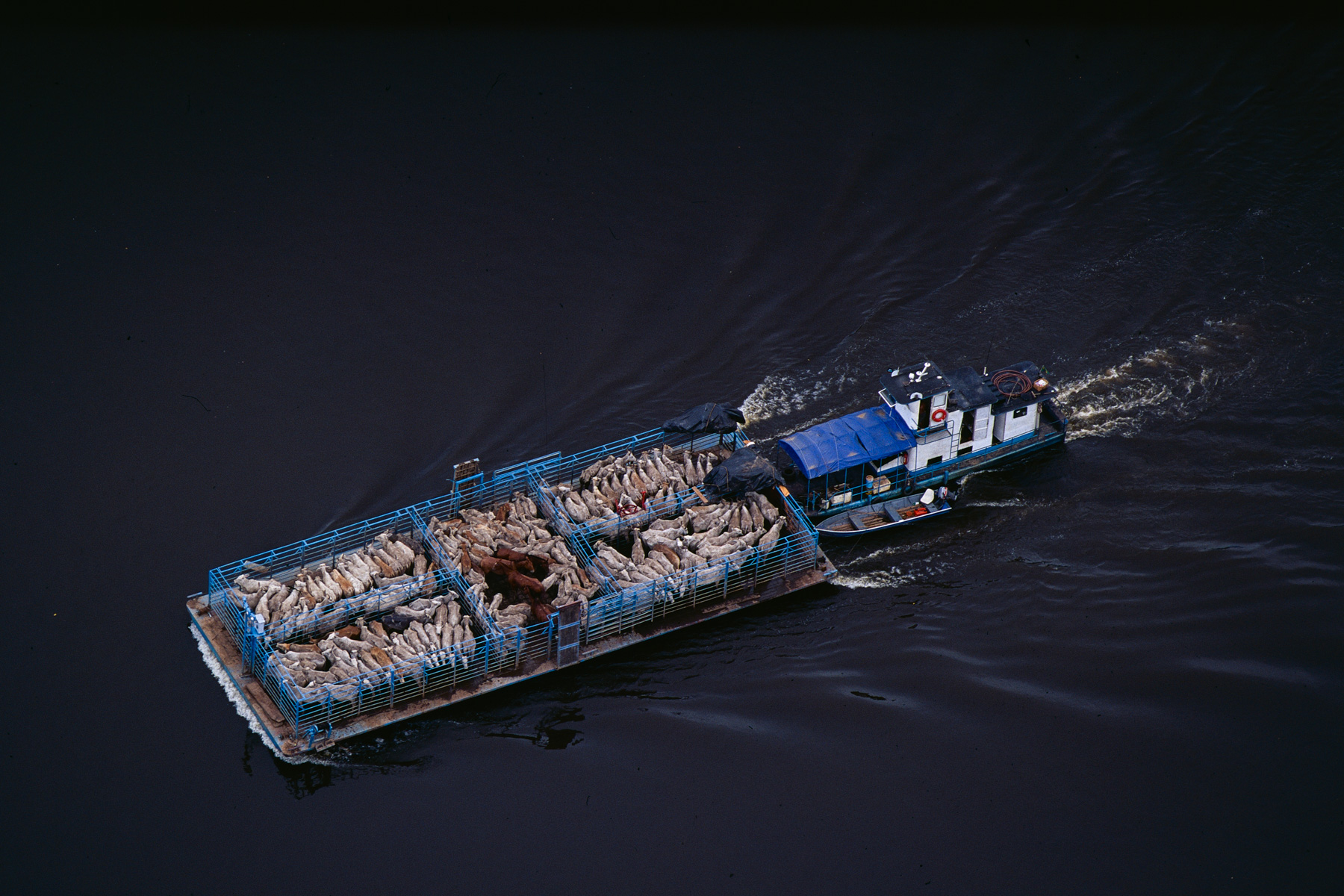 Mato Grosso Sud - Zébus sur barge près de Porto Jofre