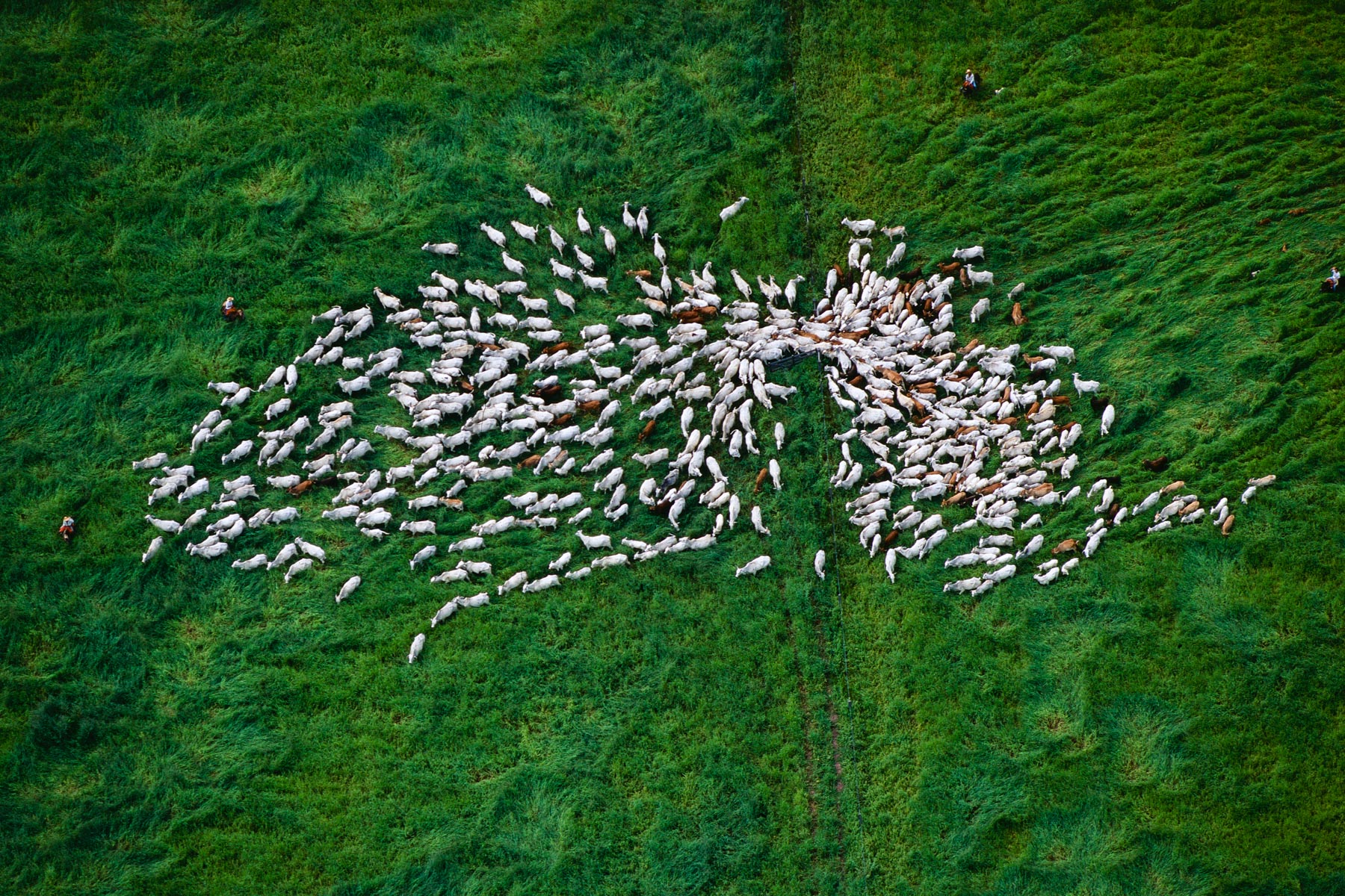 Herd of Zebu near Cáceres, Mato Grosso, Brazil (16°05' S, 57°40' W).