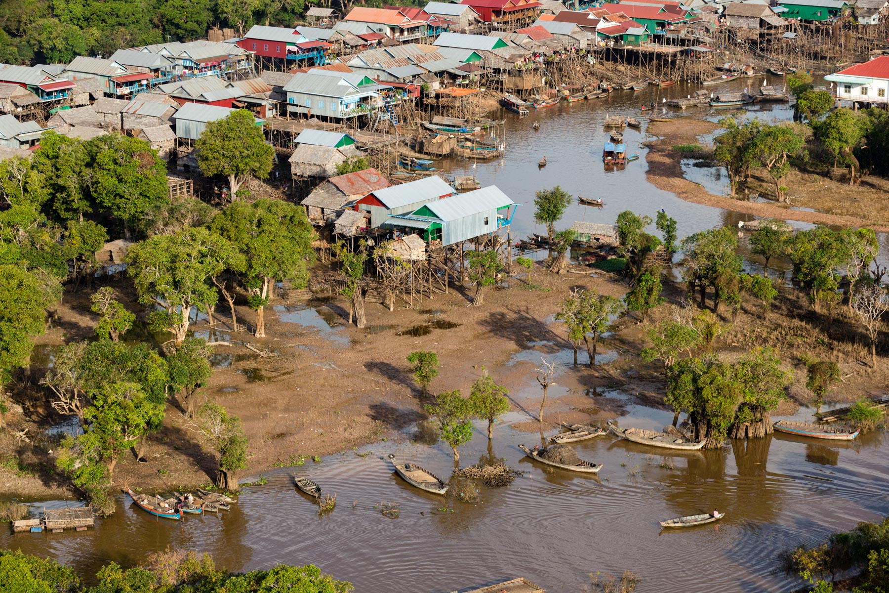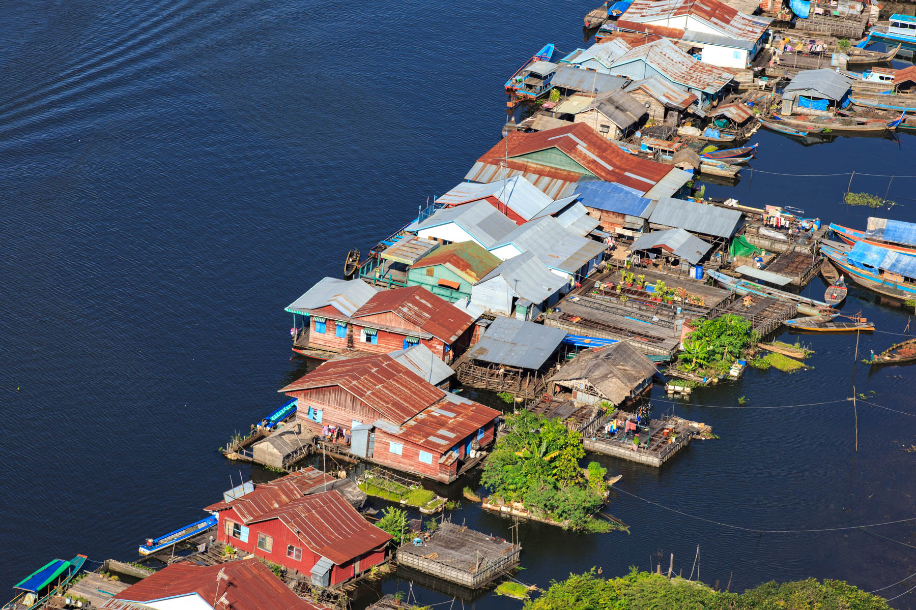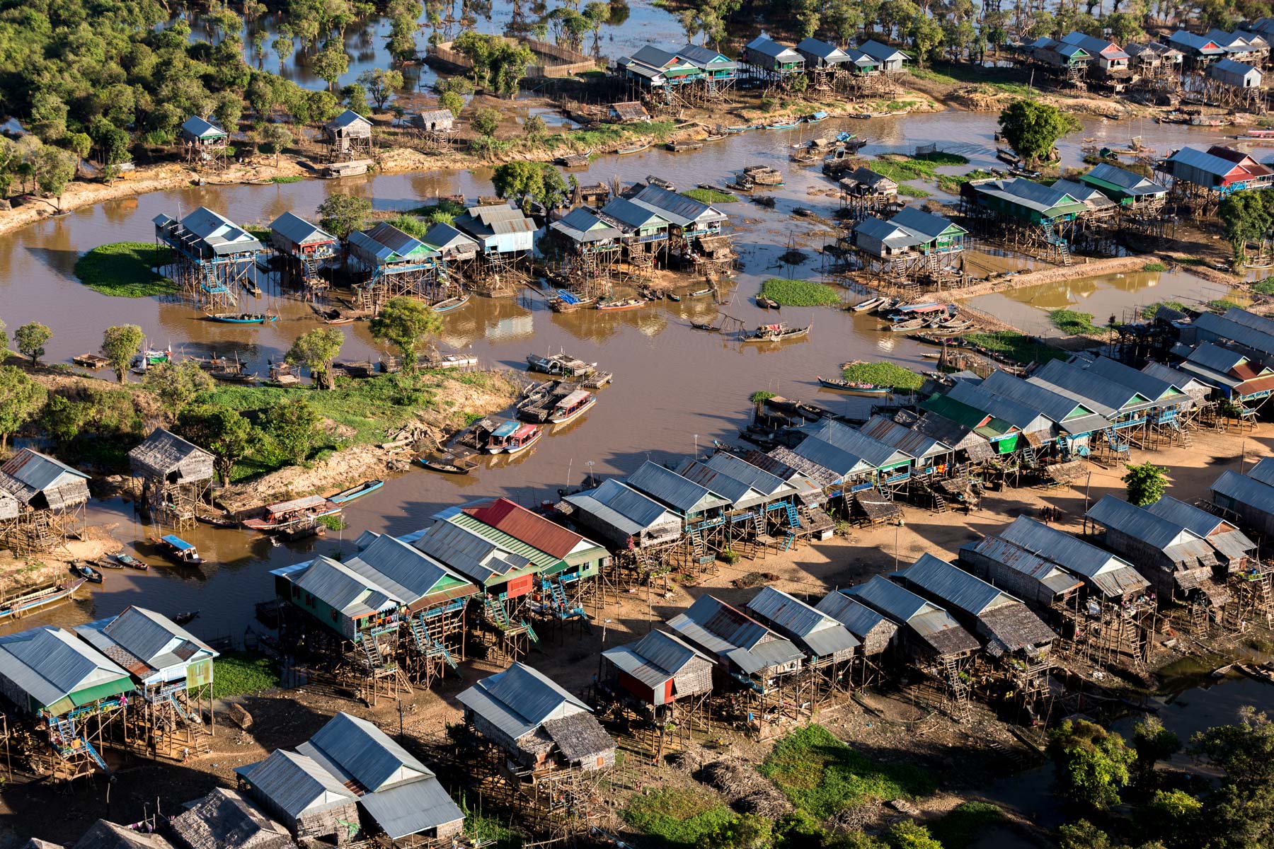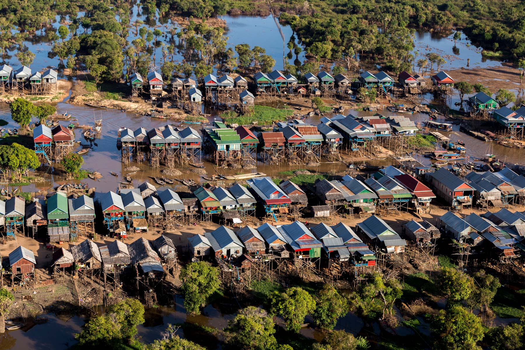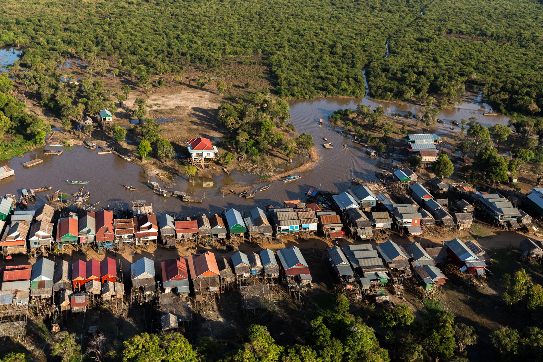 Village flottant de Kampong Phulk sur le lac Tonlé Sap, province de Siem Reap, Cambodge (13°12'45.86"N - 103°58'28.22"E).