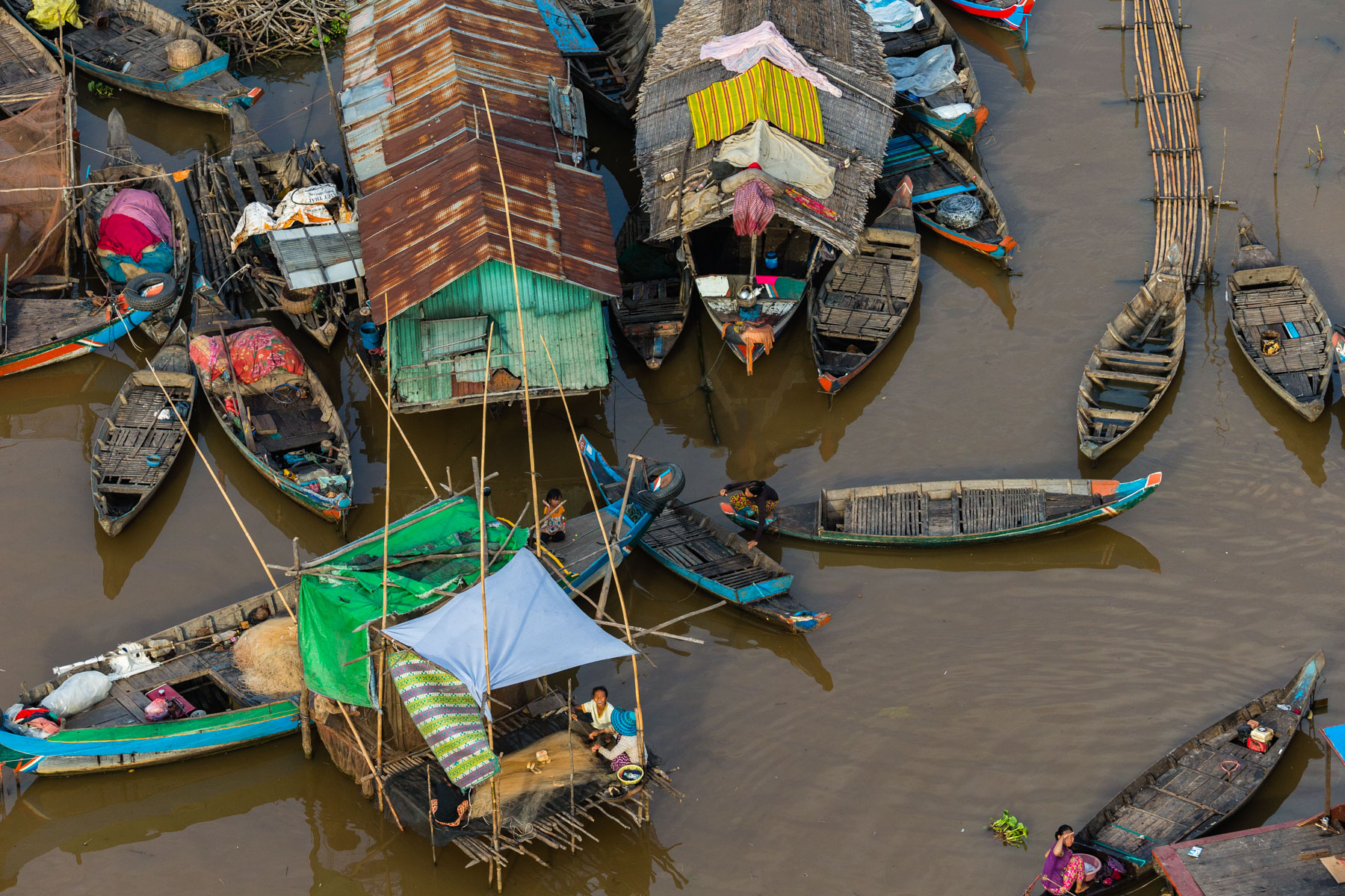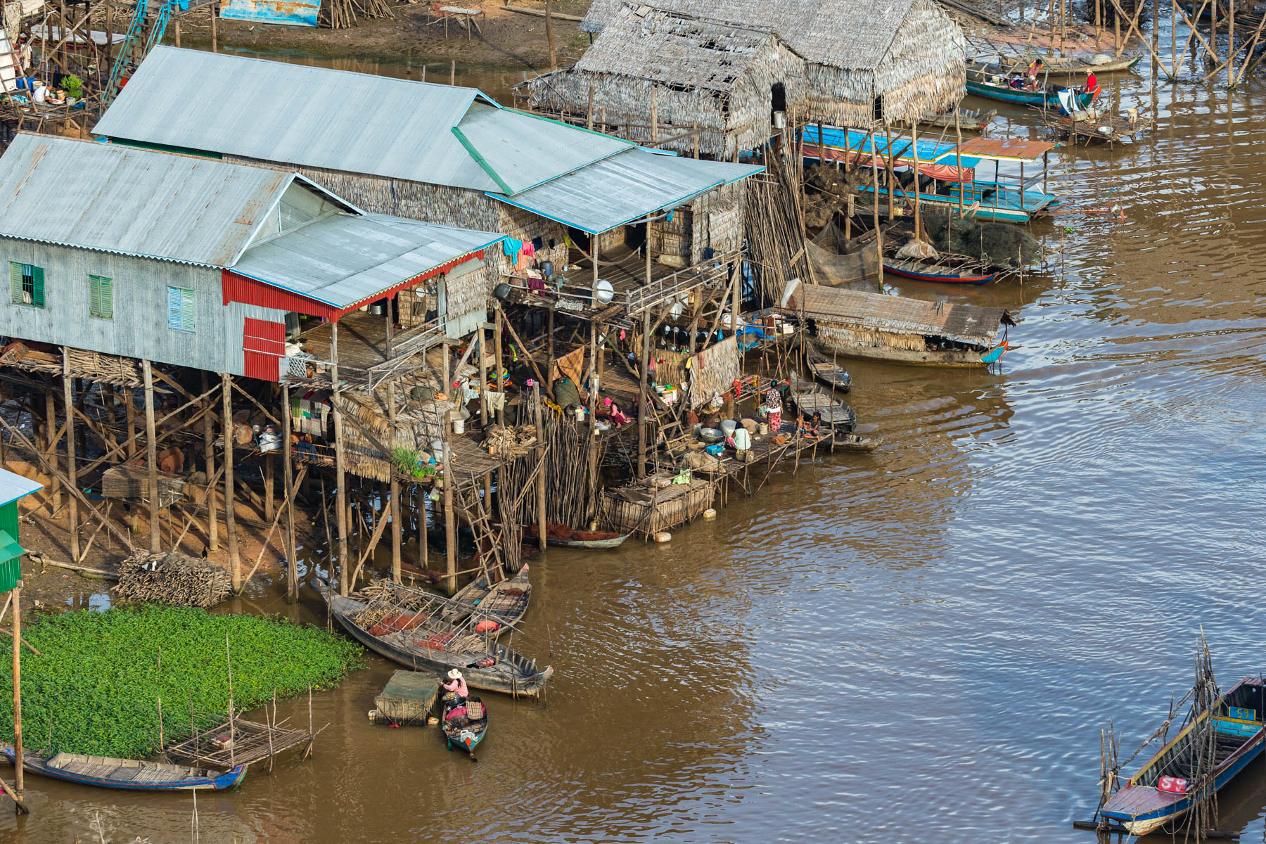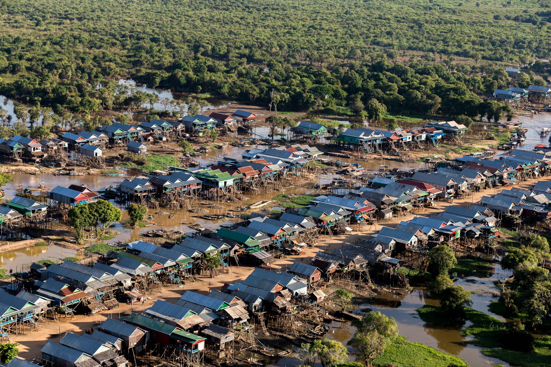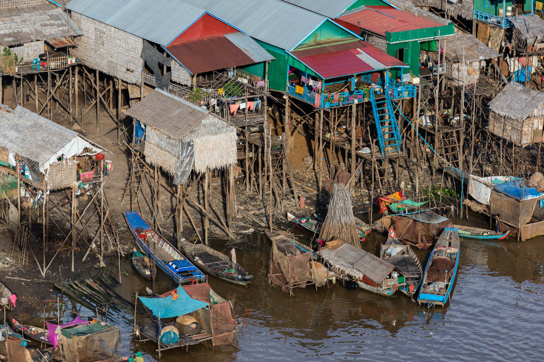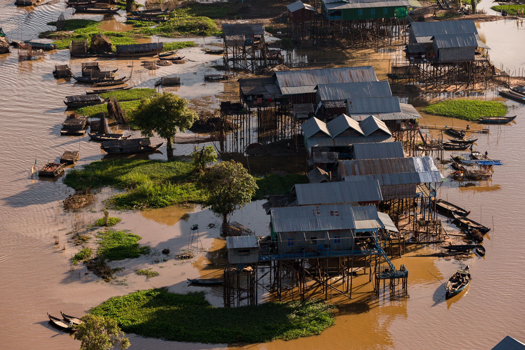 Village flottant de Kampong Phulk sur le lac Tonlé Sap, province de Siem Reap, Cambodge (13°12'45.86"N - 103°58'28.22"E).