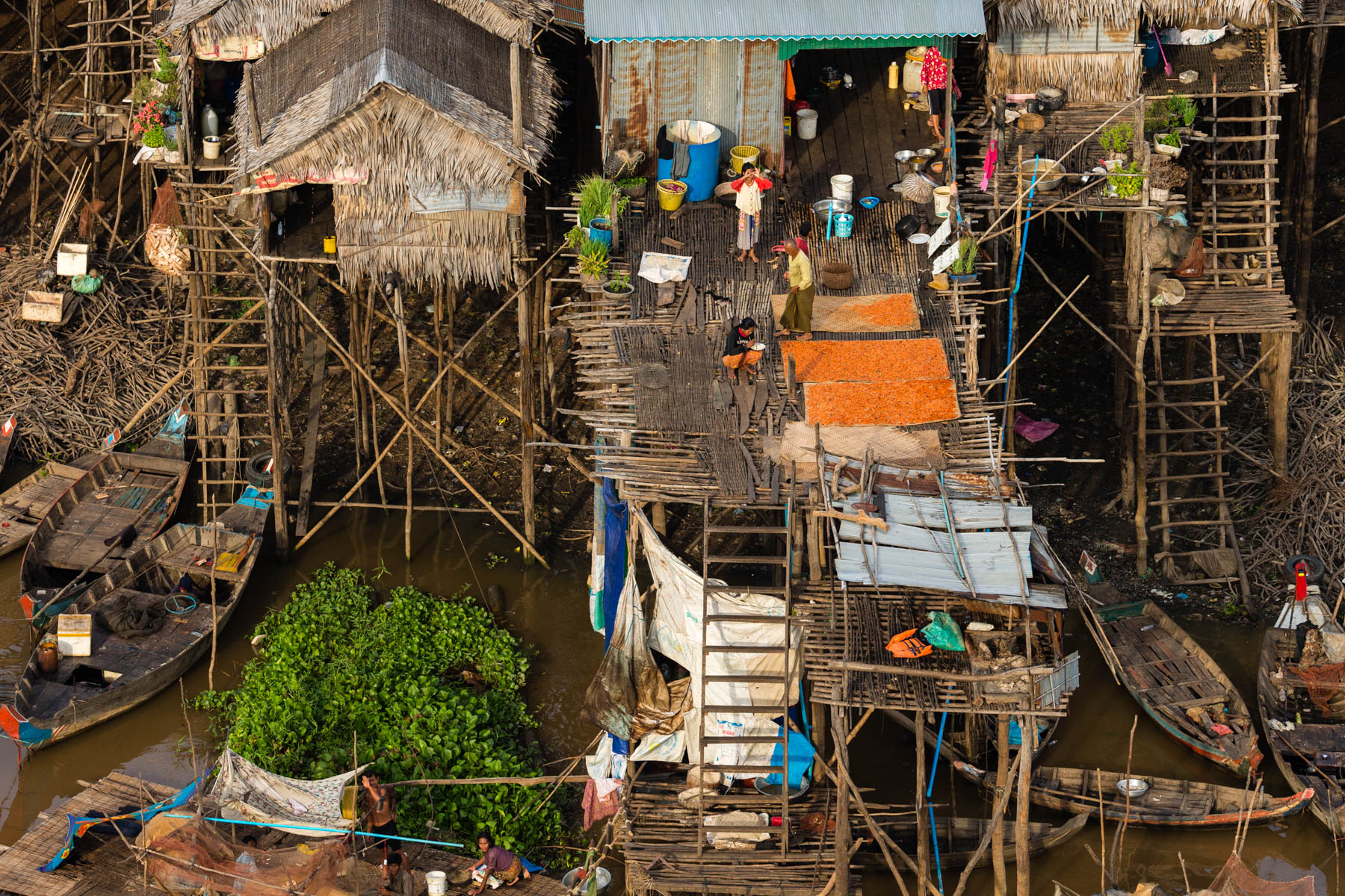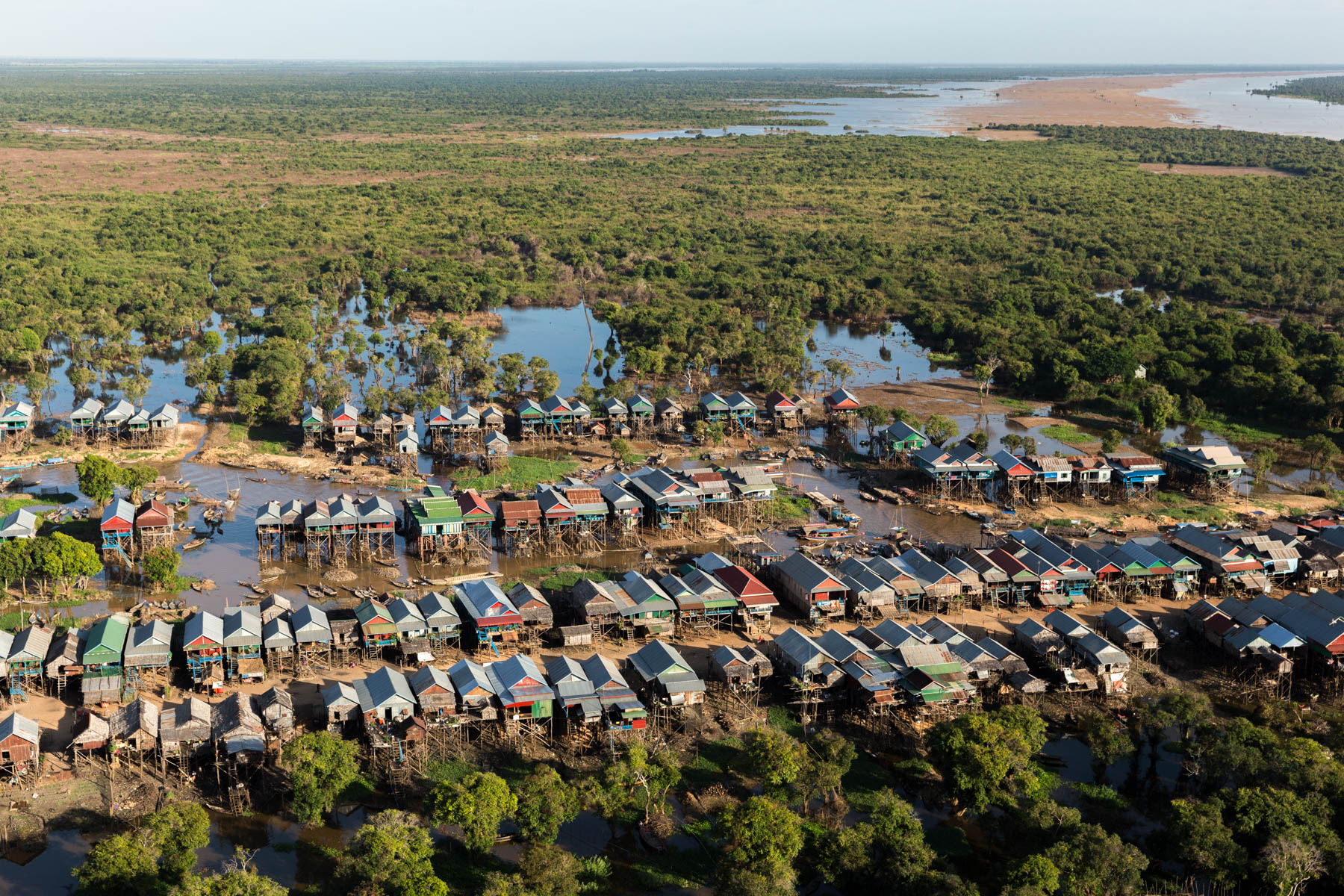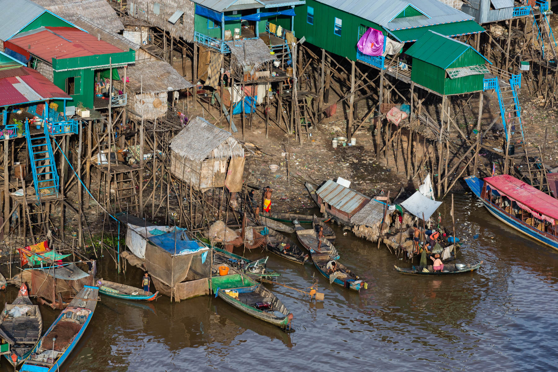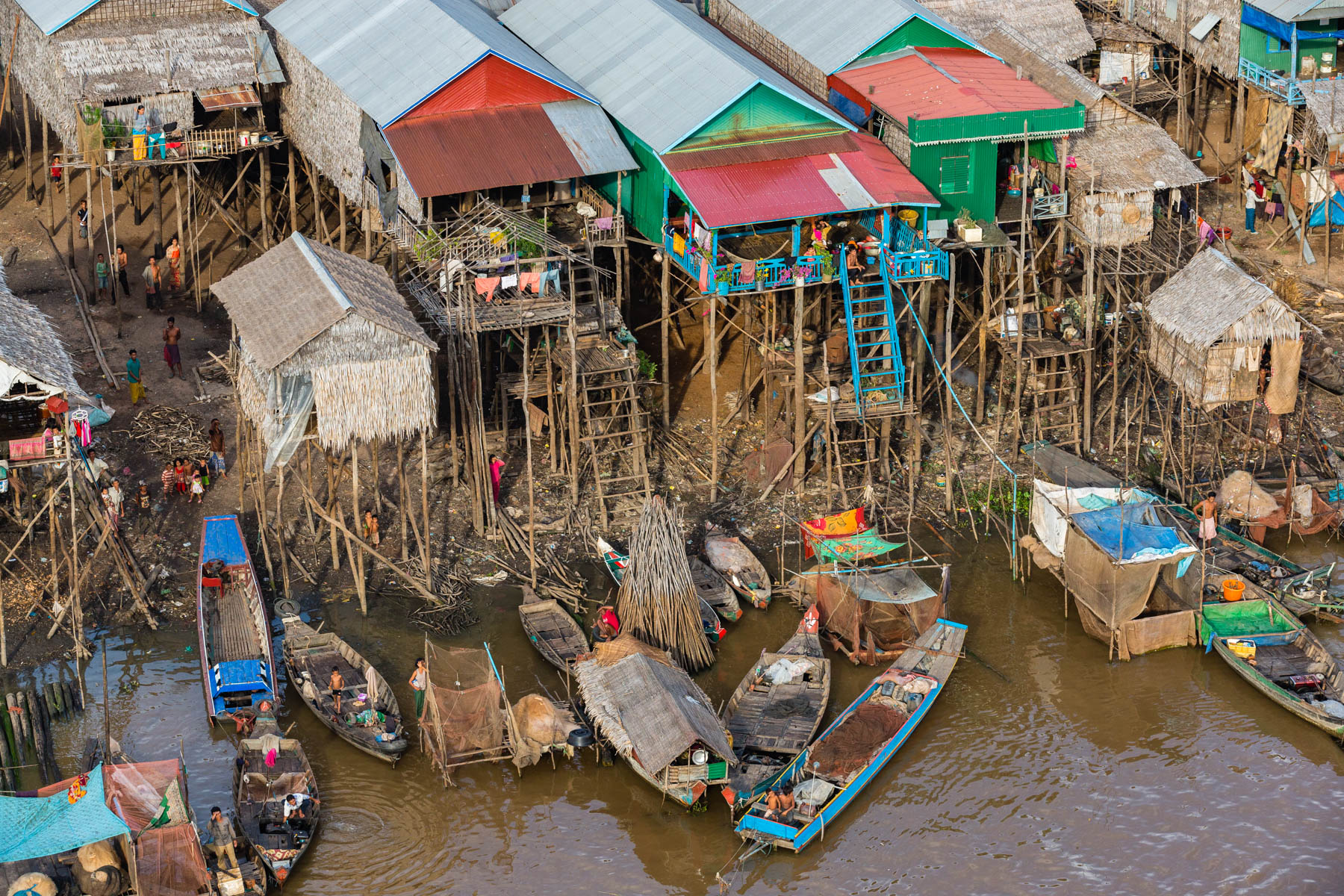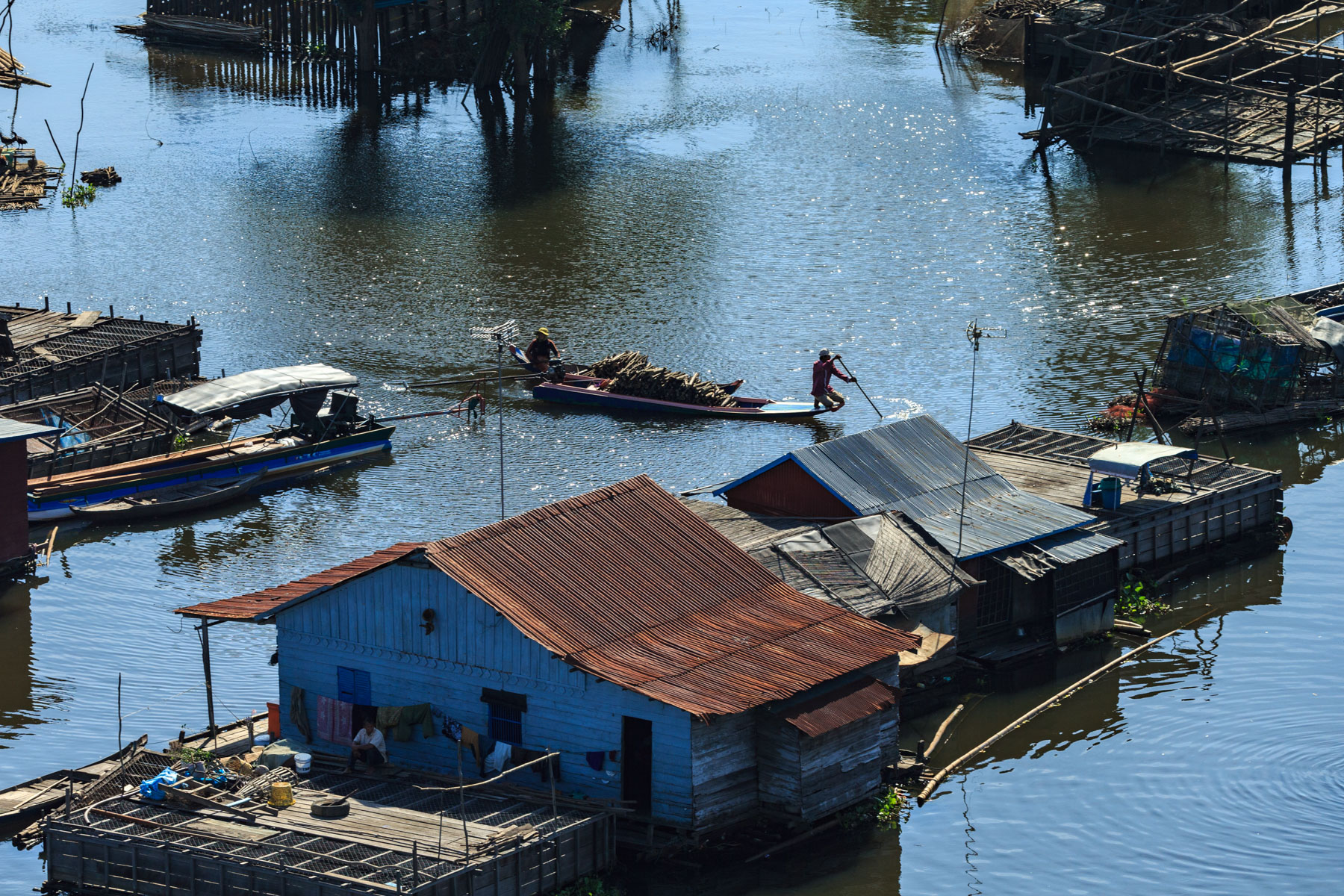 Village flottant de Kampong Phulk sur le lac Tonlé Sap, province de Siem Reap, Cambodge (13°12'45.86"N - 103°58'28.22"E).
