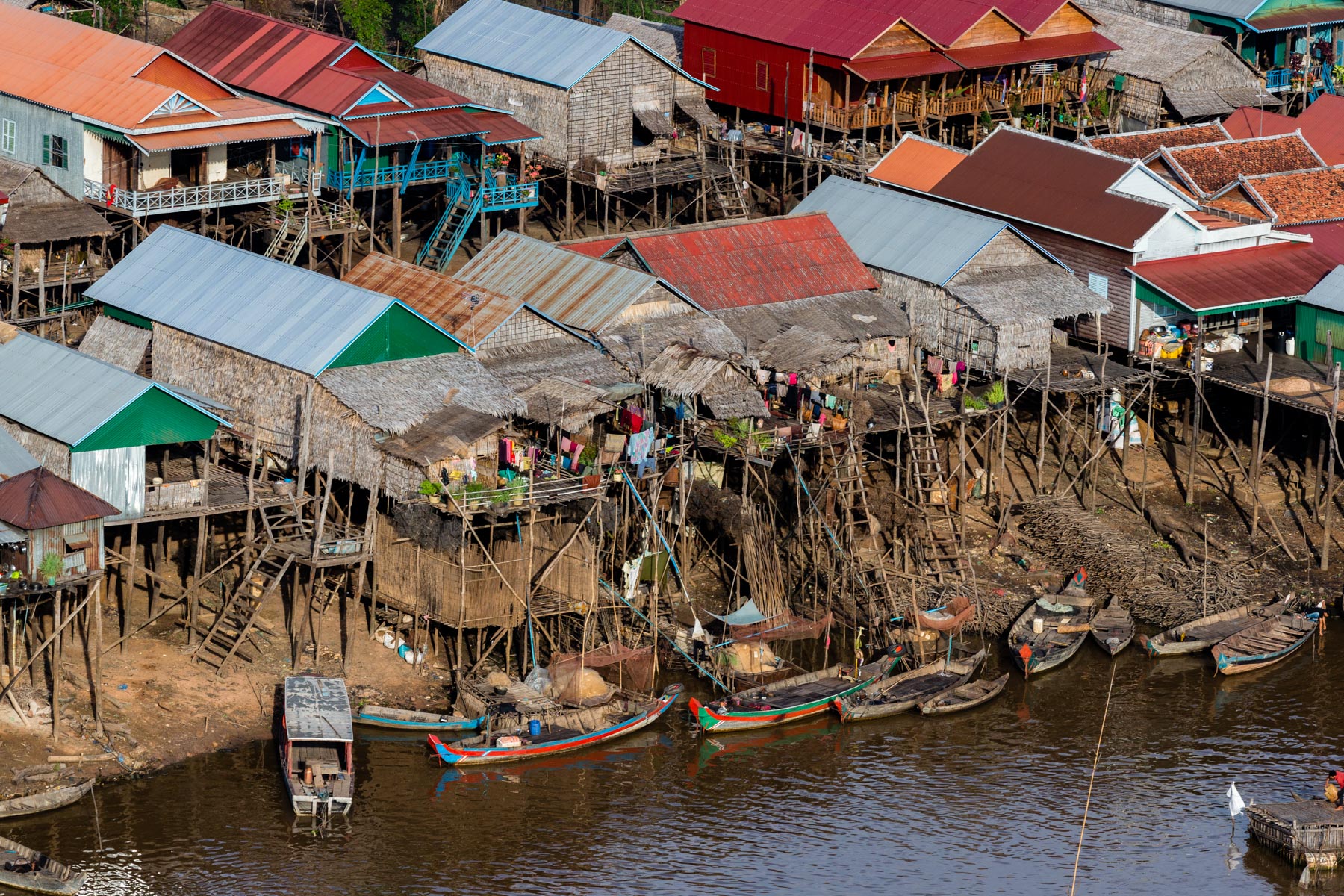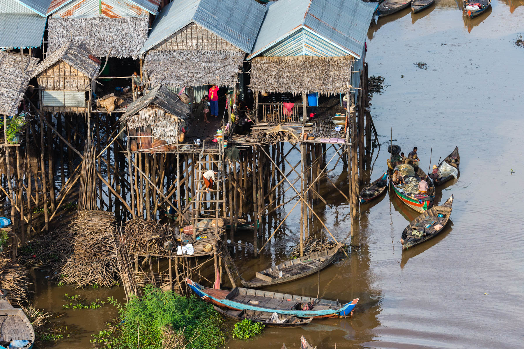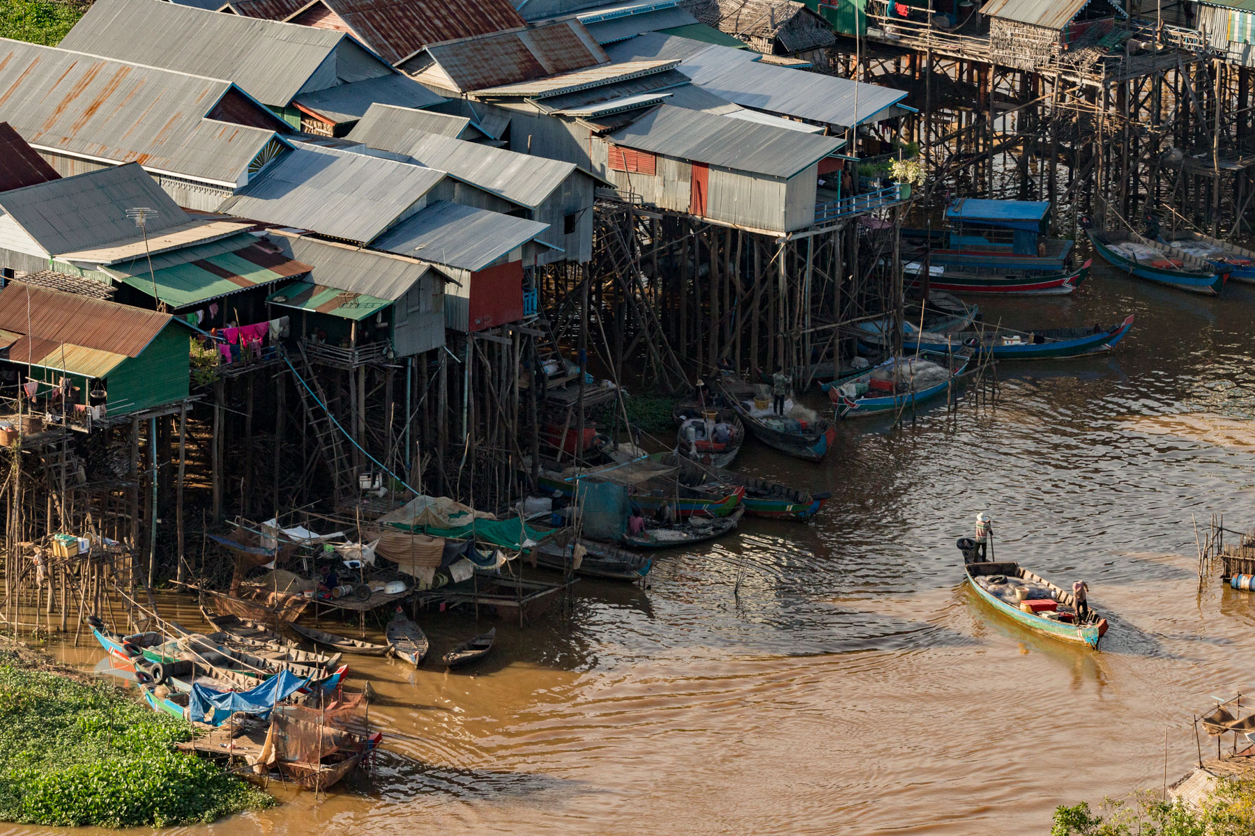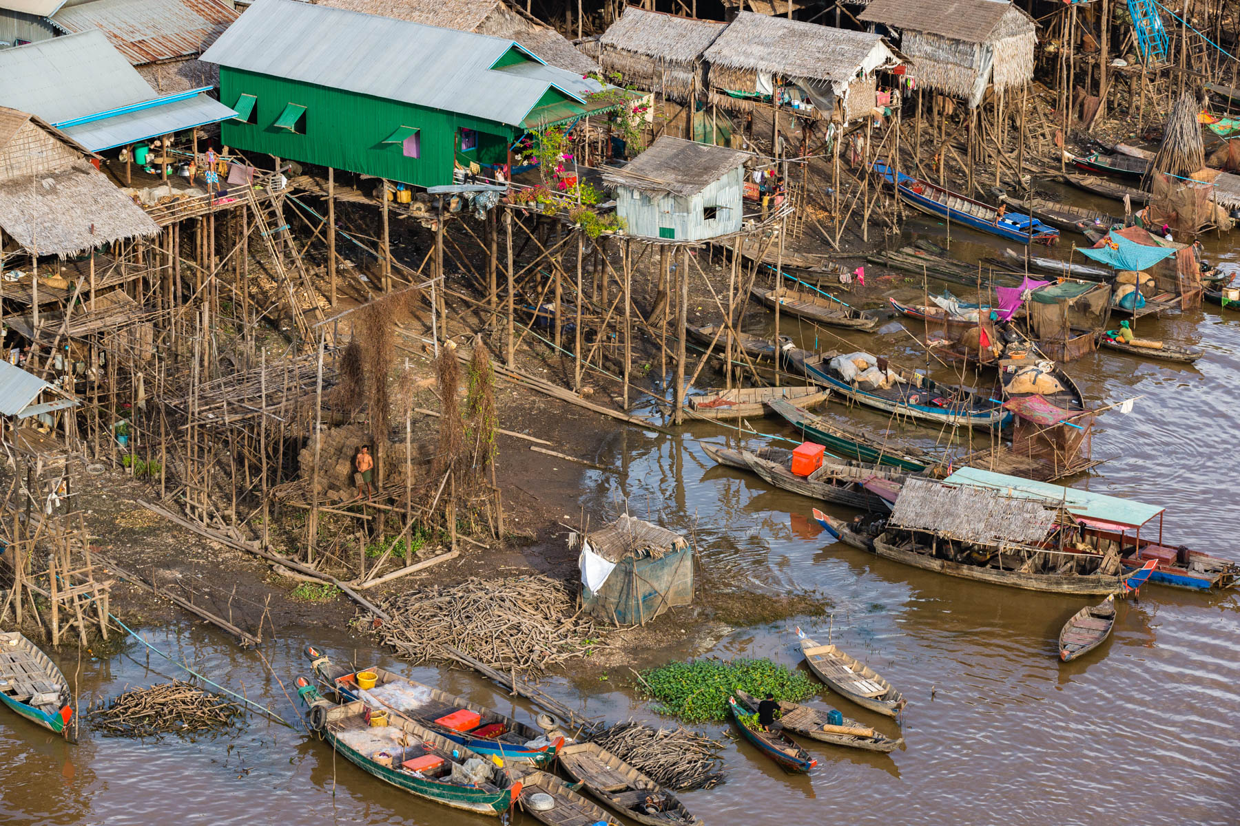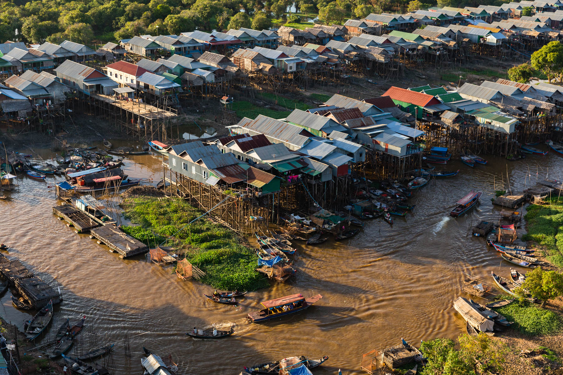Village flottant de Kampong Phulk sur le lac Tonlé Sap, province de Siem Reap, Cambodge (13°12'45.86"N - 103°58'28.22"E).