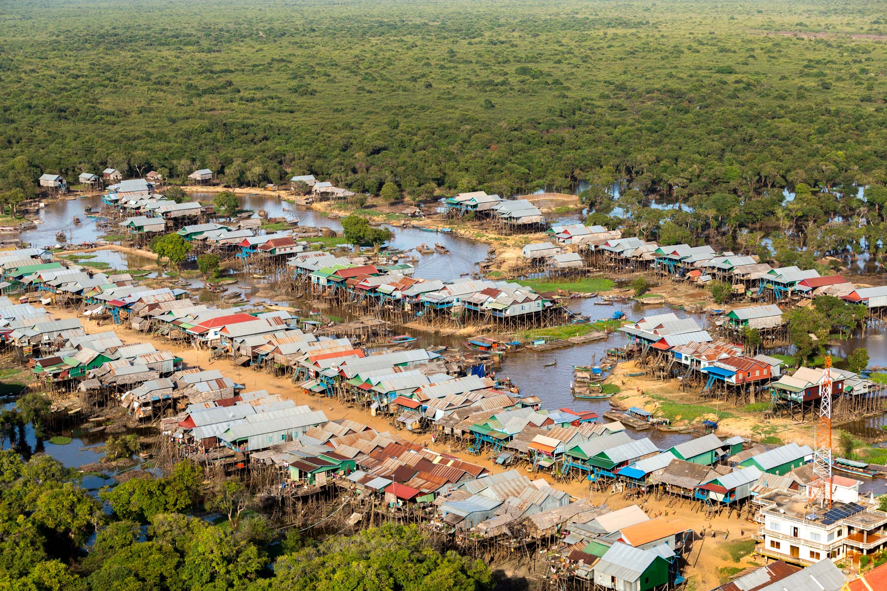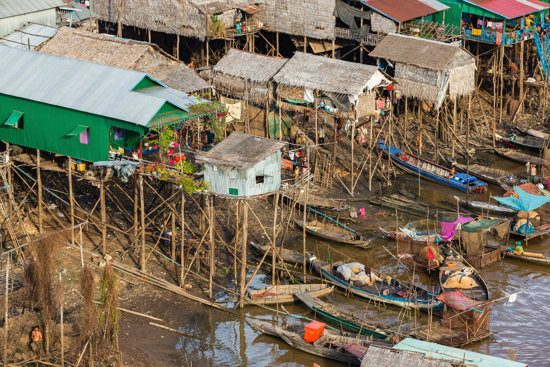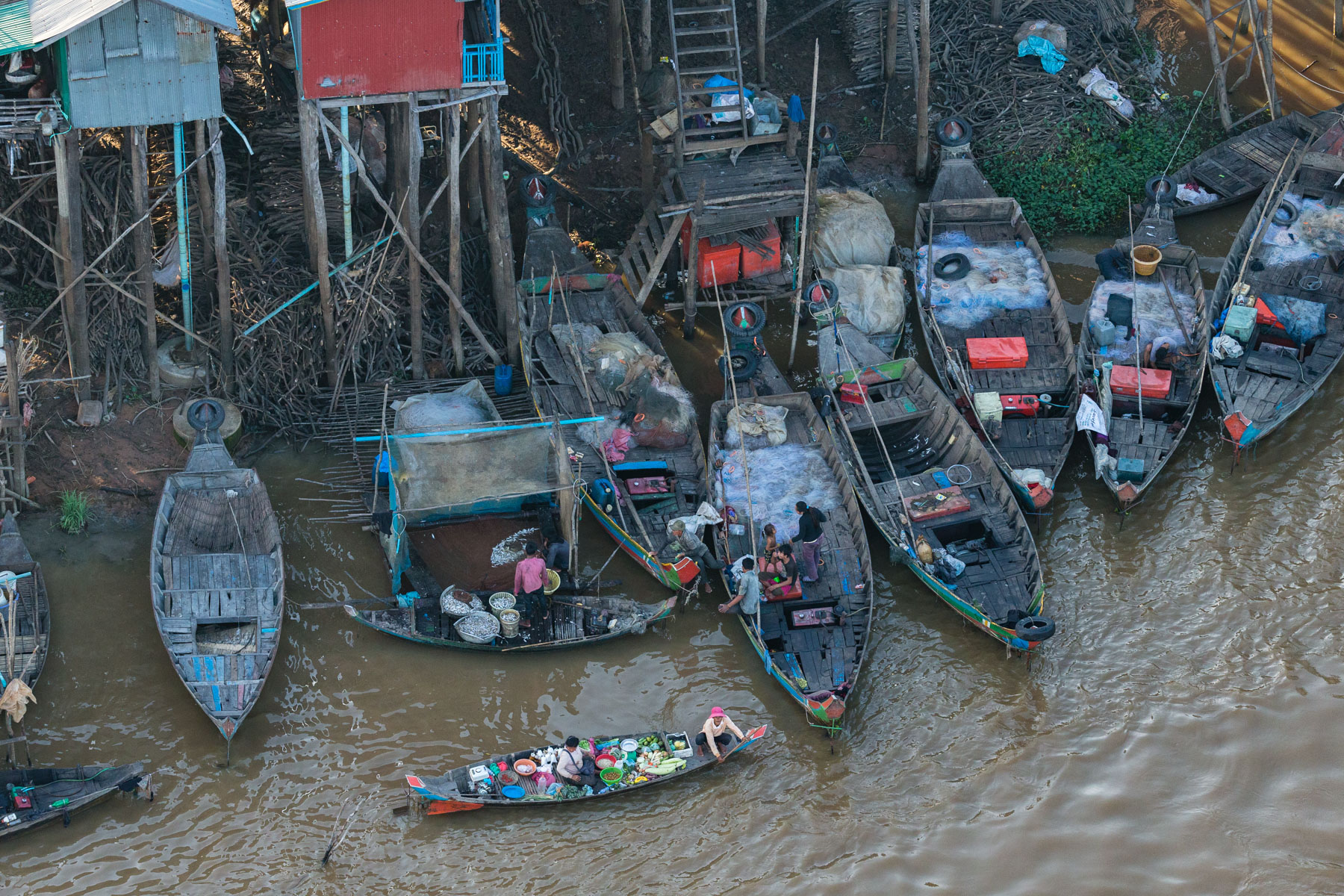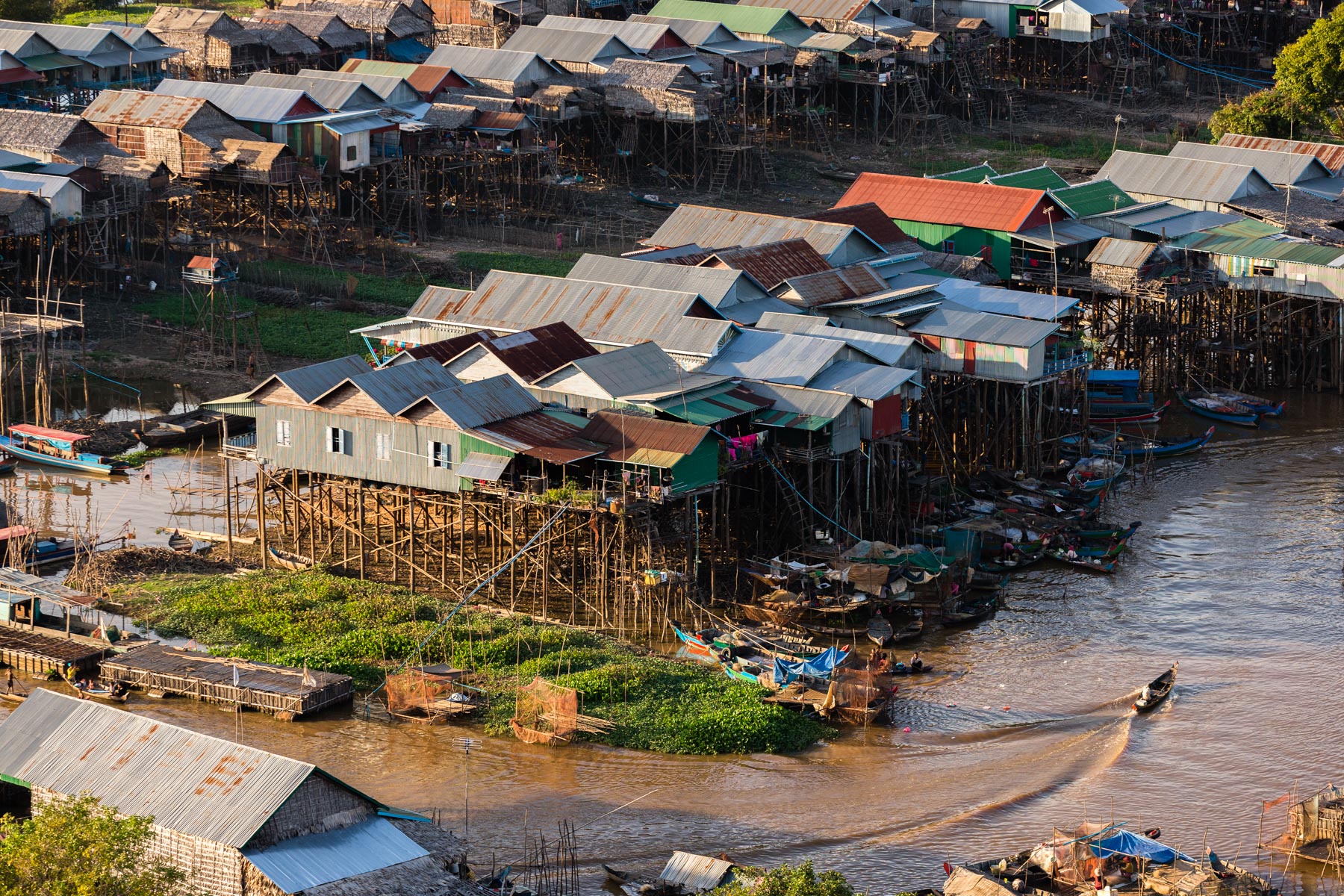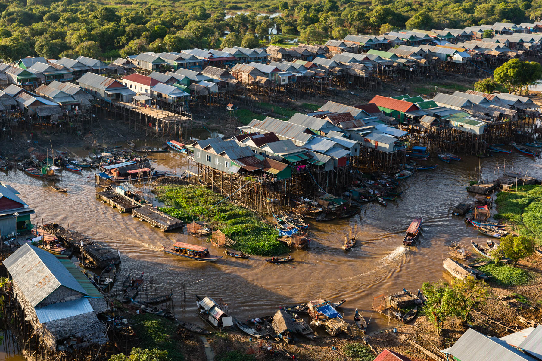 Village flottant de Kampong Phulk sur le lac Tonlé Sap, province de Siem Reap, Cambodge (13°12'45.86"N - 103°58'28.22"E).