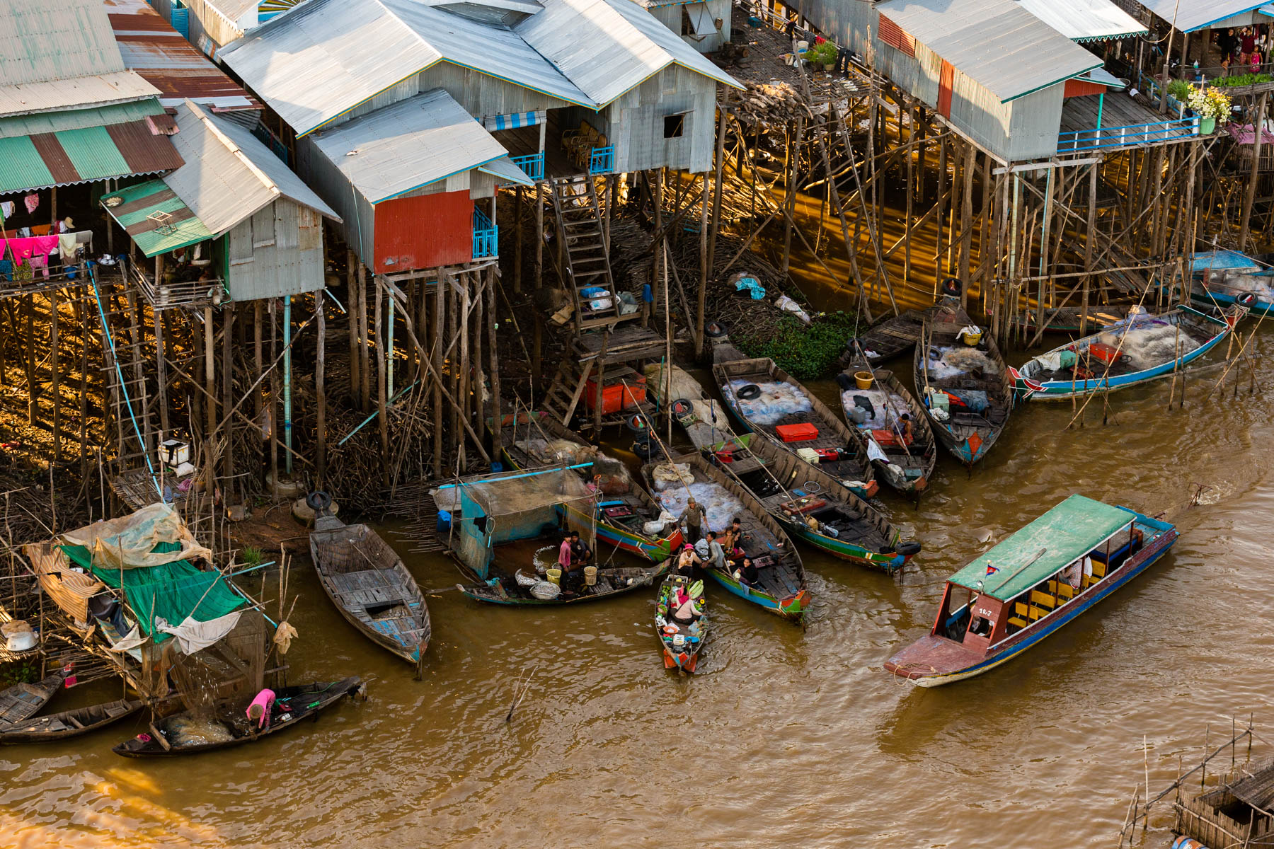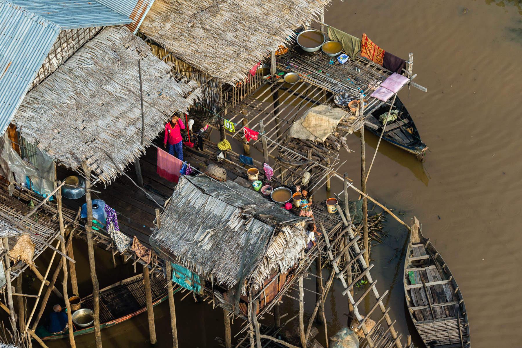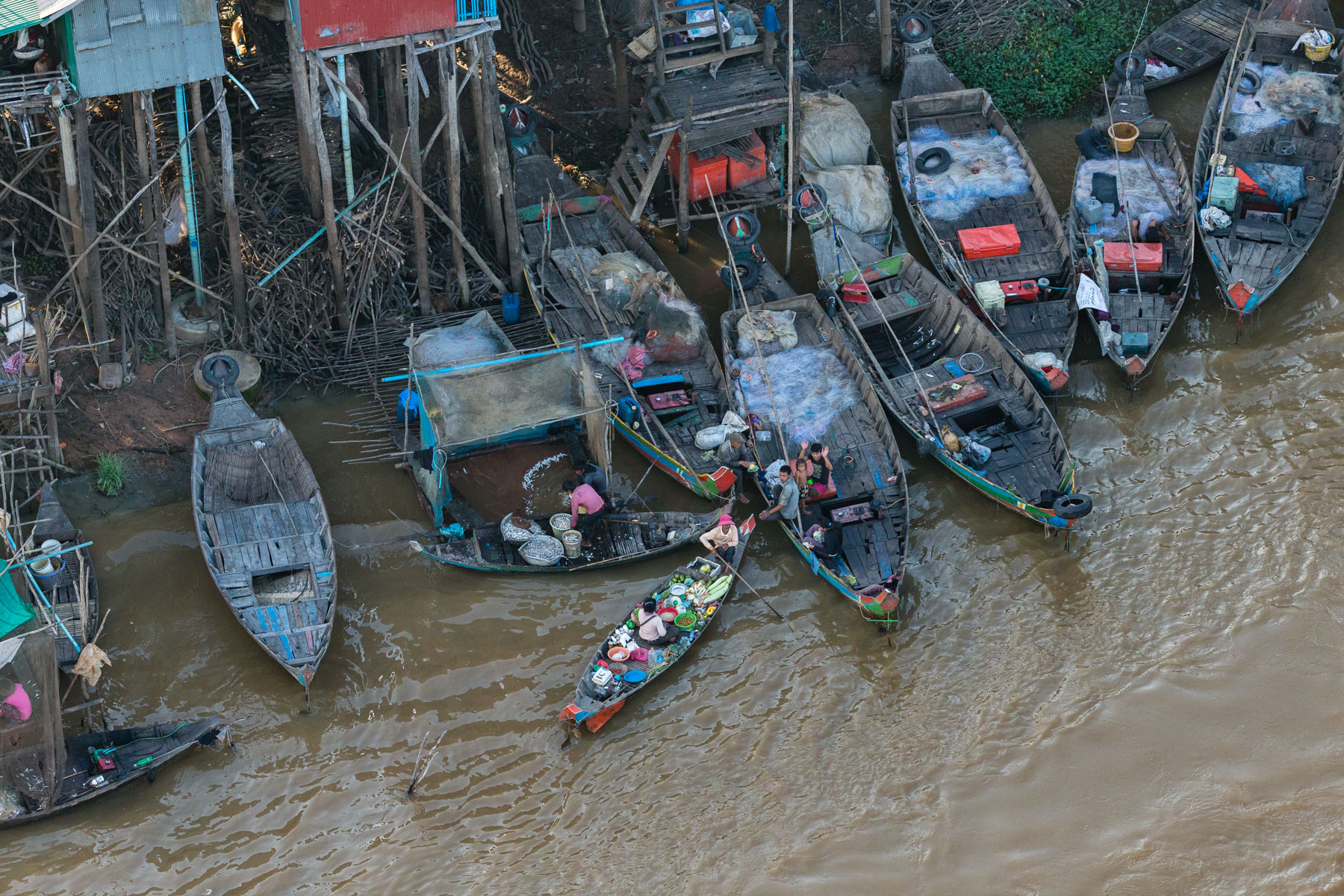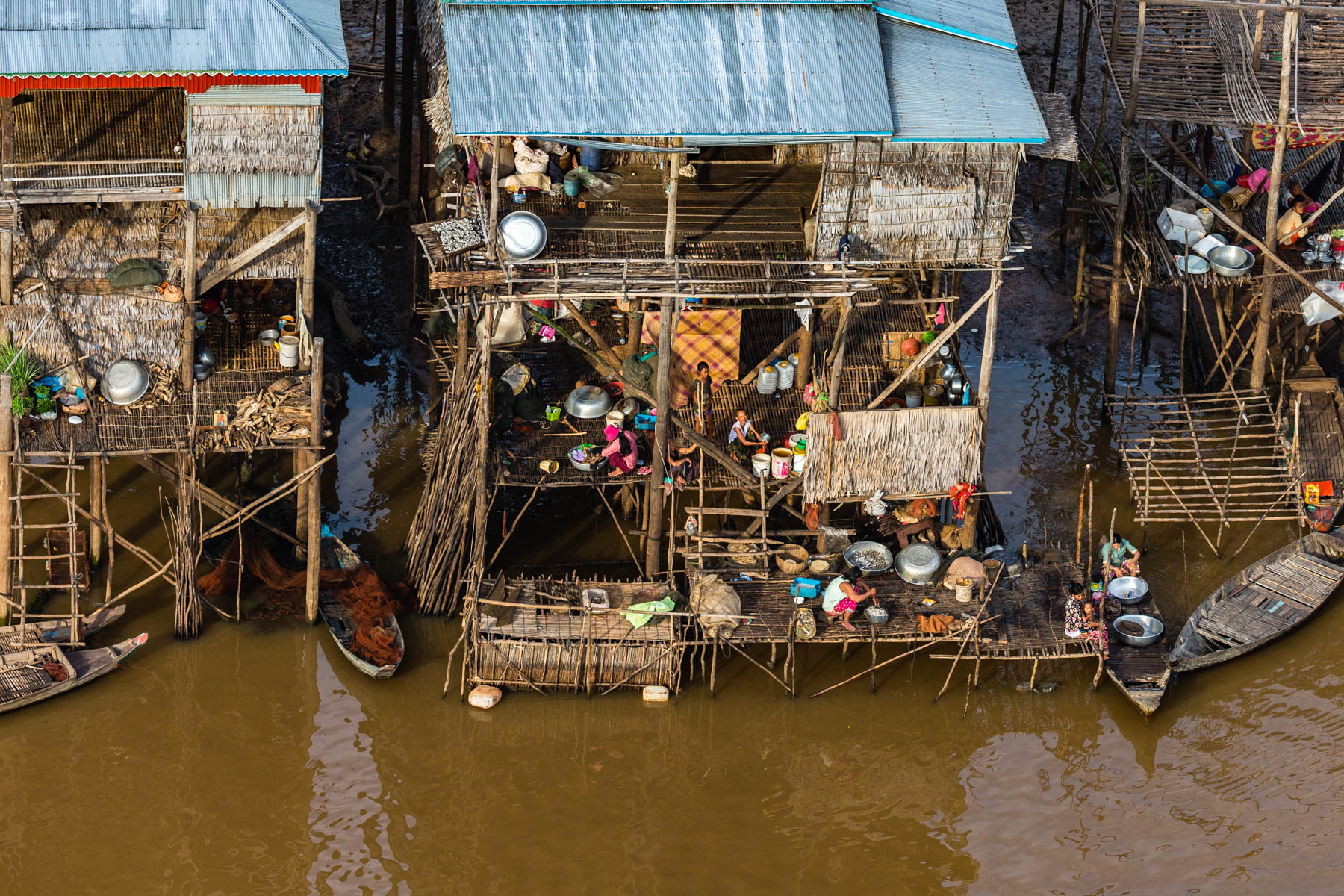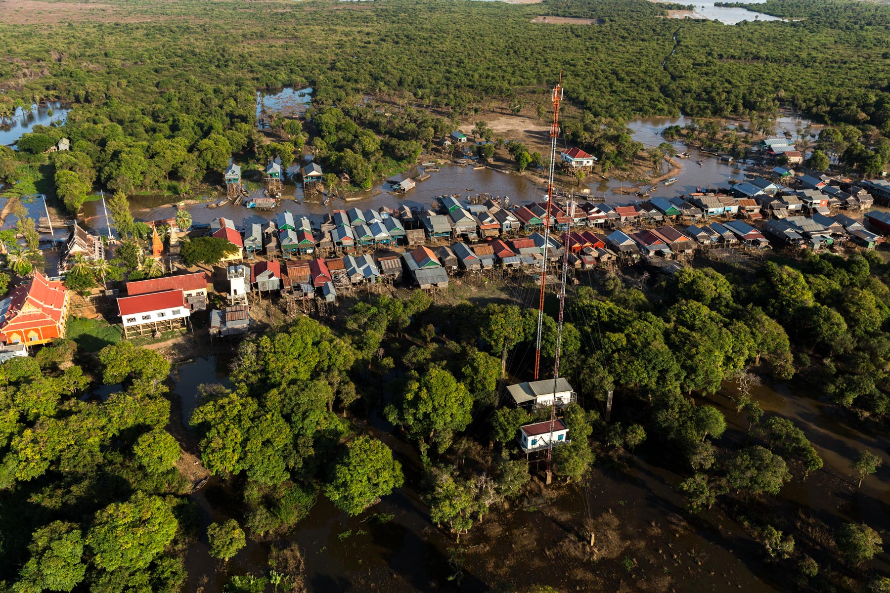 Village flottant de Kampong Phulk sur le lac Tonlé Sap, province de Siem Reap, Cambodge (13°12'45.86"N - 103°58'28.22"E).