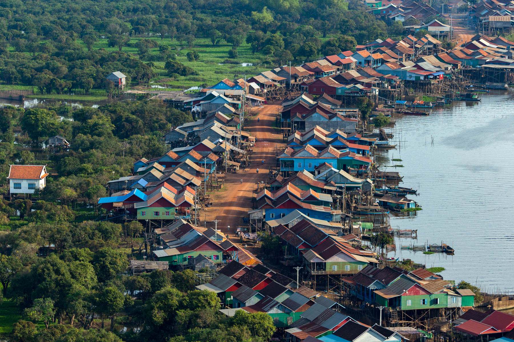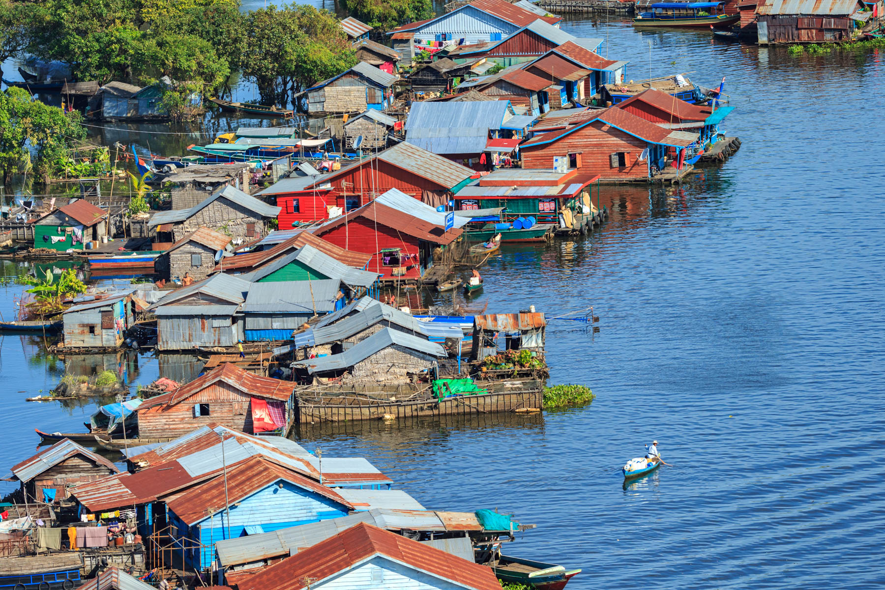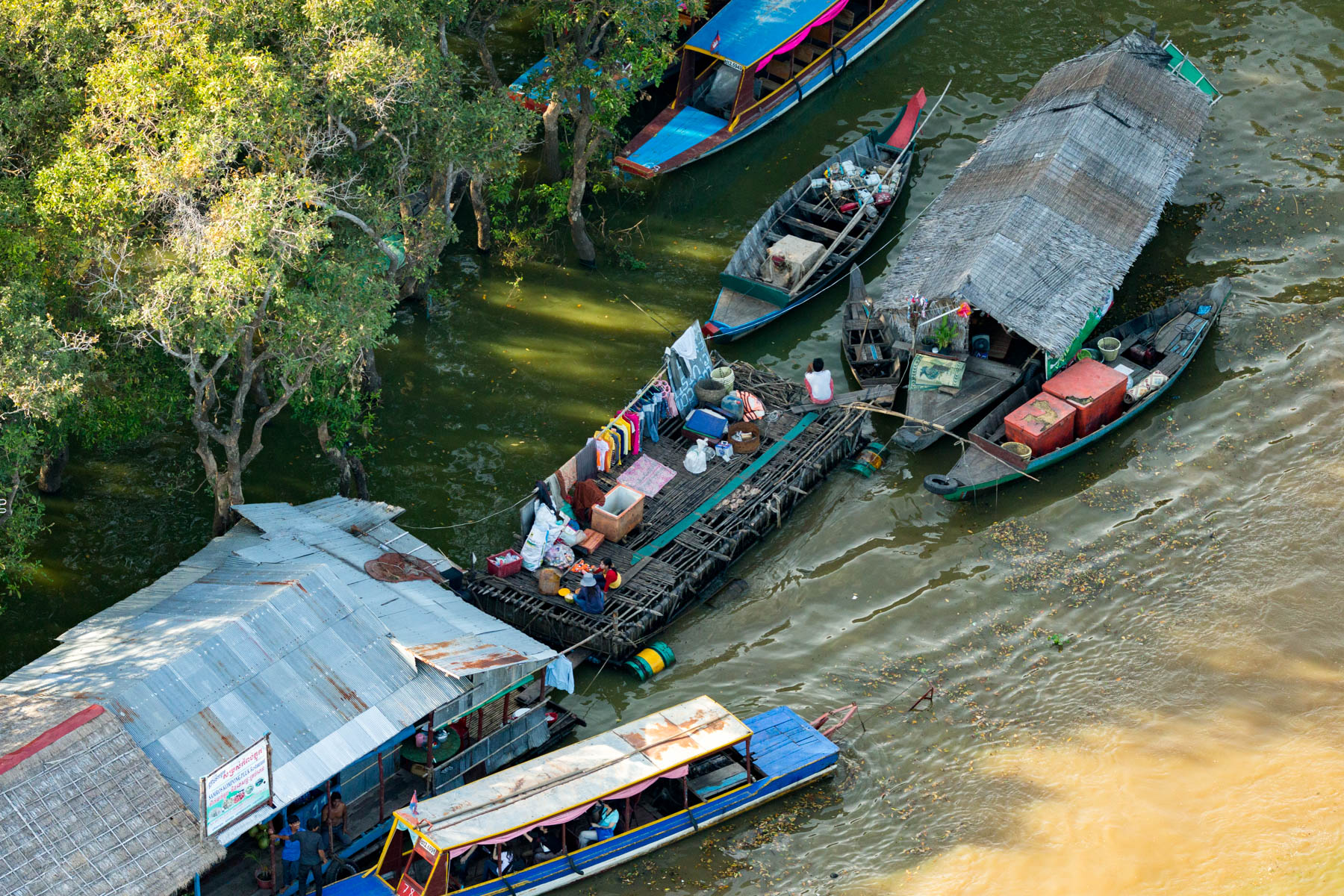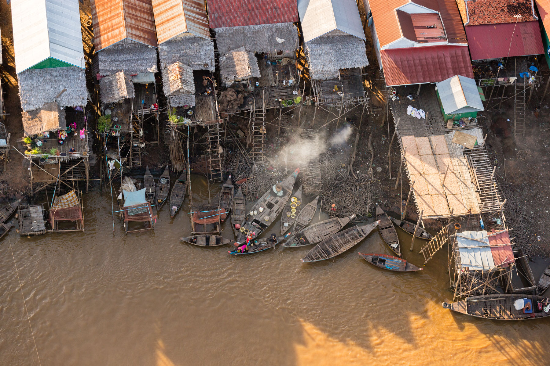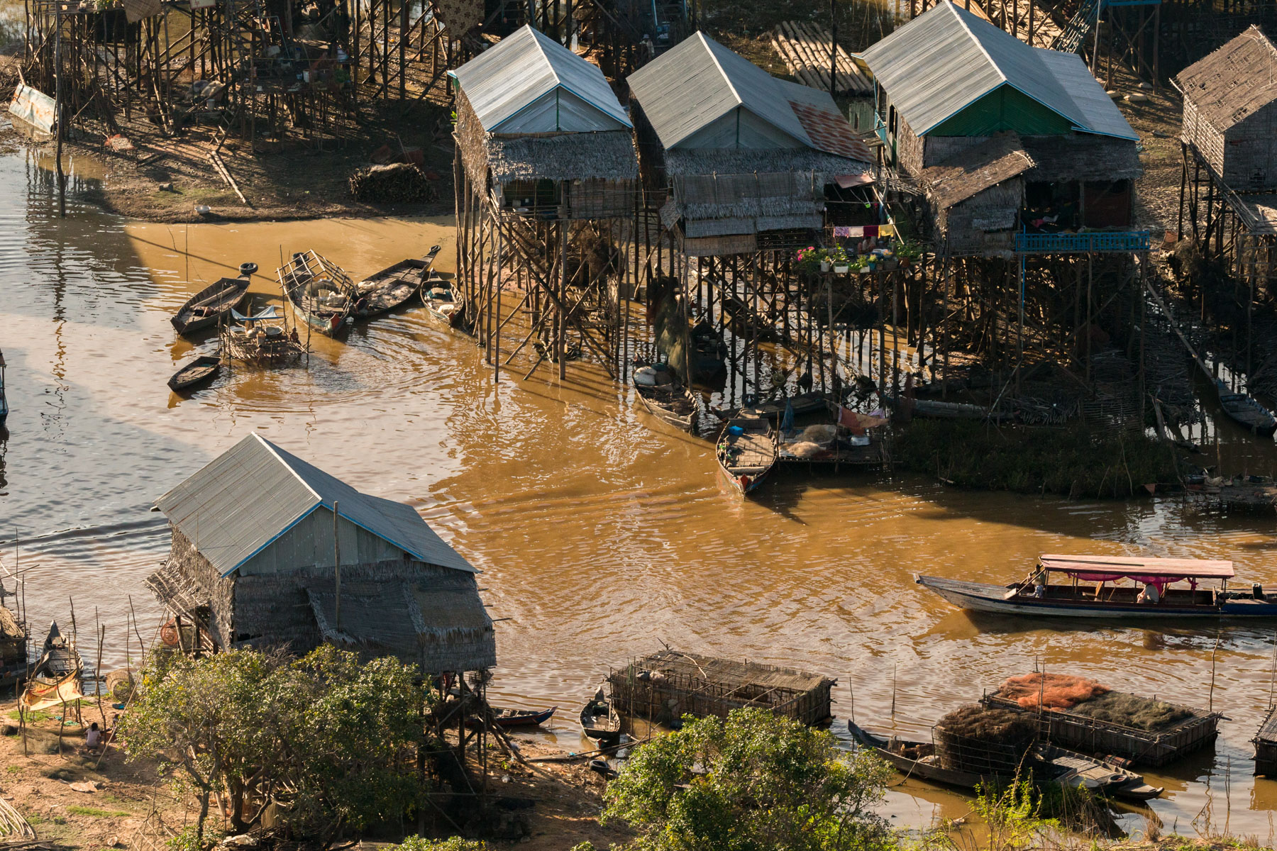 Village flottant de Kampong Phulk sur le lac Tonlé Sap, province de Siem Reap, Cambodge (13°12'45.86"N - 103°58'28.22"E).