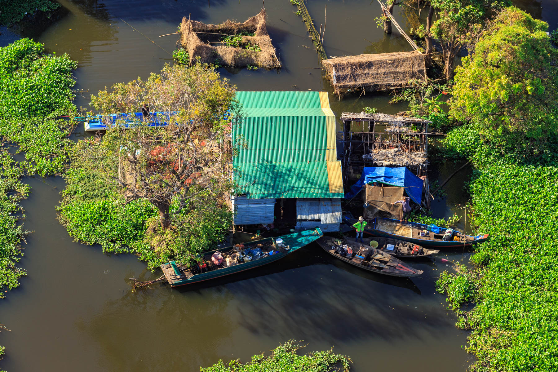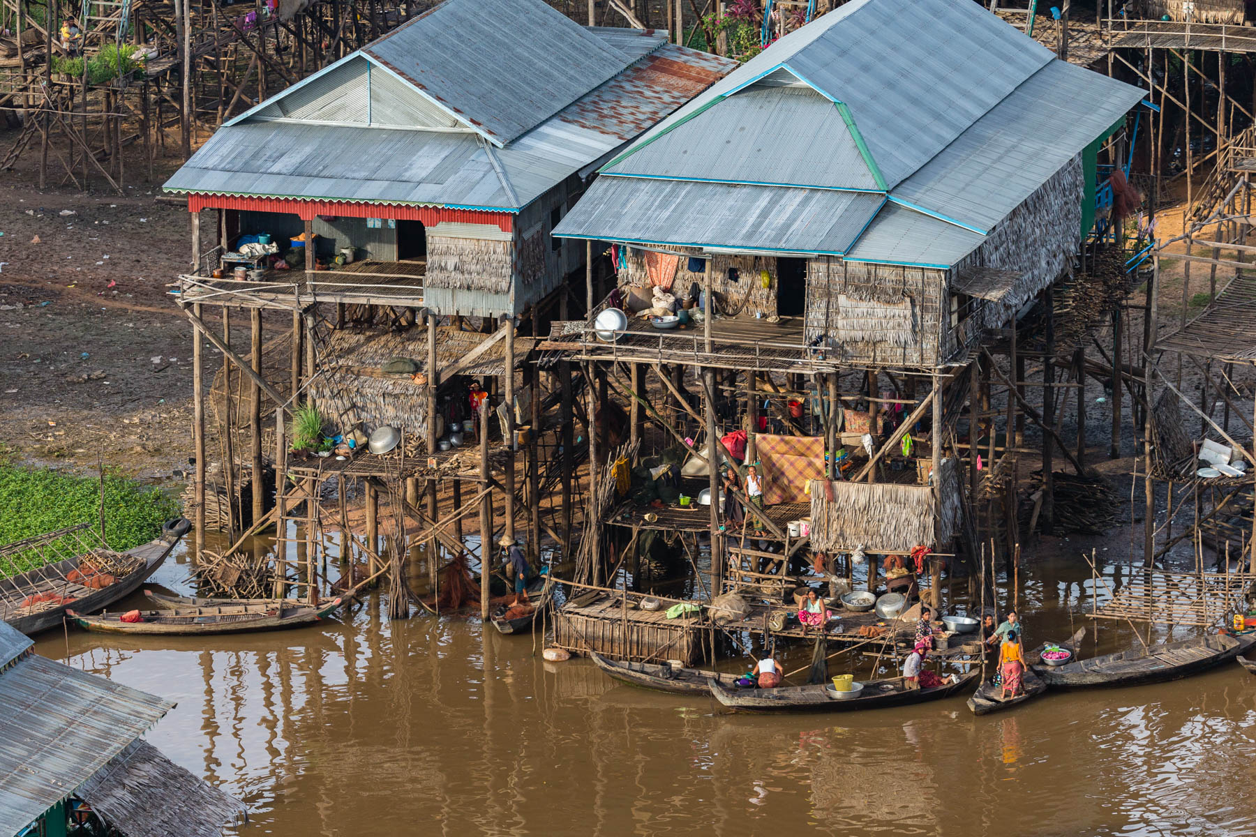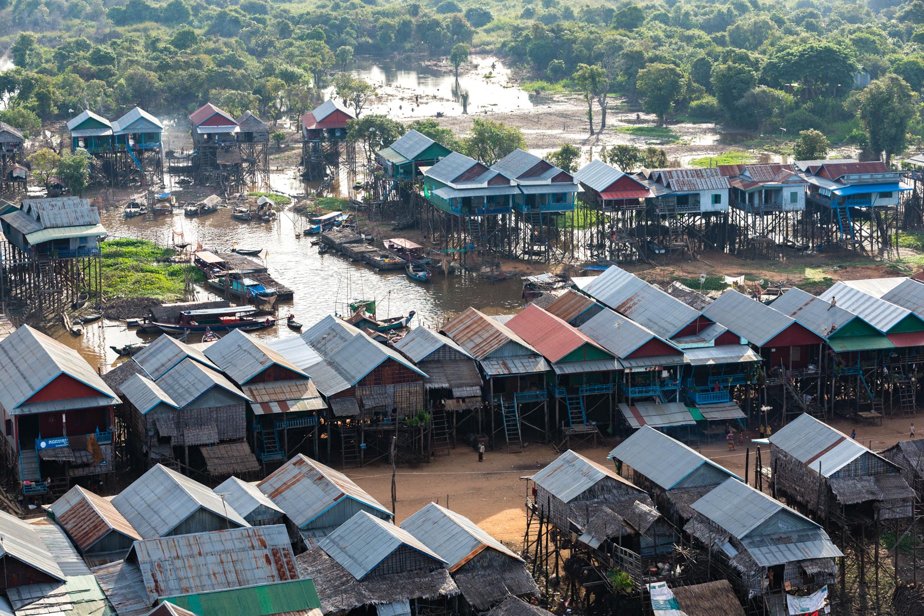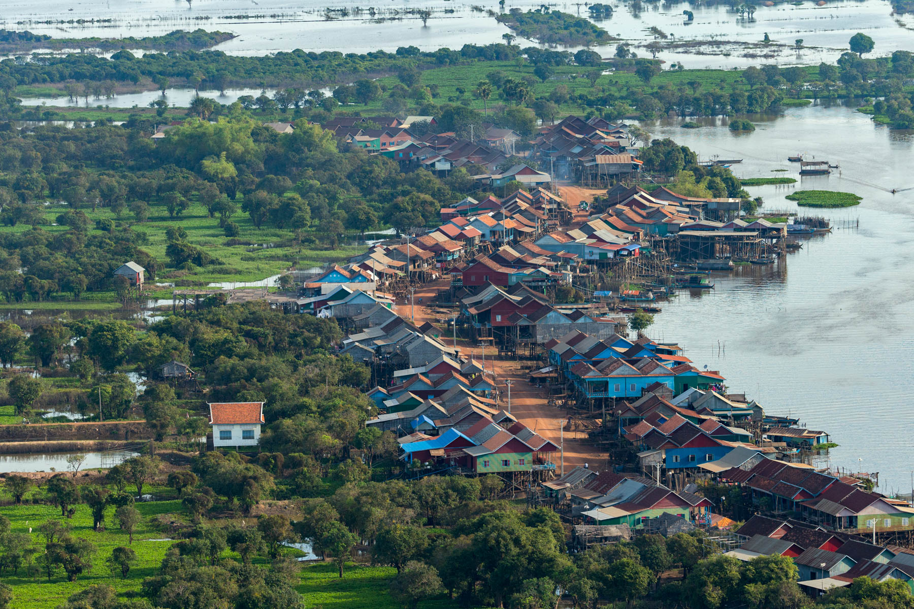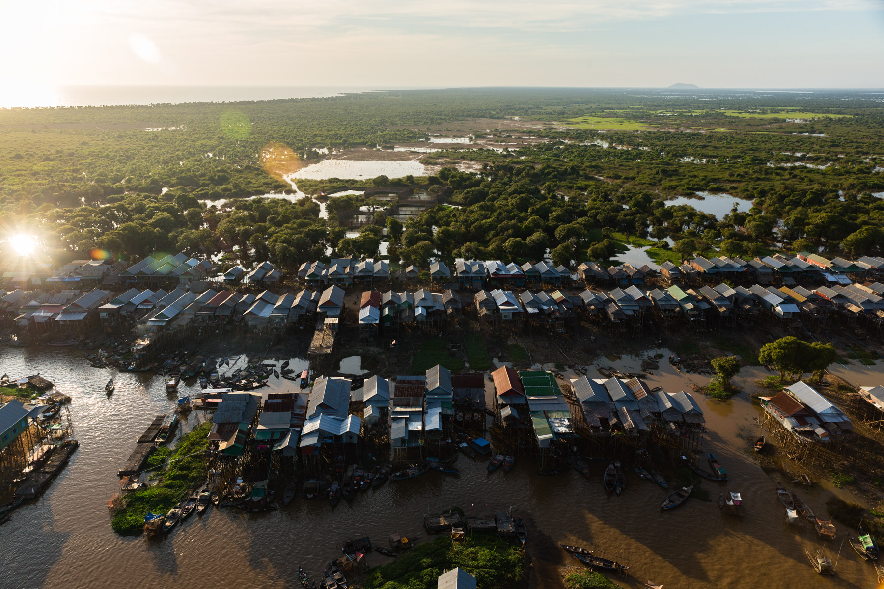 Village flottant de Kampong Phulk sur le lac Tonlé Sap, province de Siem Reap, Cambodge (13°12'45.86"N - 103°58'28.22"E).