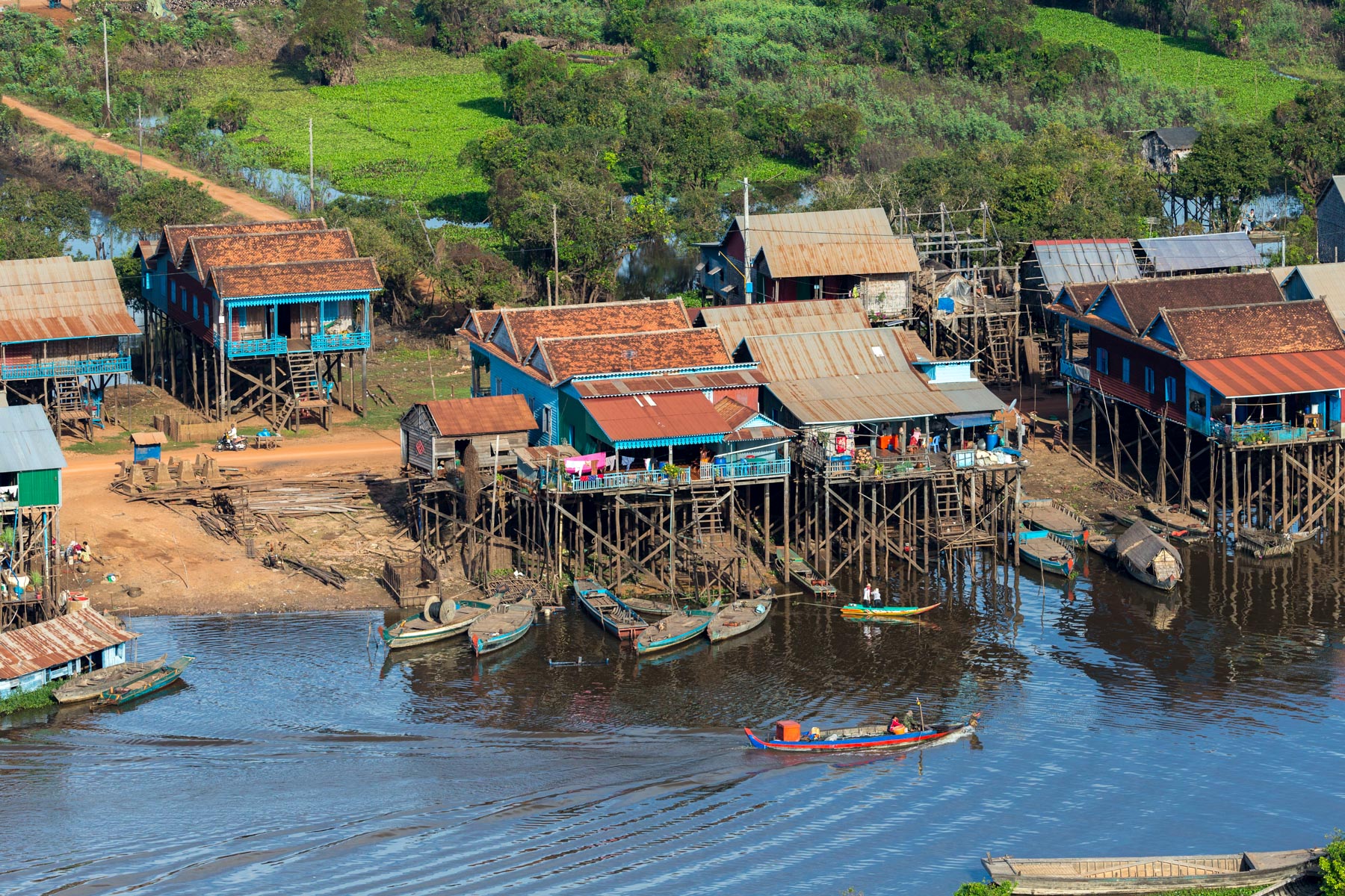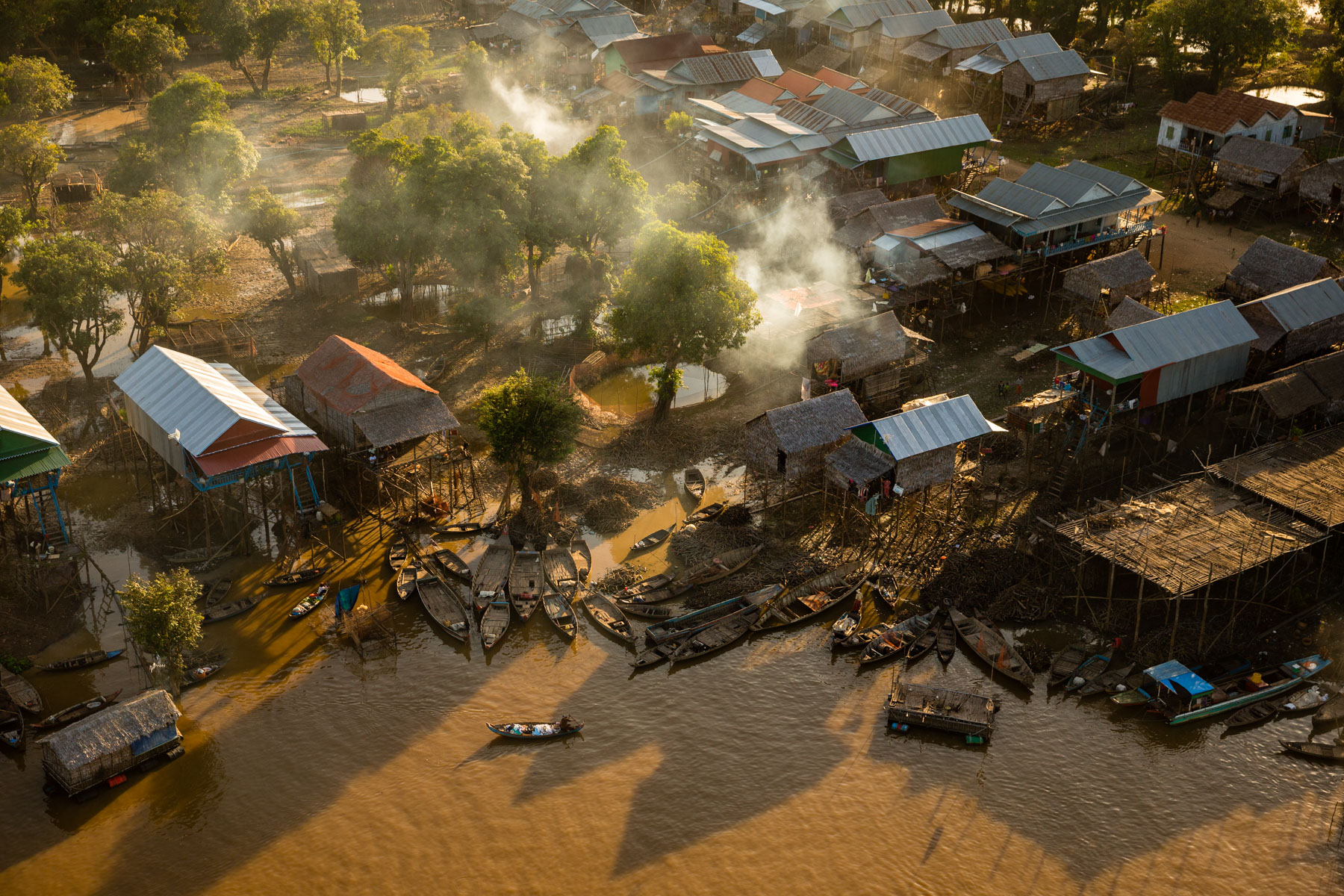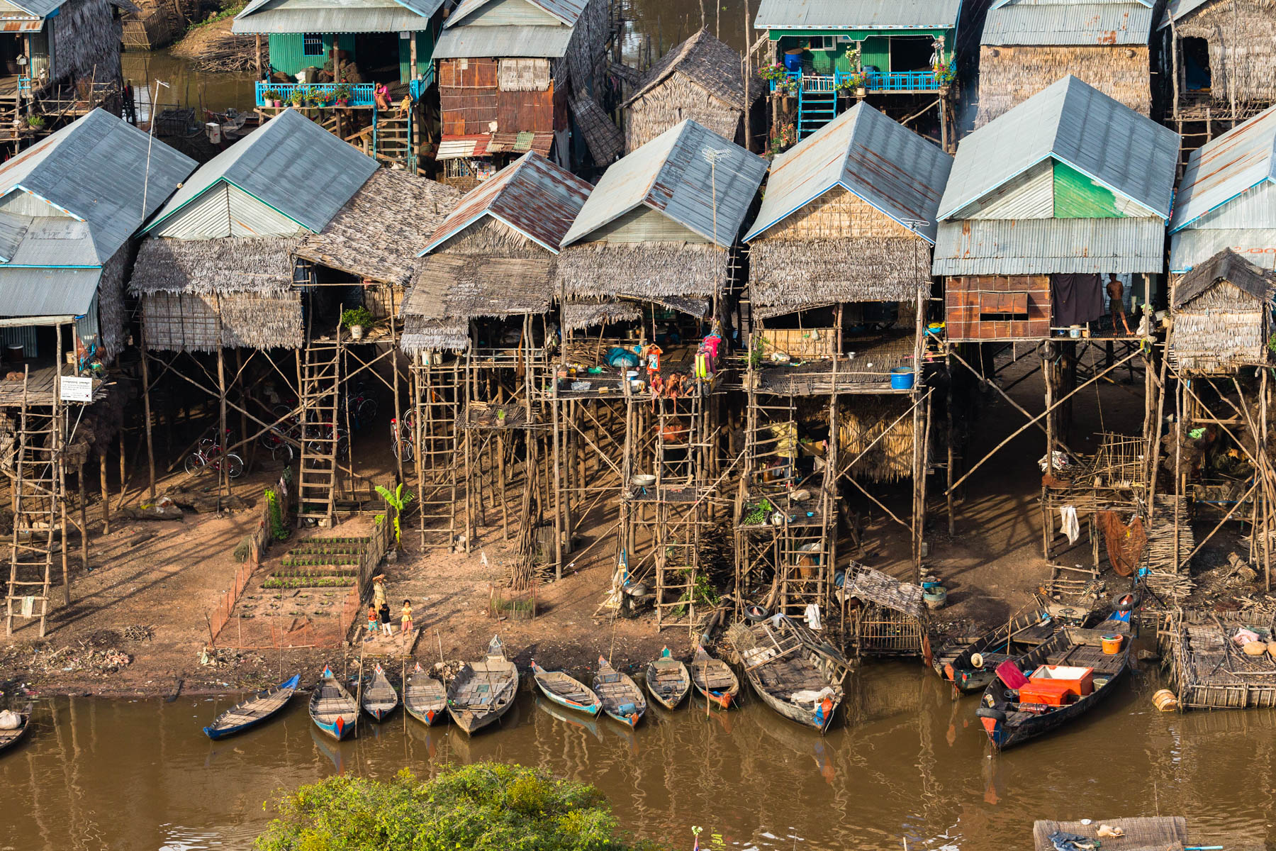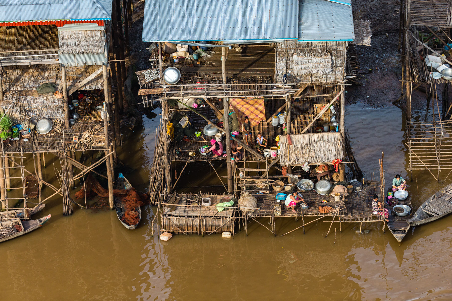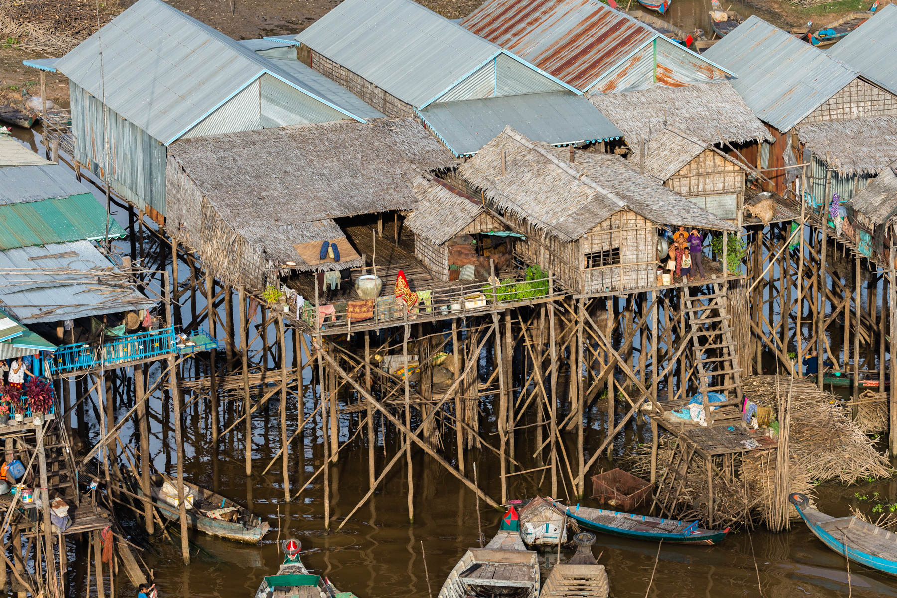 Village flottant de Kampong Phulk sur le lac Tonlé Sap, province de Siem Reap, Cambodge (13°12'45.86"N - 103°58'28.22"E).