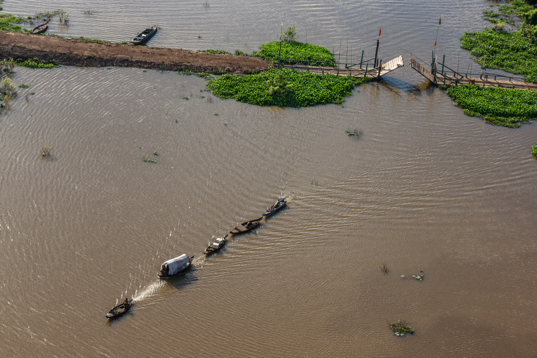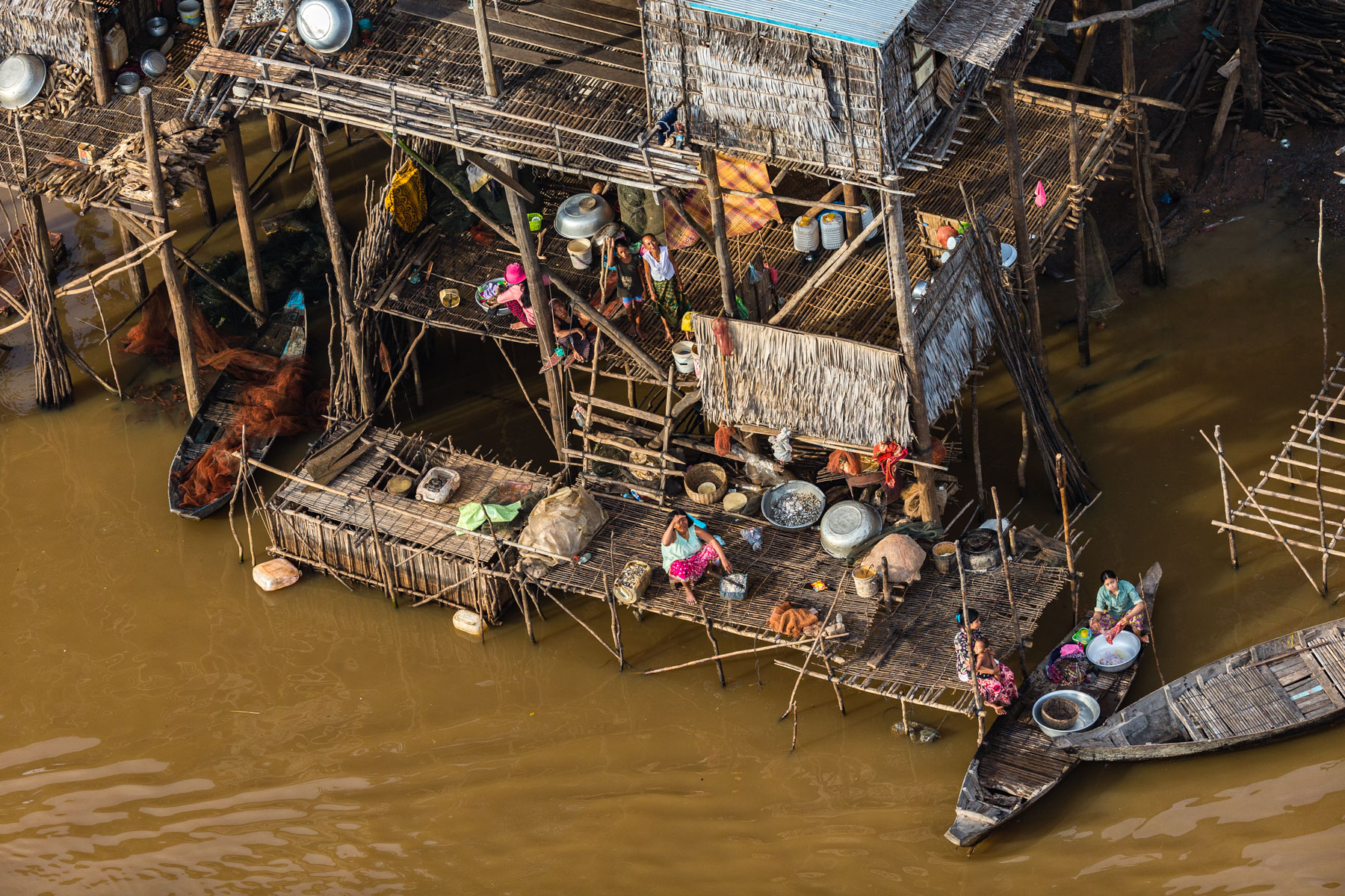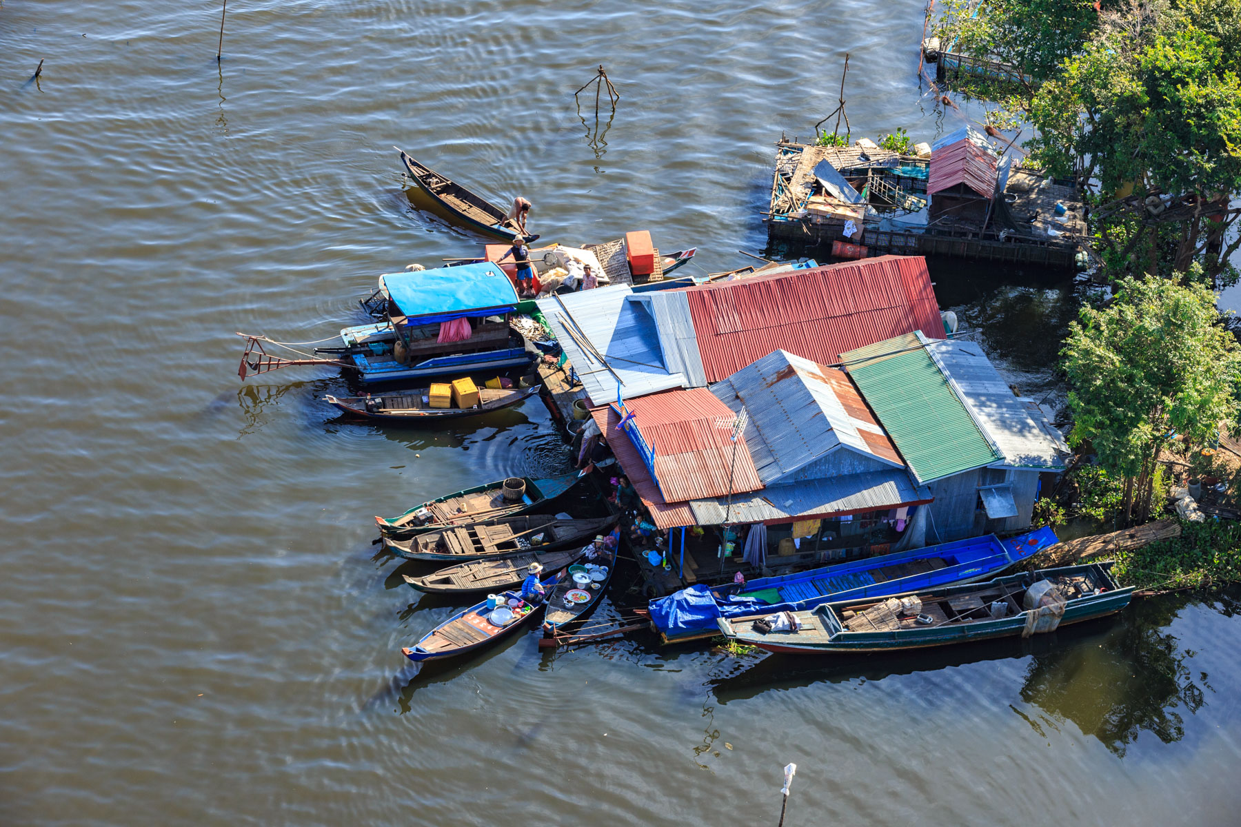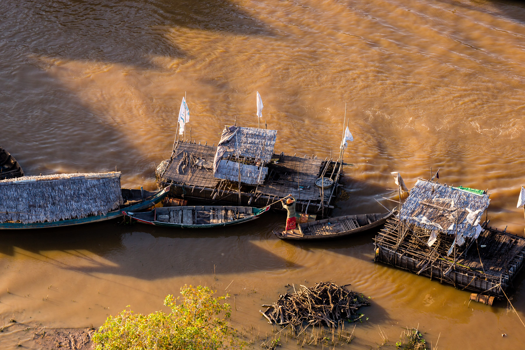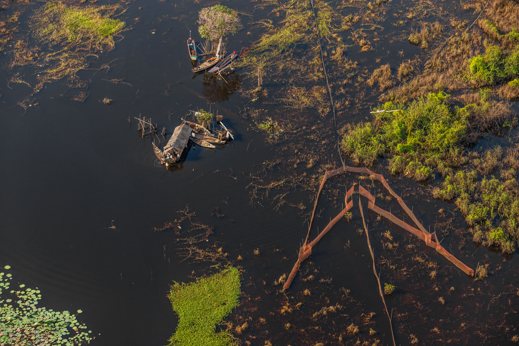 Village flottant de Kampong Phulk sur le lac Tonlé Sap, province de Siem Reap, Cambodge (13°12'45.86"N - 103°58'28.22"E).