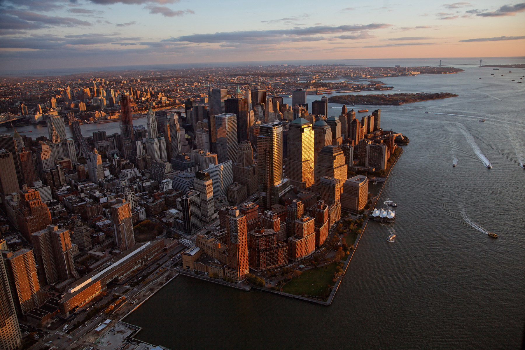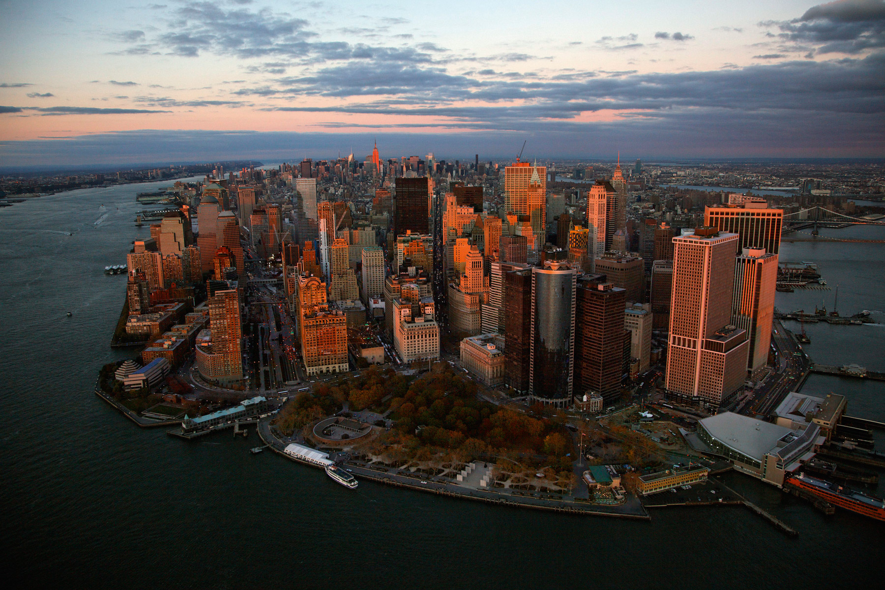Battery park City and Financial District, Manhattan, New York, United States (40°43'9.45" N, 74° 0'49.79" W).