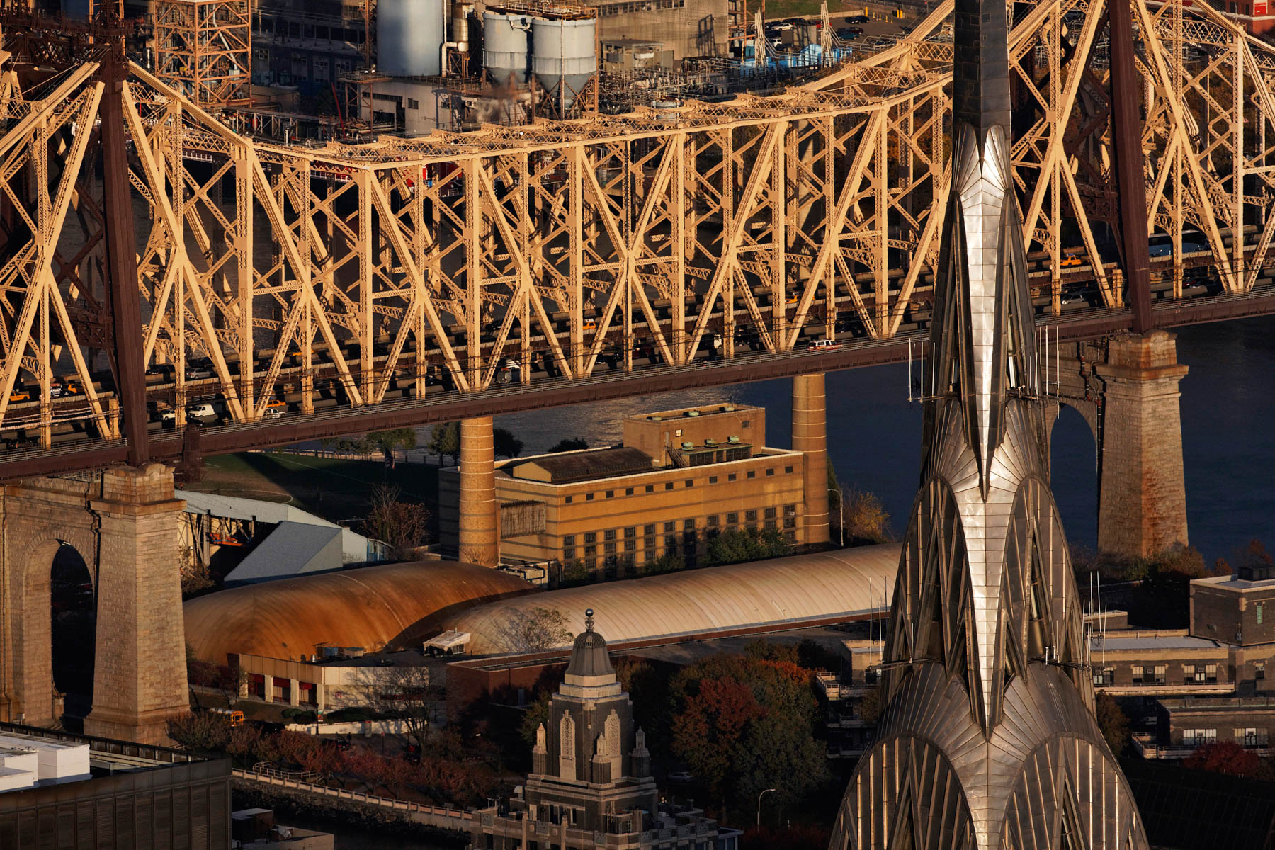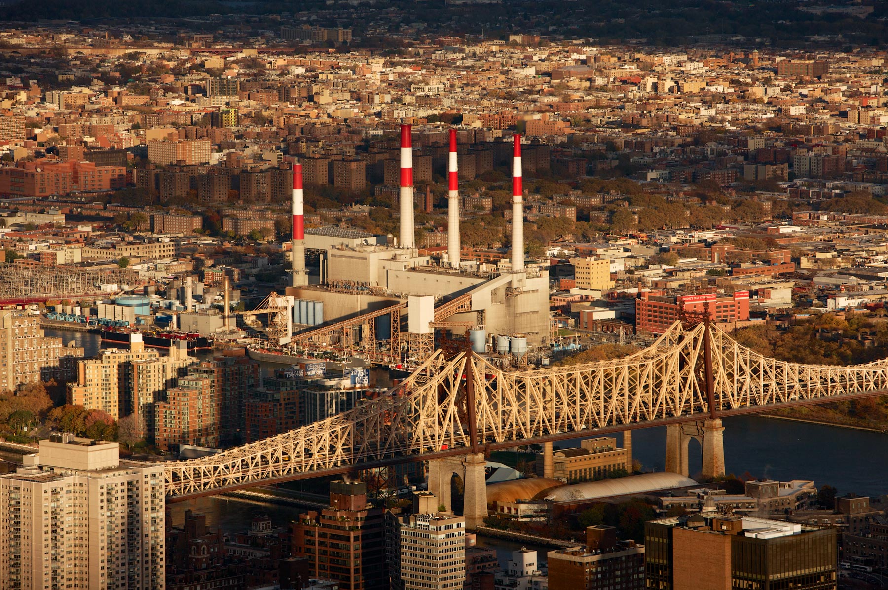 The Mayor Edward Koch Bridge or Queensboro Bridge and the borough of Queens, Manhattan, New York, United States (40°45’ N, 73°57’ W).