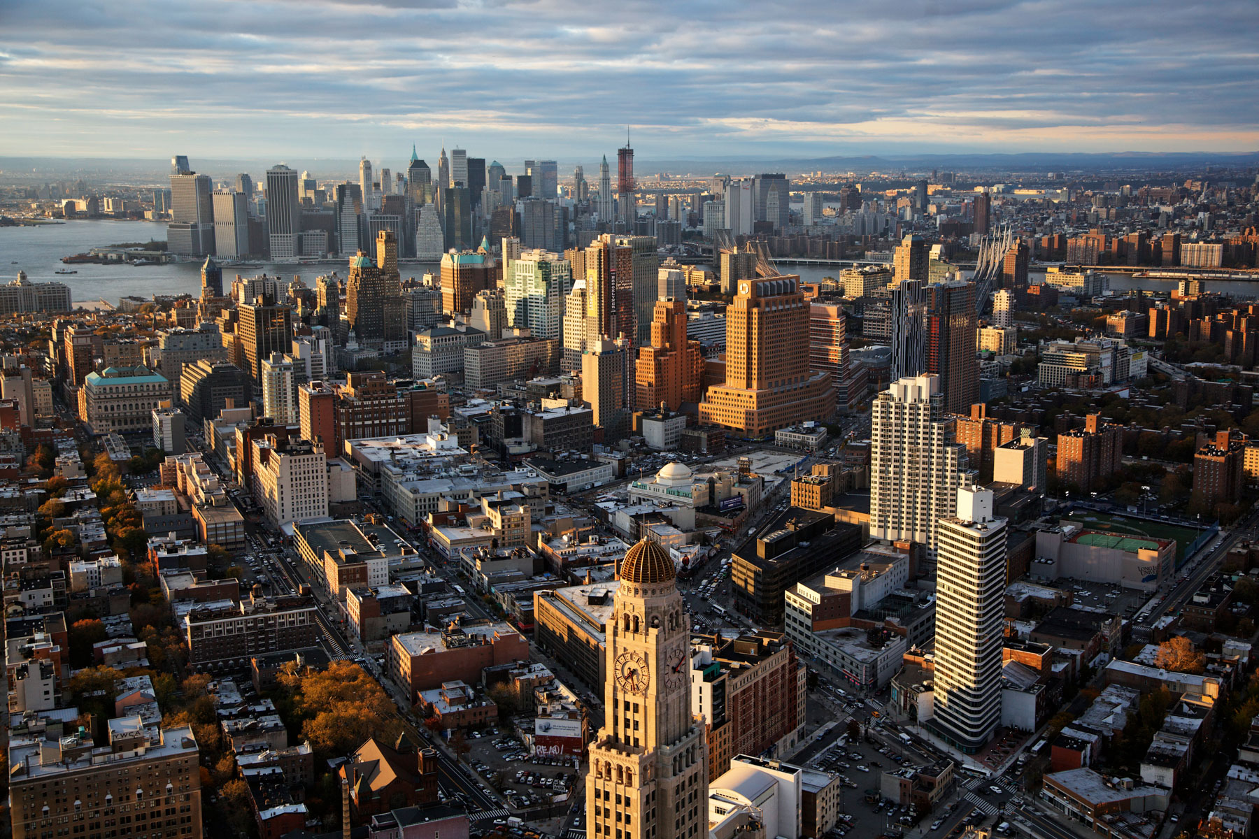 The Queens, Brooklyn and the East River from Manhattan, New York, United States (40°44'24.89" N, 73°59'35.45" W).