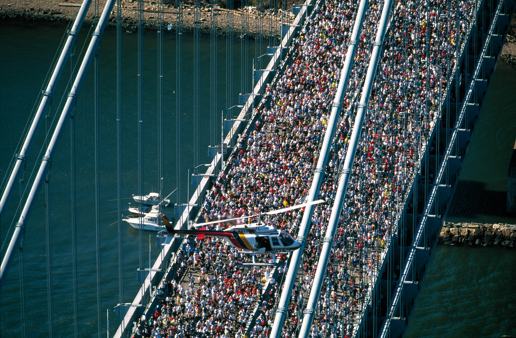 Marathon crossing the Verrazano Bridge, New York, United States (40°36’ N, 74°03’ W).