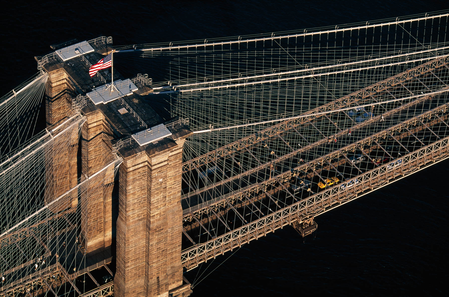 The Brooklyn Bridge over the East River, New York, United States (40°42′22″N, 73°59′49"W).