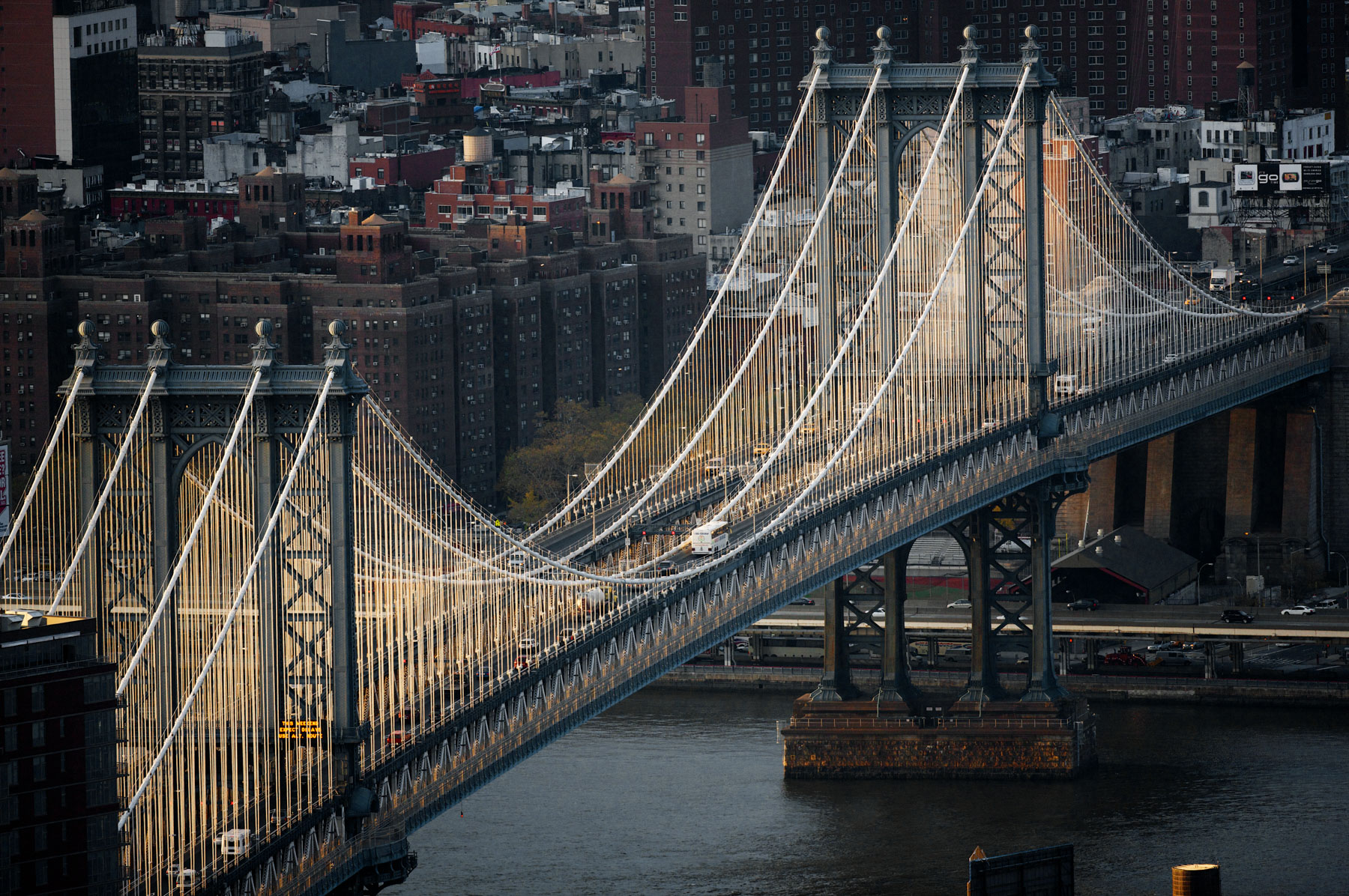 Manhattan Bridge over the East River, New York, United States(40°42′ 24″N, 73°59′25″W).