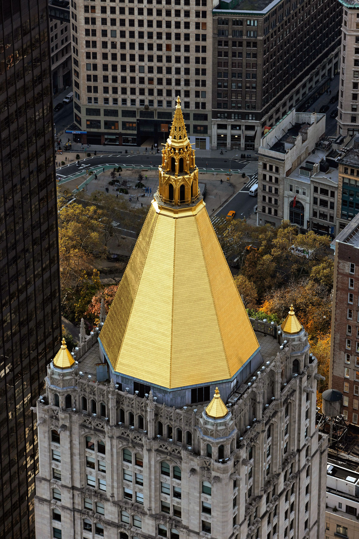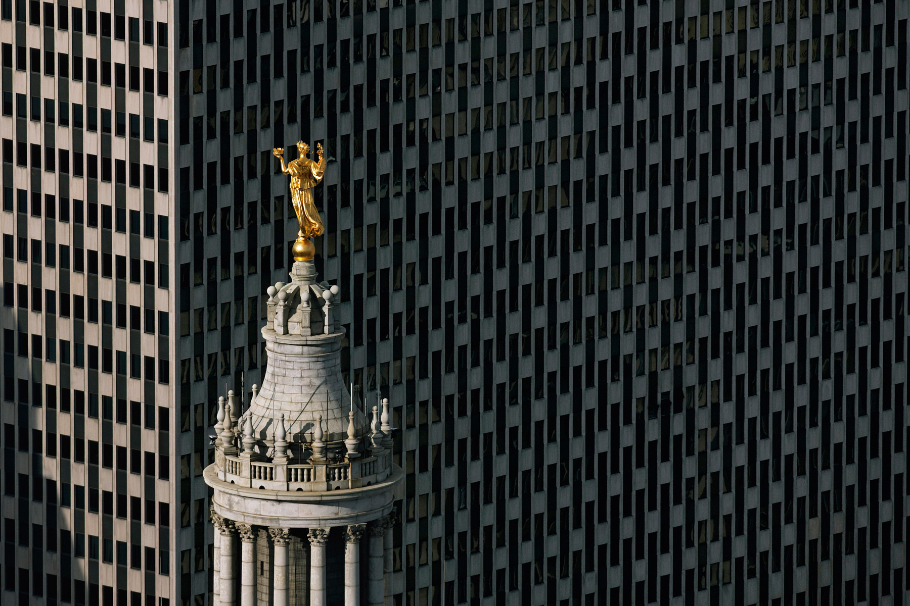 Civic Fame Statue on the top of the Municipal Bulding, Tribeca, Manhattan, New York, United States (40°42′47″N, 74°00′14″W).
