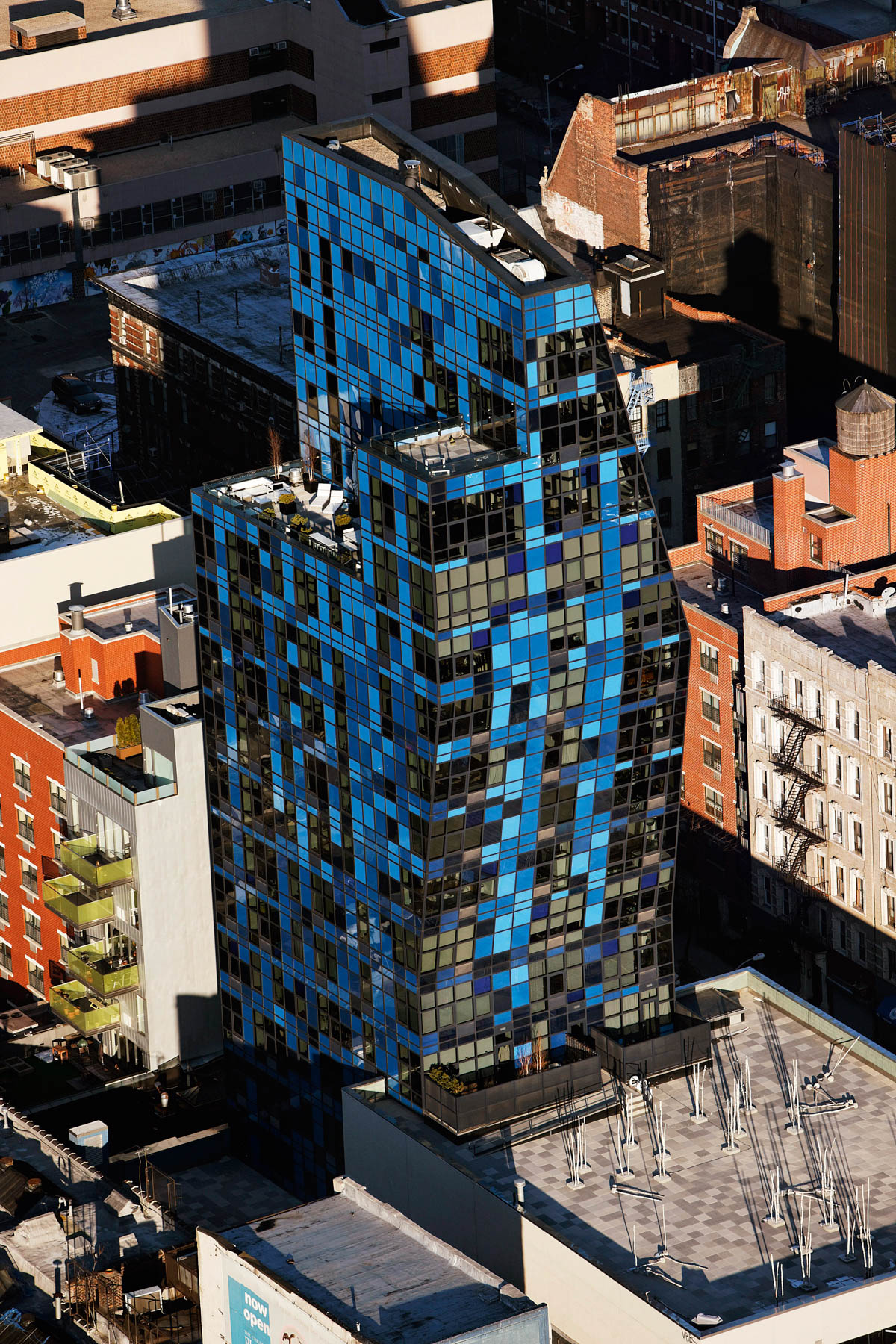 The Blue Condominium Tower by the architect Bernard Tschumi, Lower East Side, Manhattan, New York, Etats-Unis (40°43’ N, 73°59’ W).